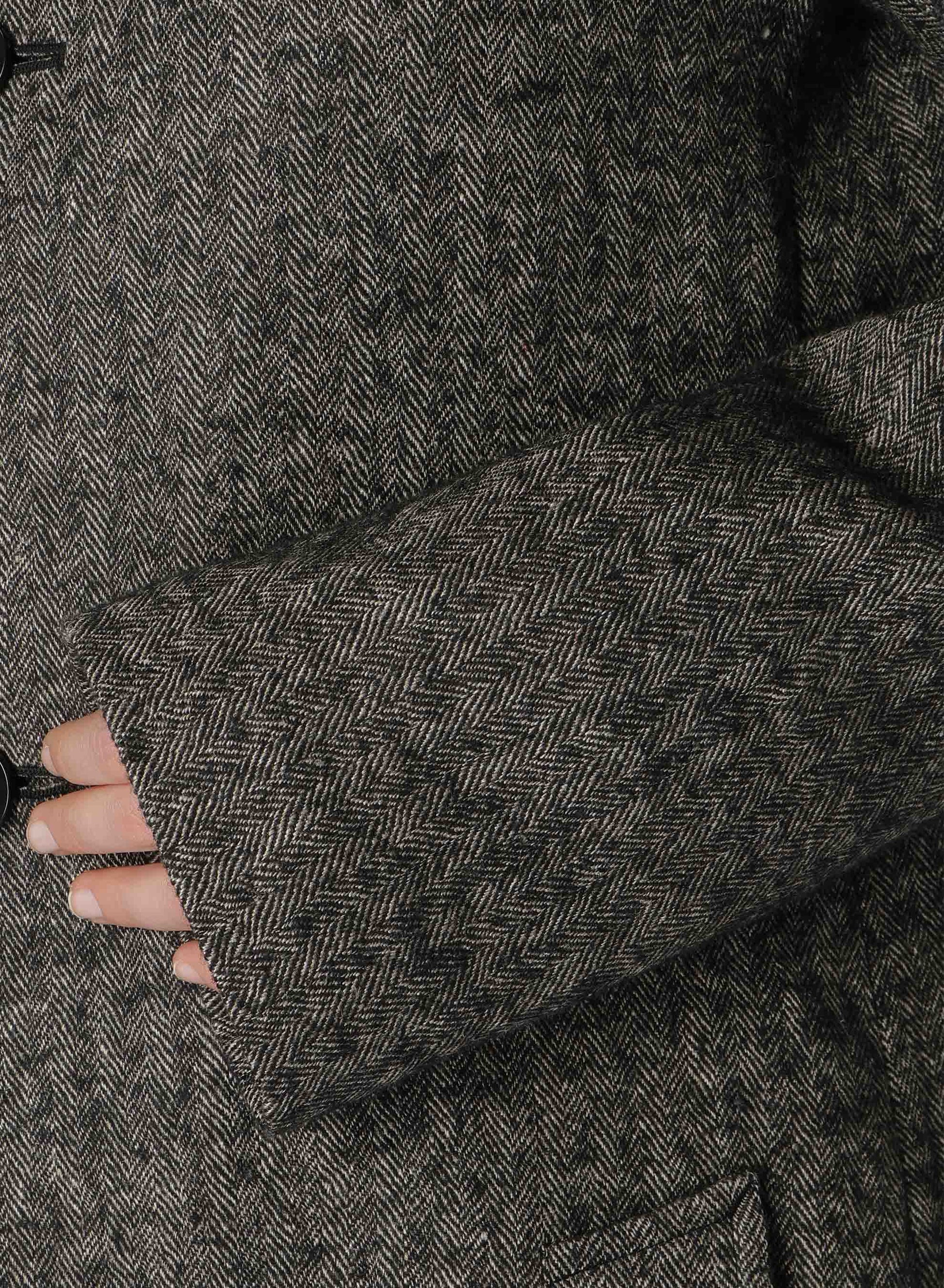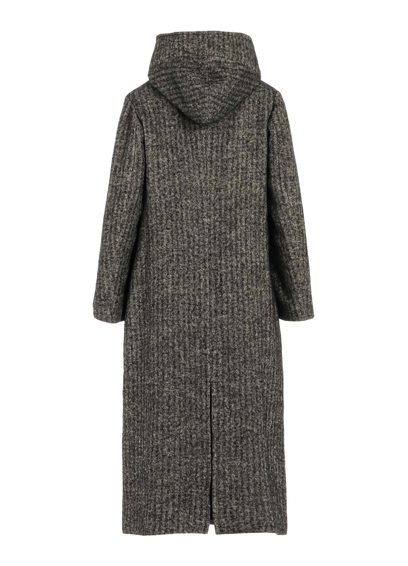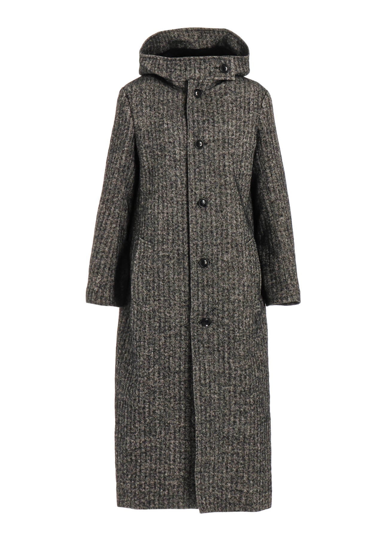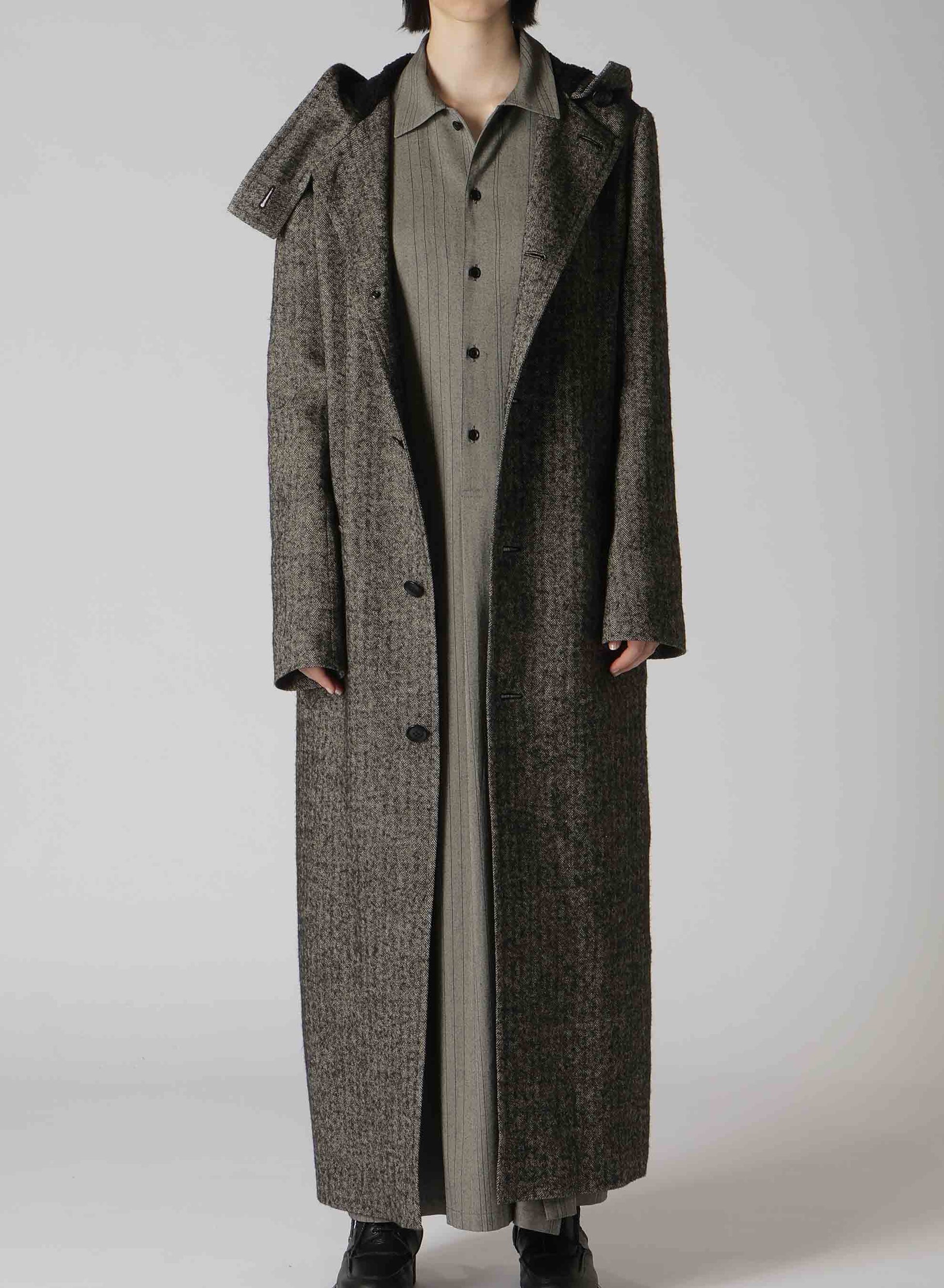 LINEN/WOOL RAISED HERRINGBONE LONG COAT WITH HOODIE