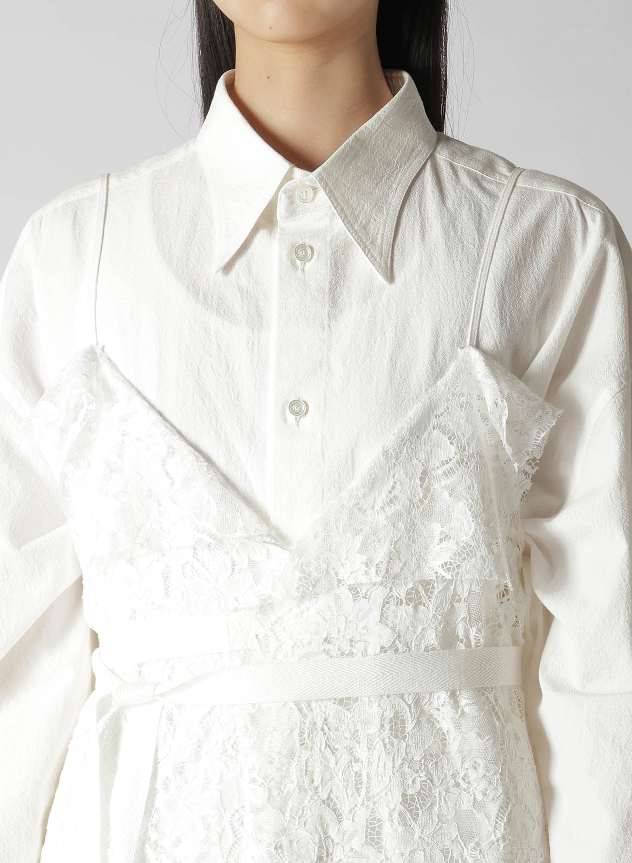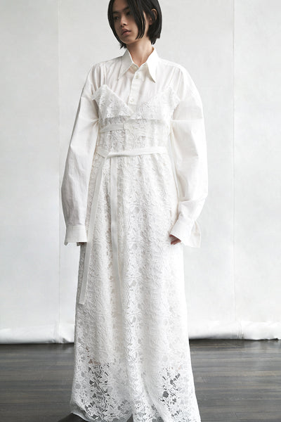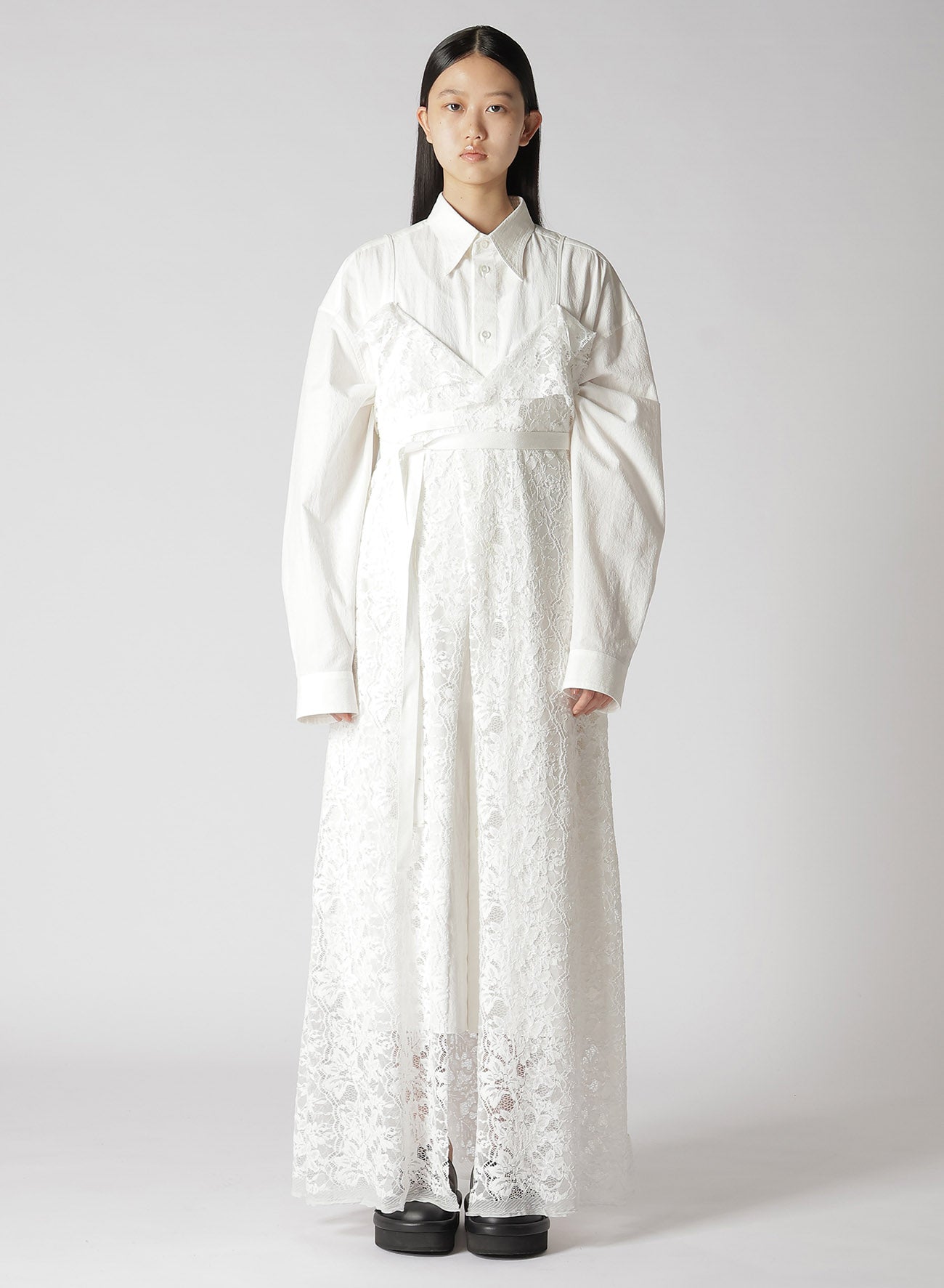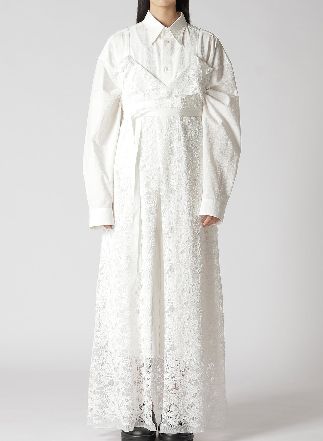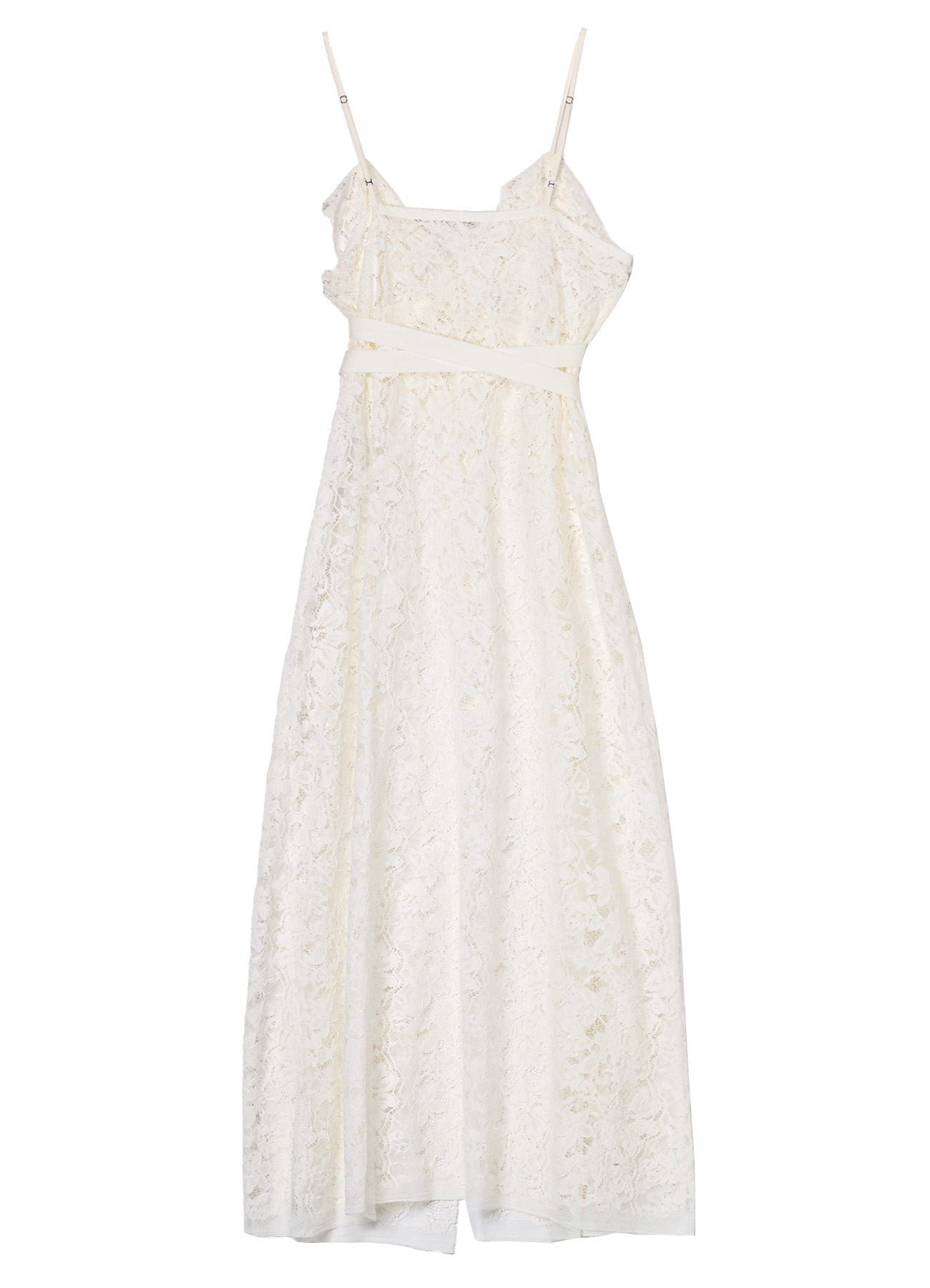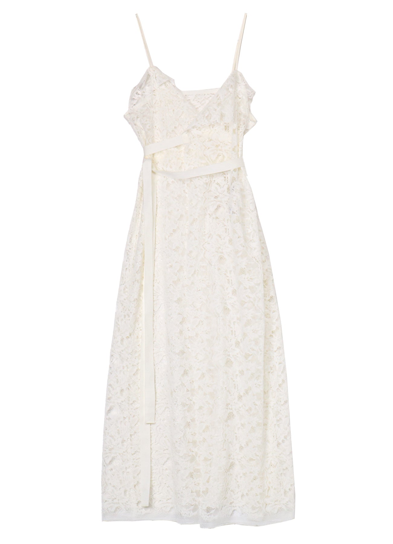 A lace camisole dress with an elegant floral pattern and a refined presence. The regular-fit design maintains a clean silhouette. It is recommended to layer this dress over a blouse or top. Please note that there might be slight variations in size and texture between the sample item and the final product. For more details, refer to SIZE INFO.