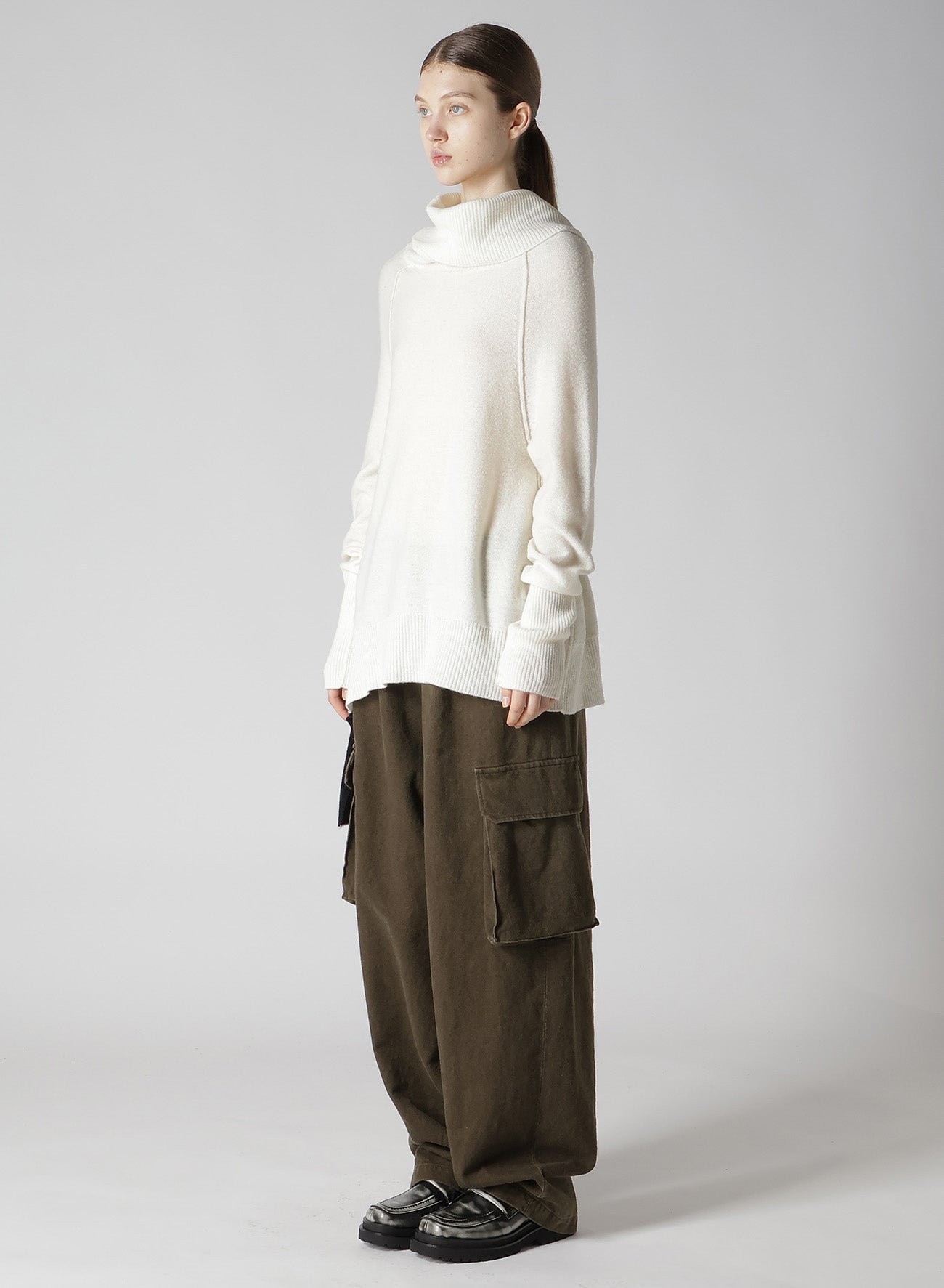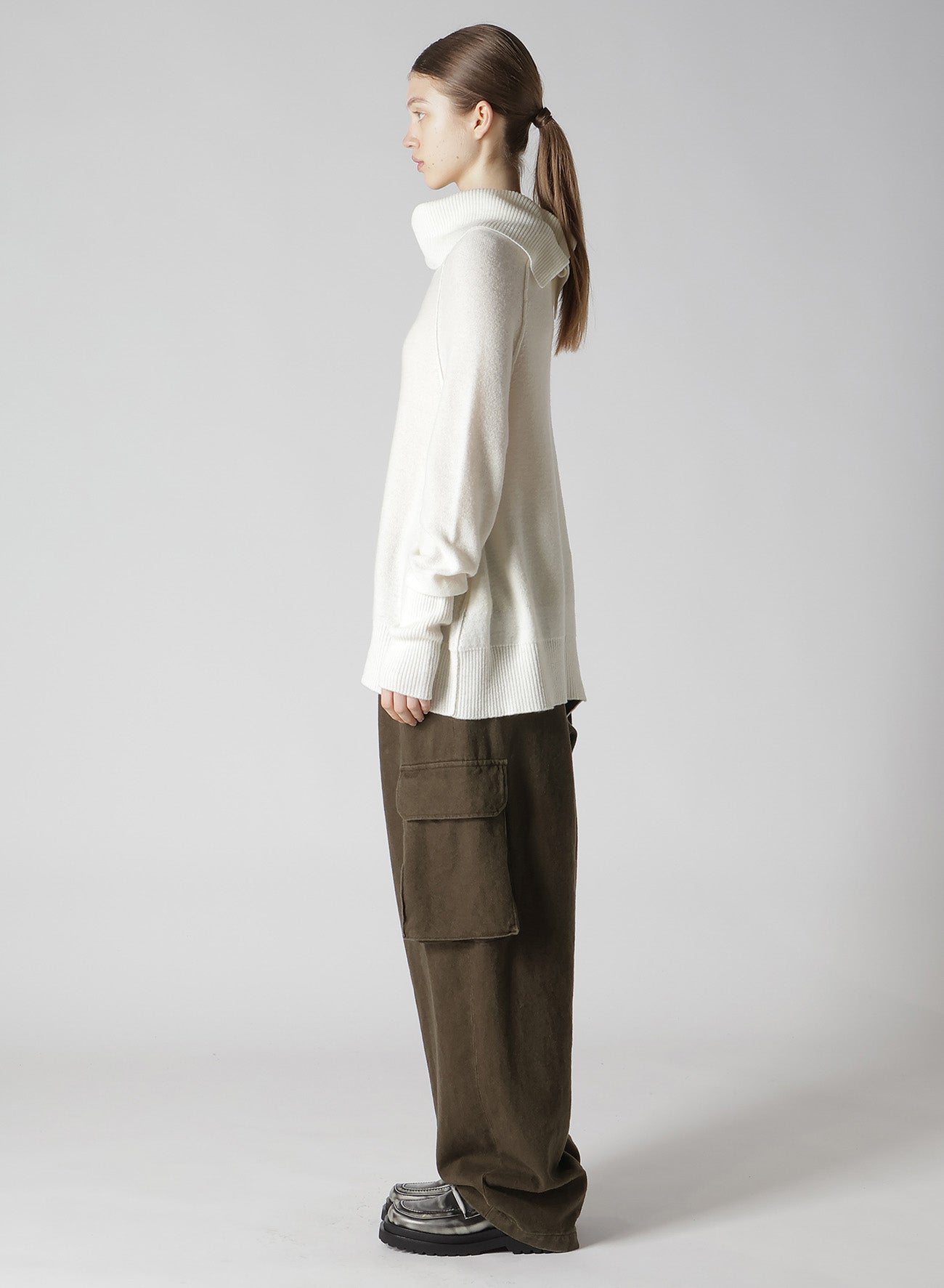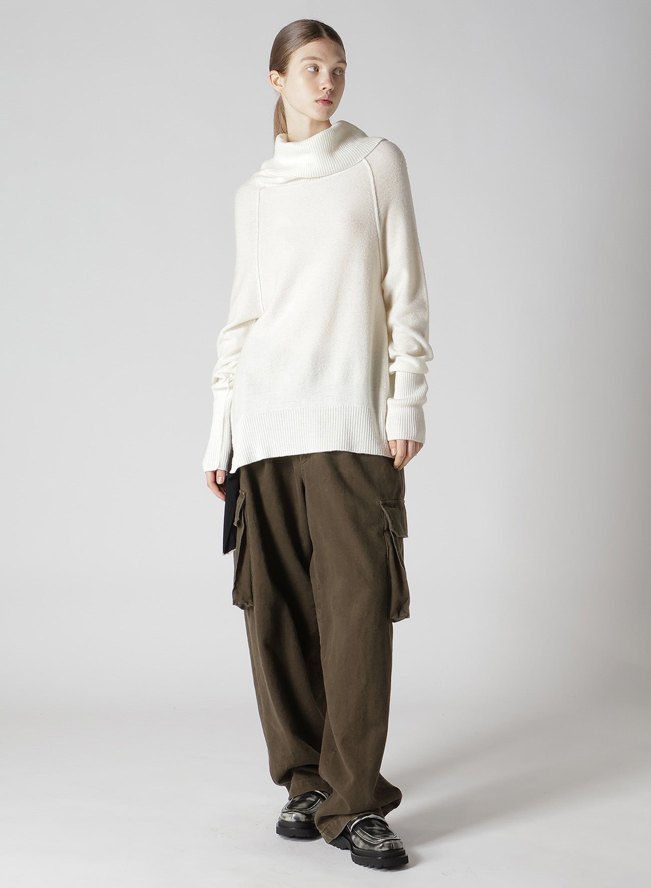 - Wool-blend off-neck knit