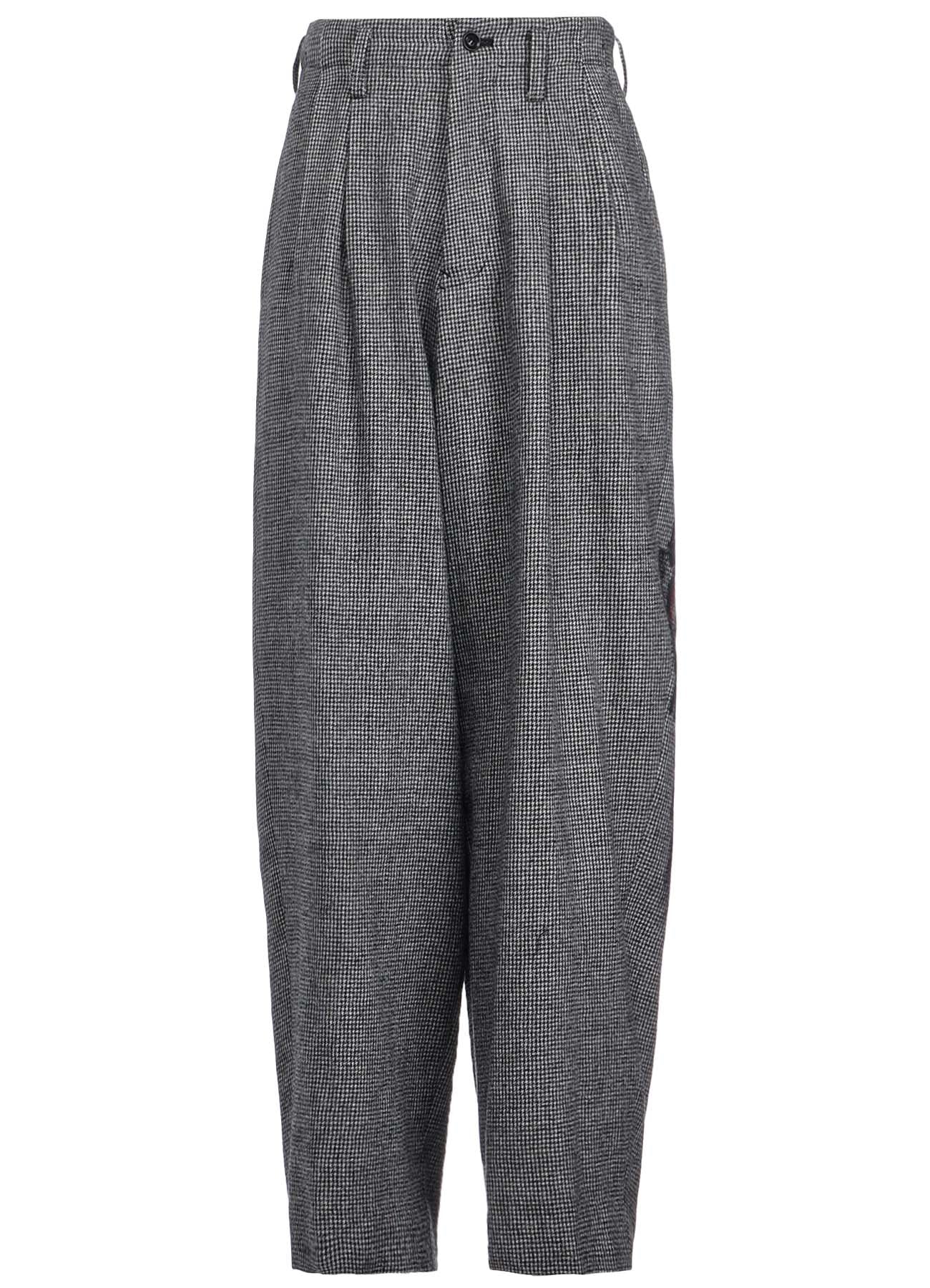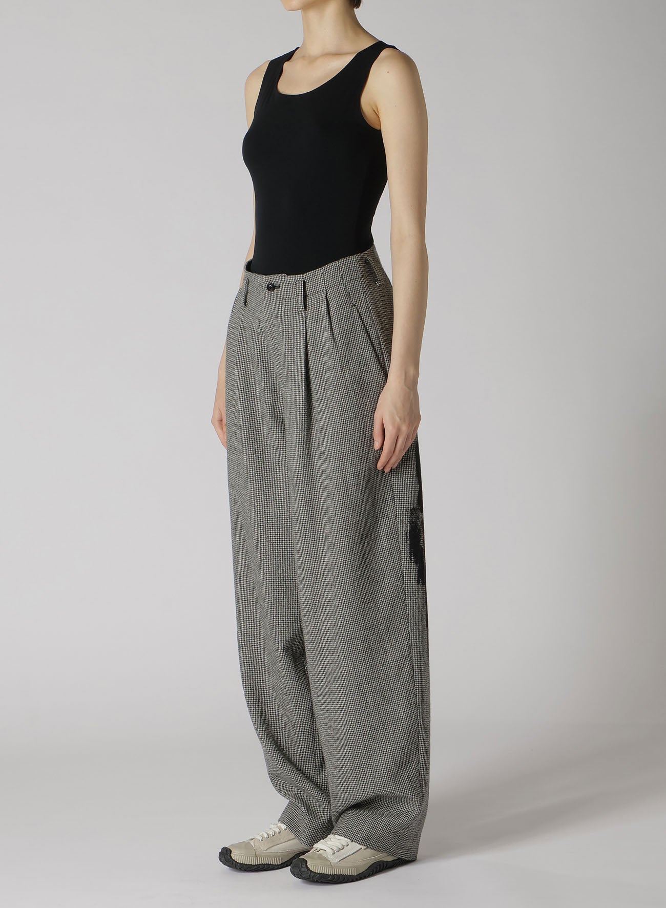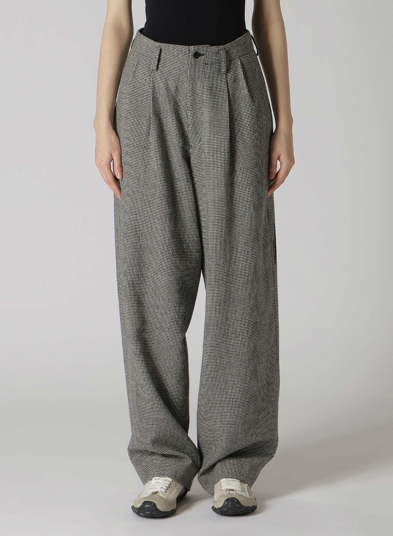 WOOL FLANNEL HOUNDSTOOTH FEMALE PT DOUBLE TUCK WIDE PANTS