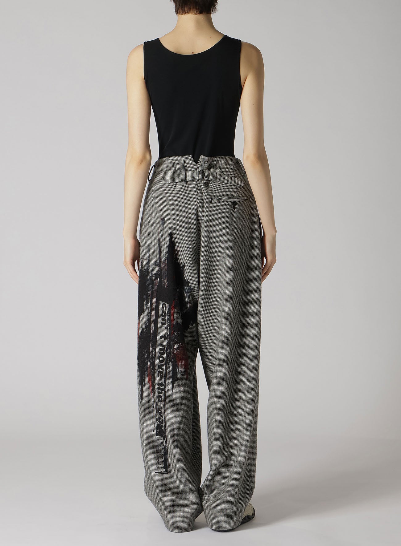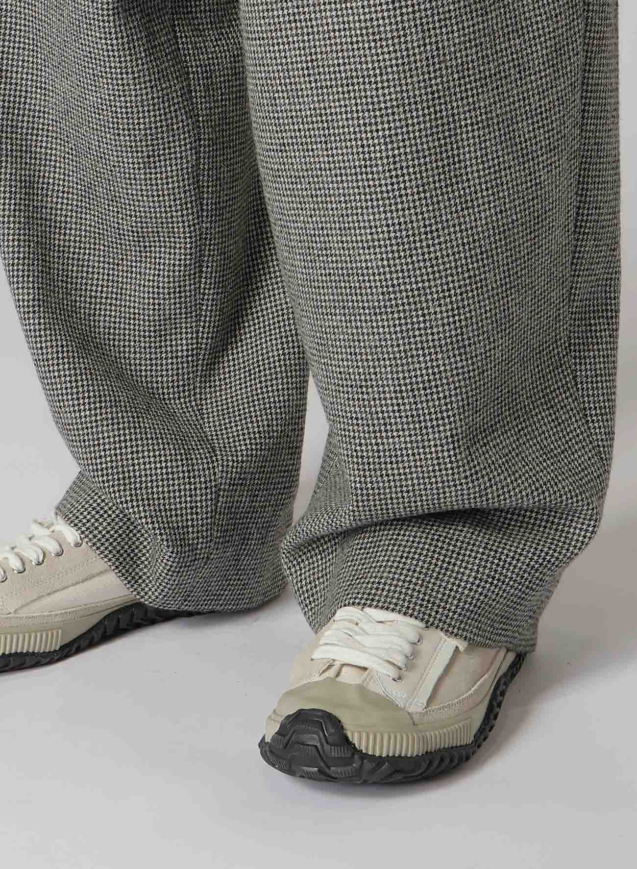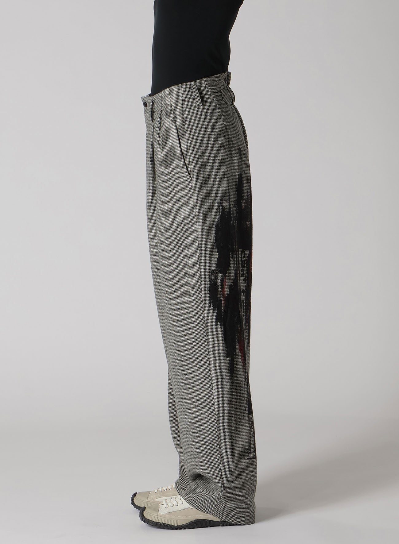 WOOL FLANNEL HOUNDSTOOTH FEMALE PT DOUBLE TUCK WIDE PANTS