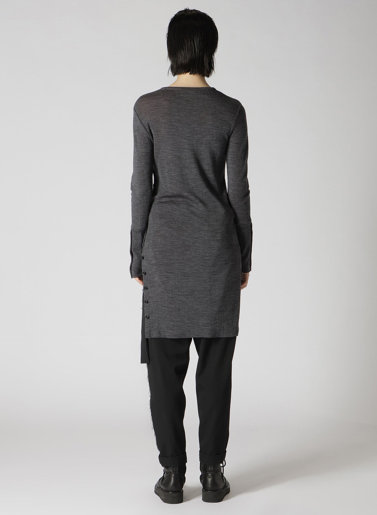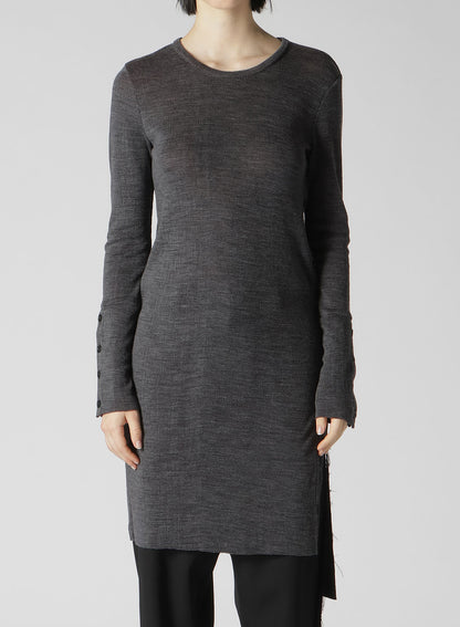 REVERSED RIB BUTTON OPEN ROUND NECK T