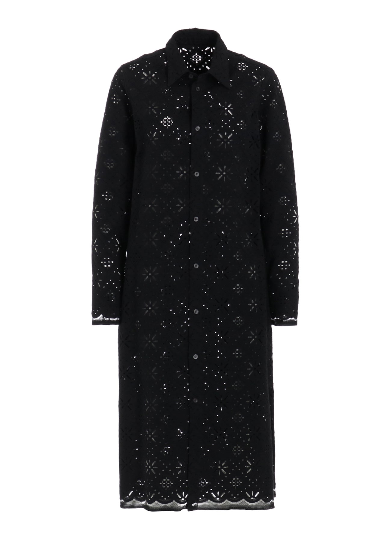 This elegant long-sleeve dress made from lace fabric provides a sophisticated sheer feel and a moderate firmness. Versatile in style, wear it as a dress or pair it with pants for an elegant look. The product image features a sample item; actual size and texture may differ. Check SIZE INFO for details.