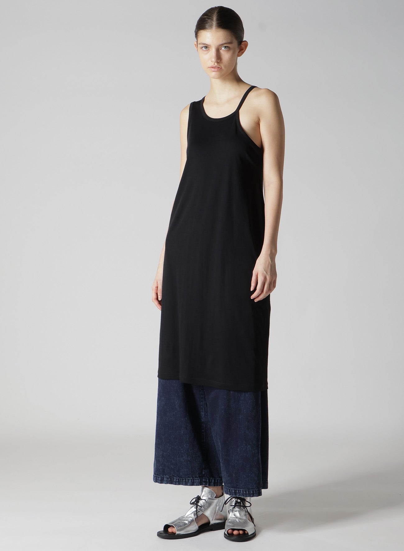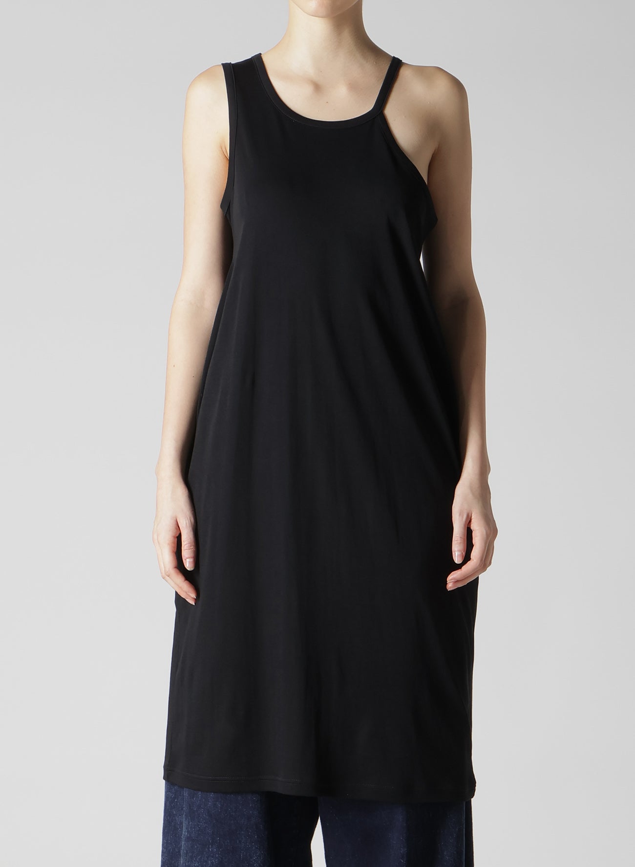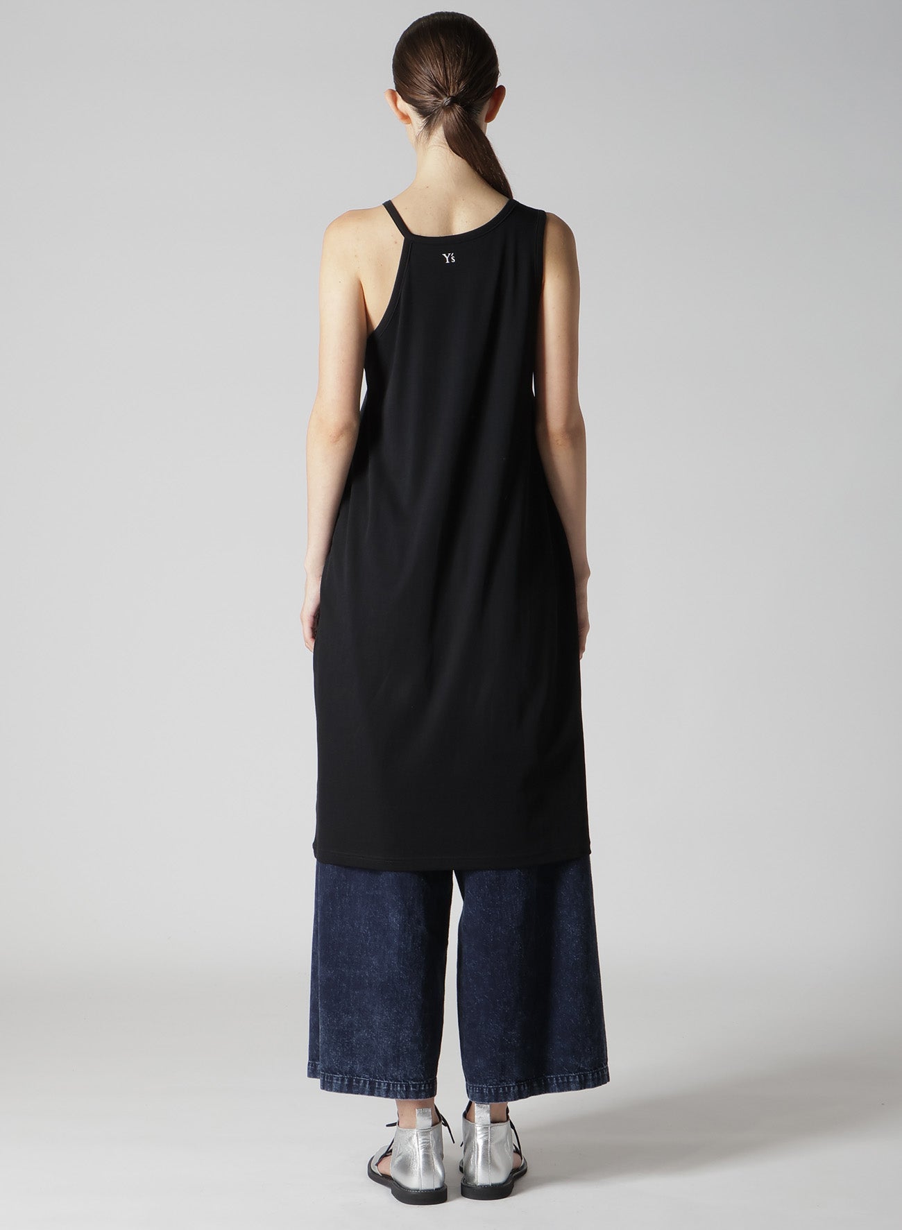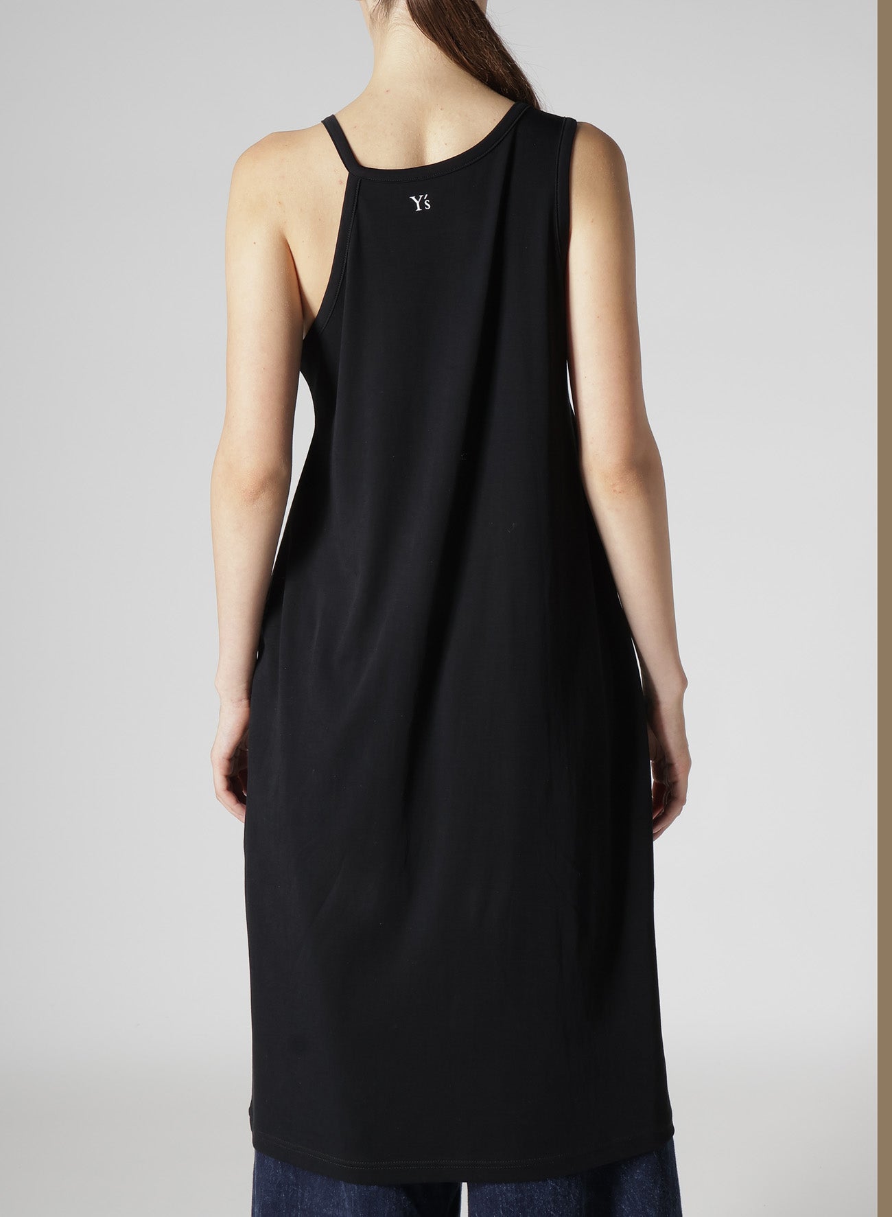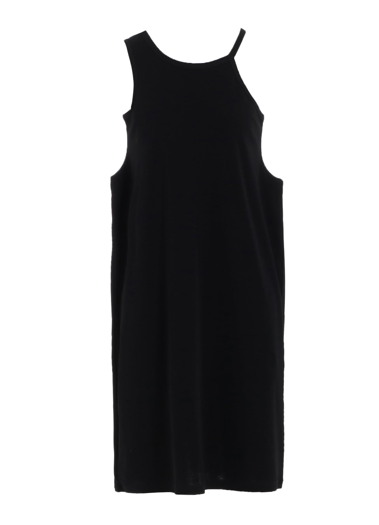 This sleeveless dress is crafted with a silicone soft-wash finish, providing an incredibly smooth feel. A small logo print adds an accent. The shoulder features an asymmetric design, making it perfect for wearing alone or styled with pants. Model images use sample items; refer to SIZE INFO for product size details.