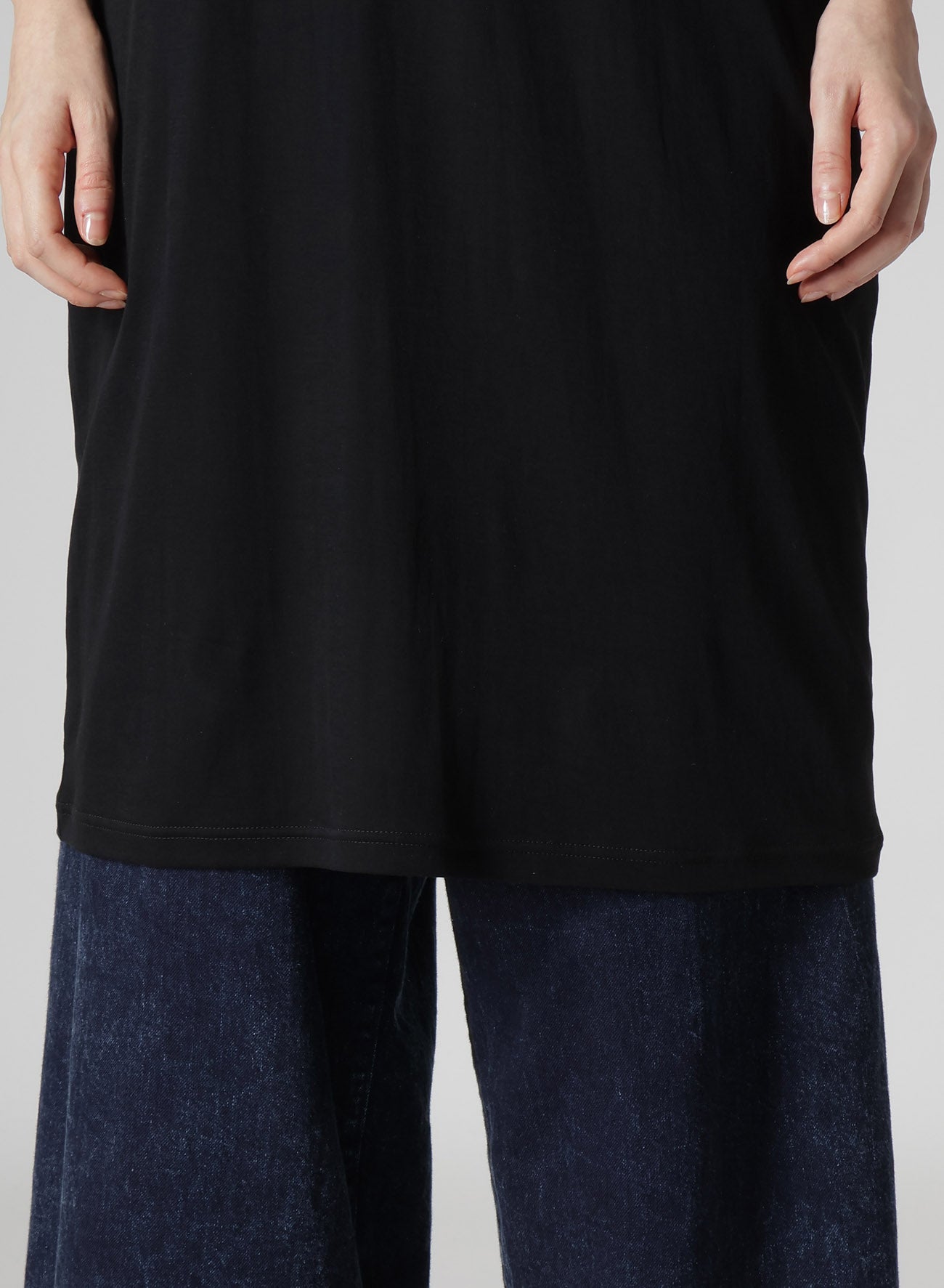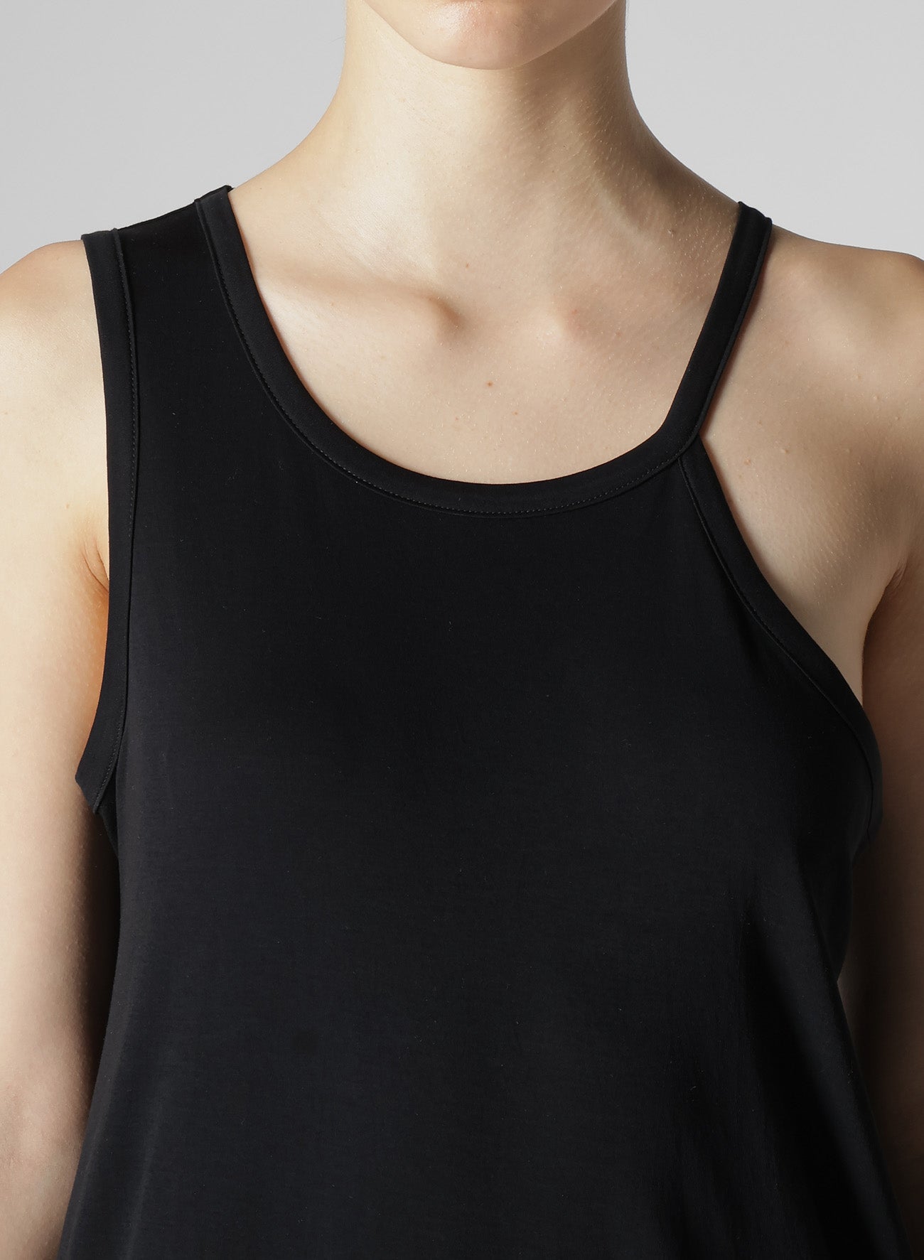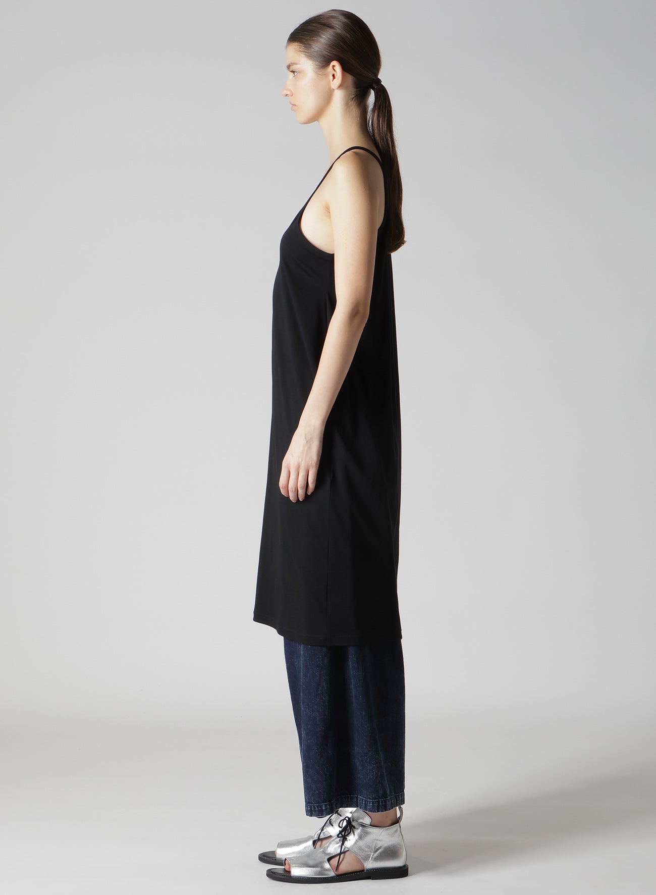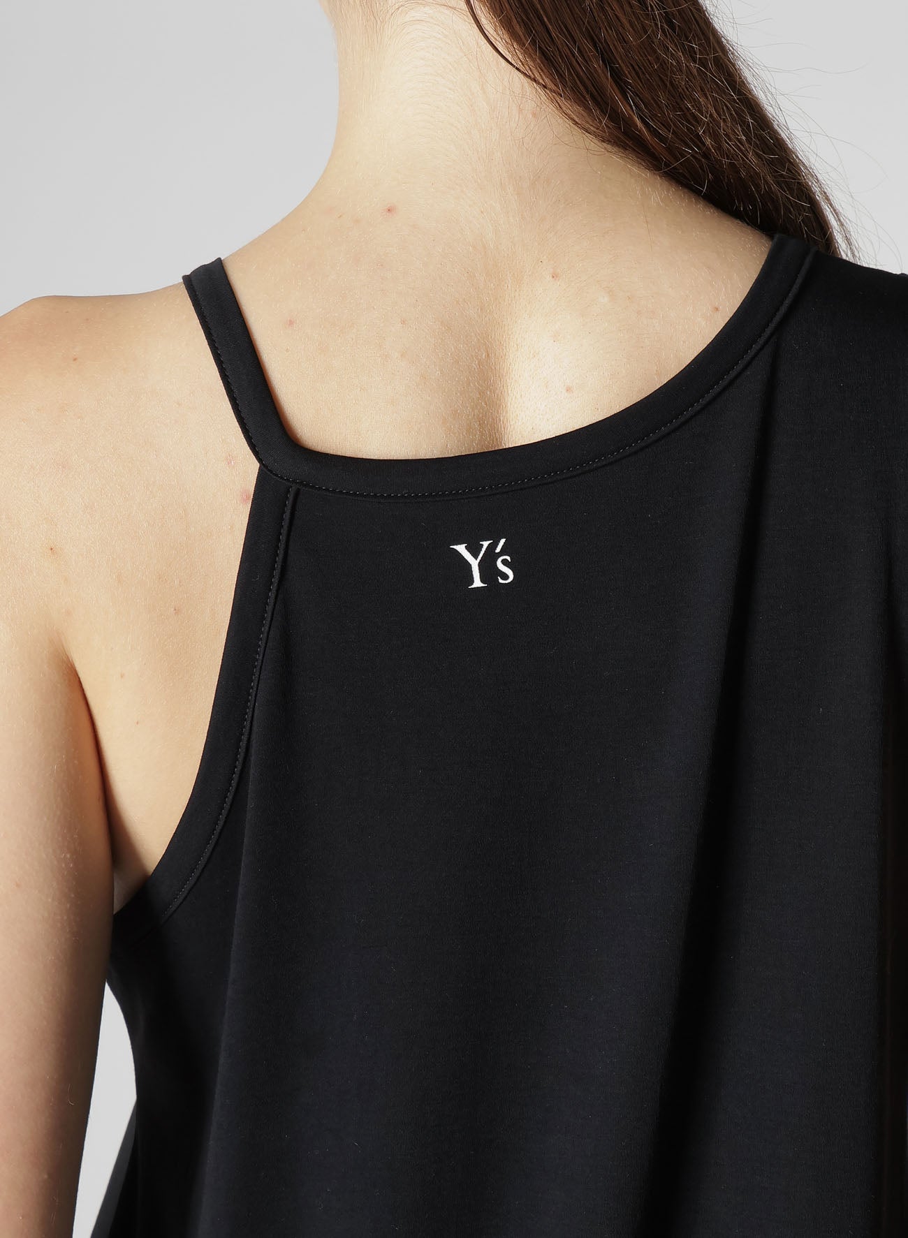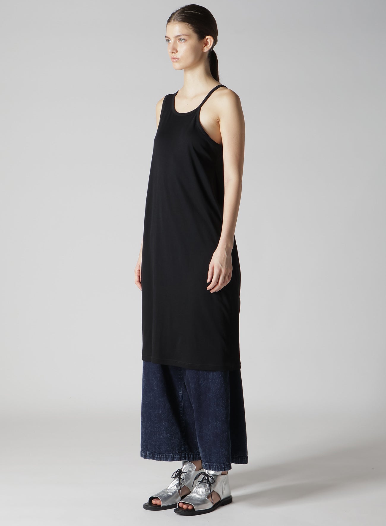 This sleeveless dress is crafted with a silicone soft-wash finish, providing an incredibly smooth feel. A small logo print adds an accent. The shoulder features an asymmetric design, making it perfect for wearing alone or styled with pants. Model images use sample items; refer to SIZE INFO for product size details.