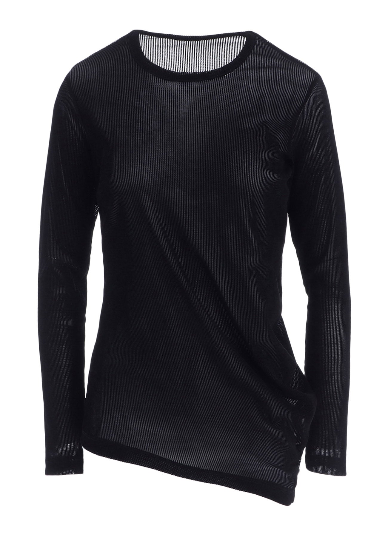 NY TULLE FLOCKED ROUND NECK CRUNCHED SIDE T