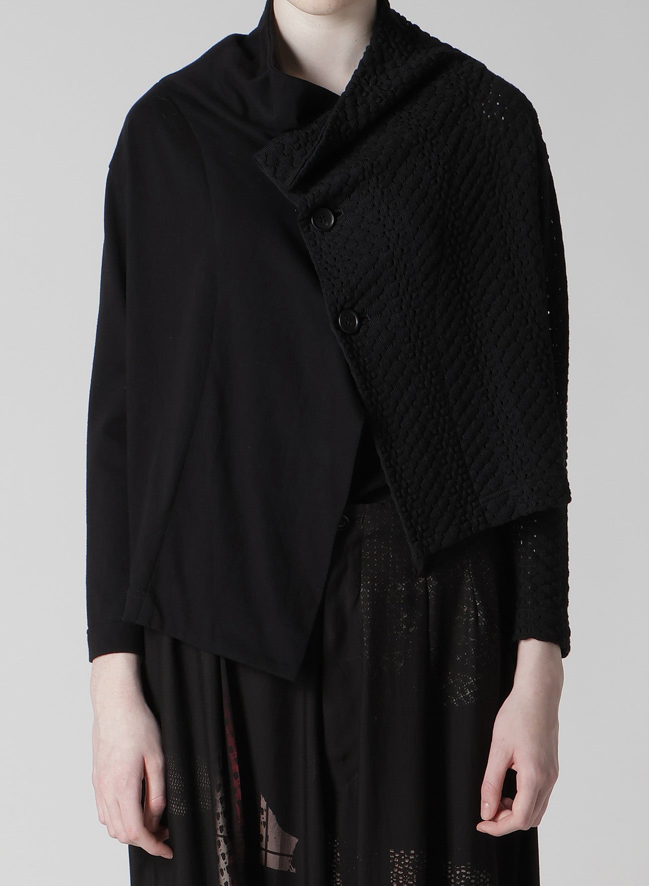 COTTON JERSEY/LACE OFF NECK 3BUTTON JACKET