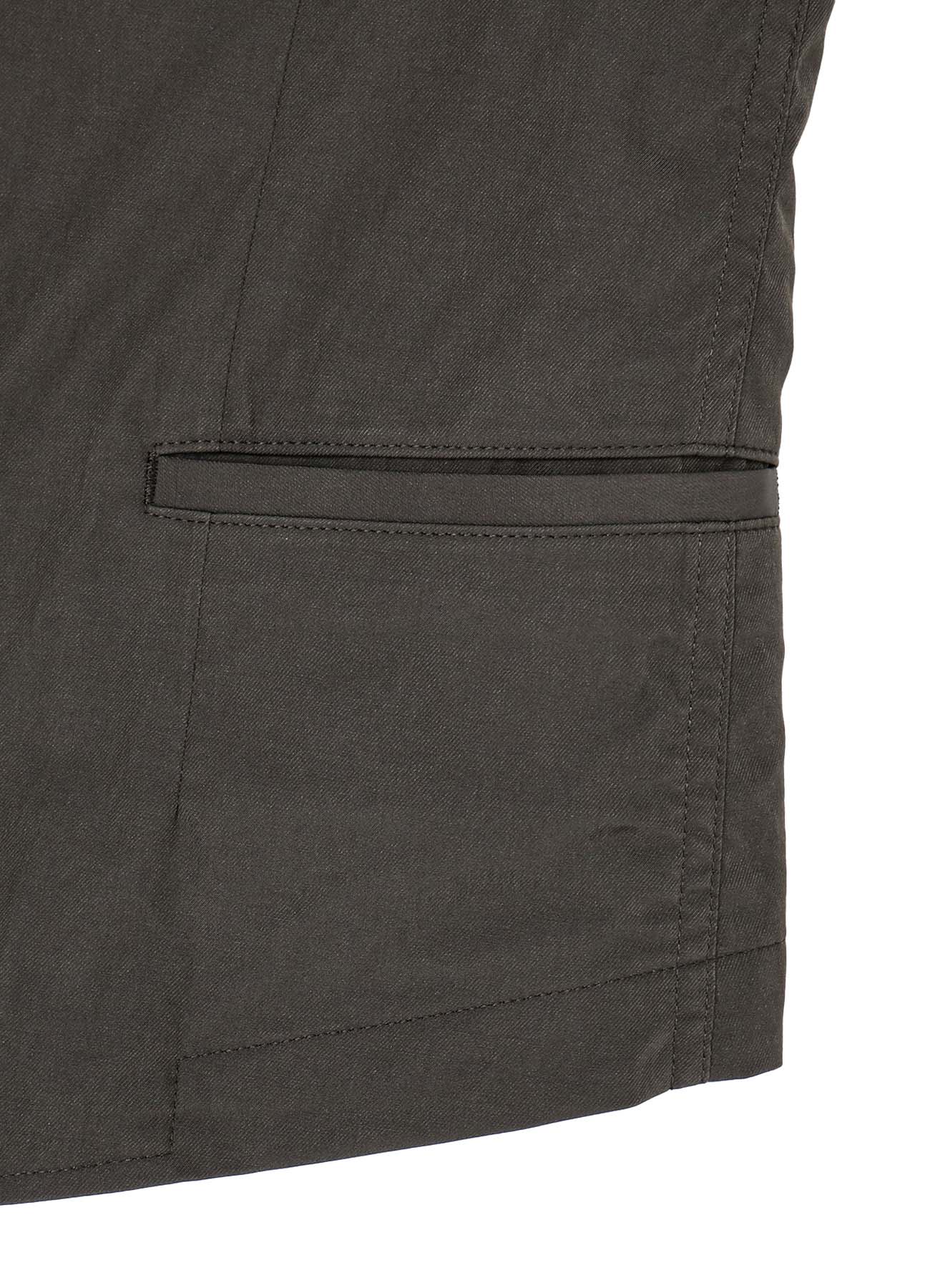 This 2-button jacket boasts a smooth and comfortable texture. Made of cotton, triacetate, and polyester Twill, it's perfect for warm climates with its lightweight fabric. Its sleek silhouette pairs well with wide pants and dresses. Despite a formal cut, the soft fabric allows for versatile casual styling.