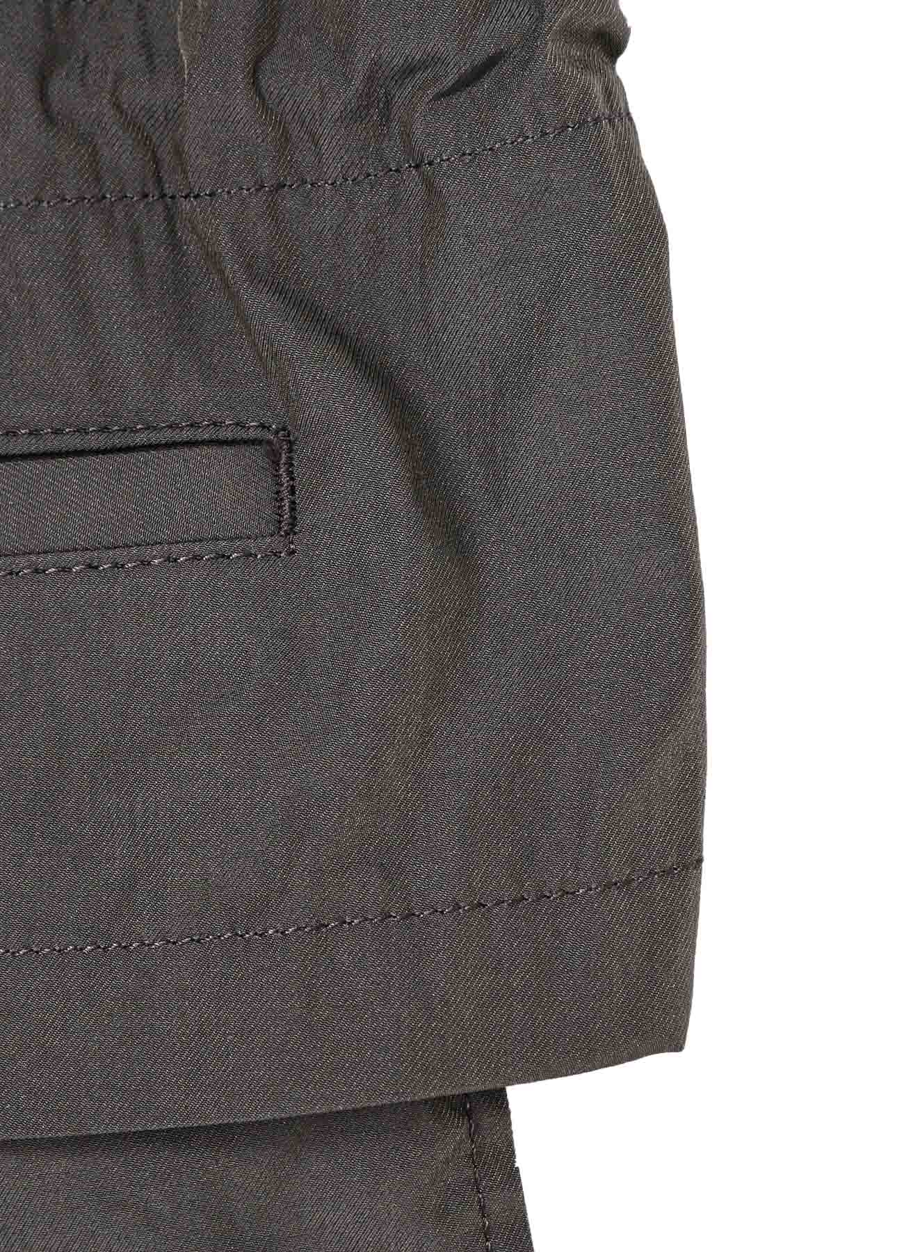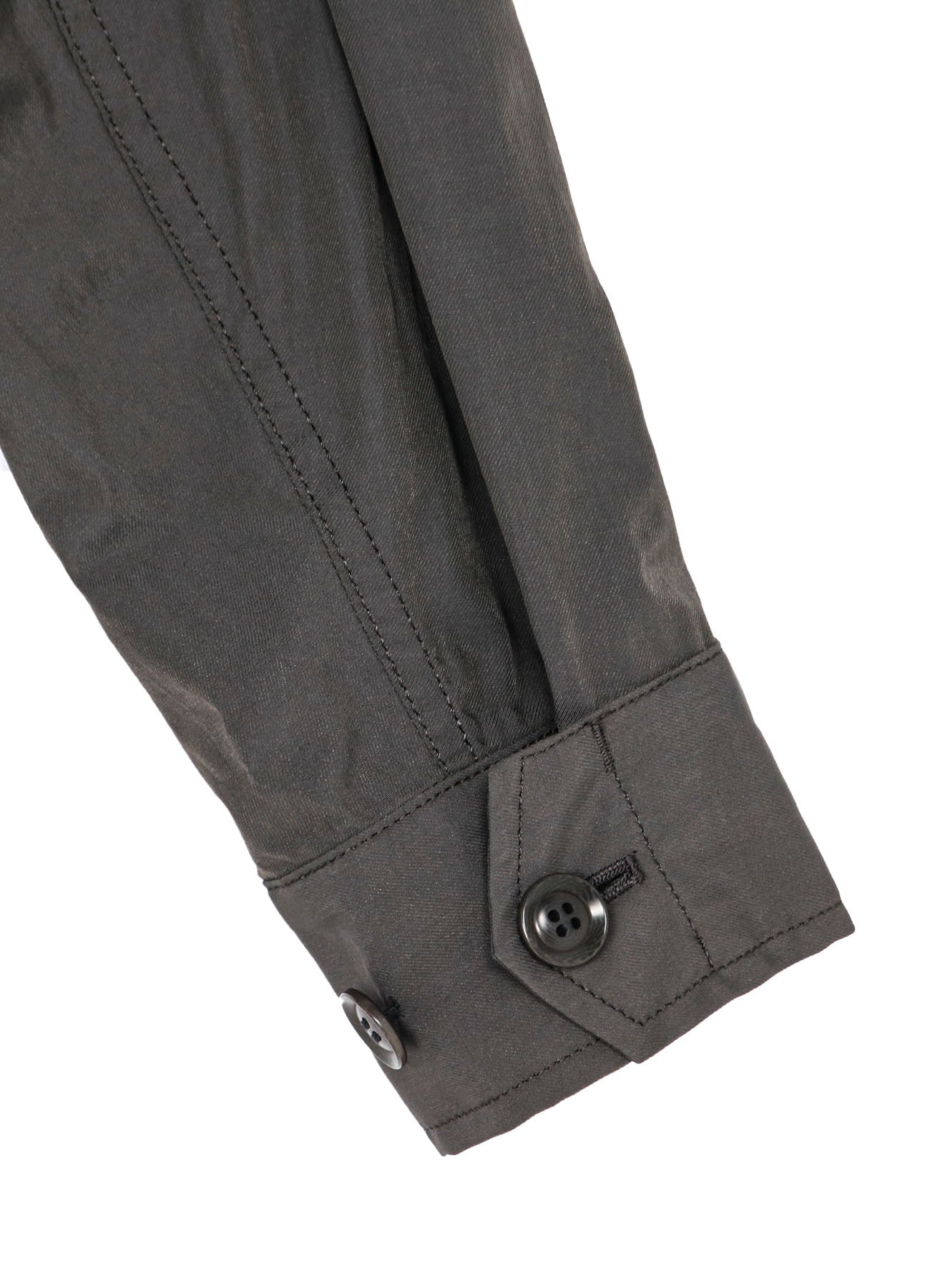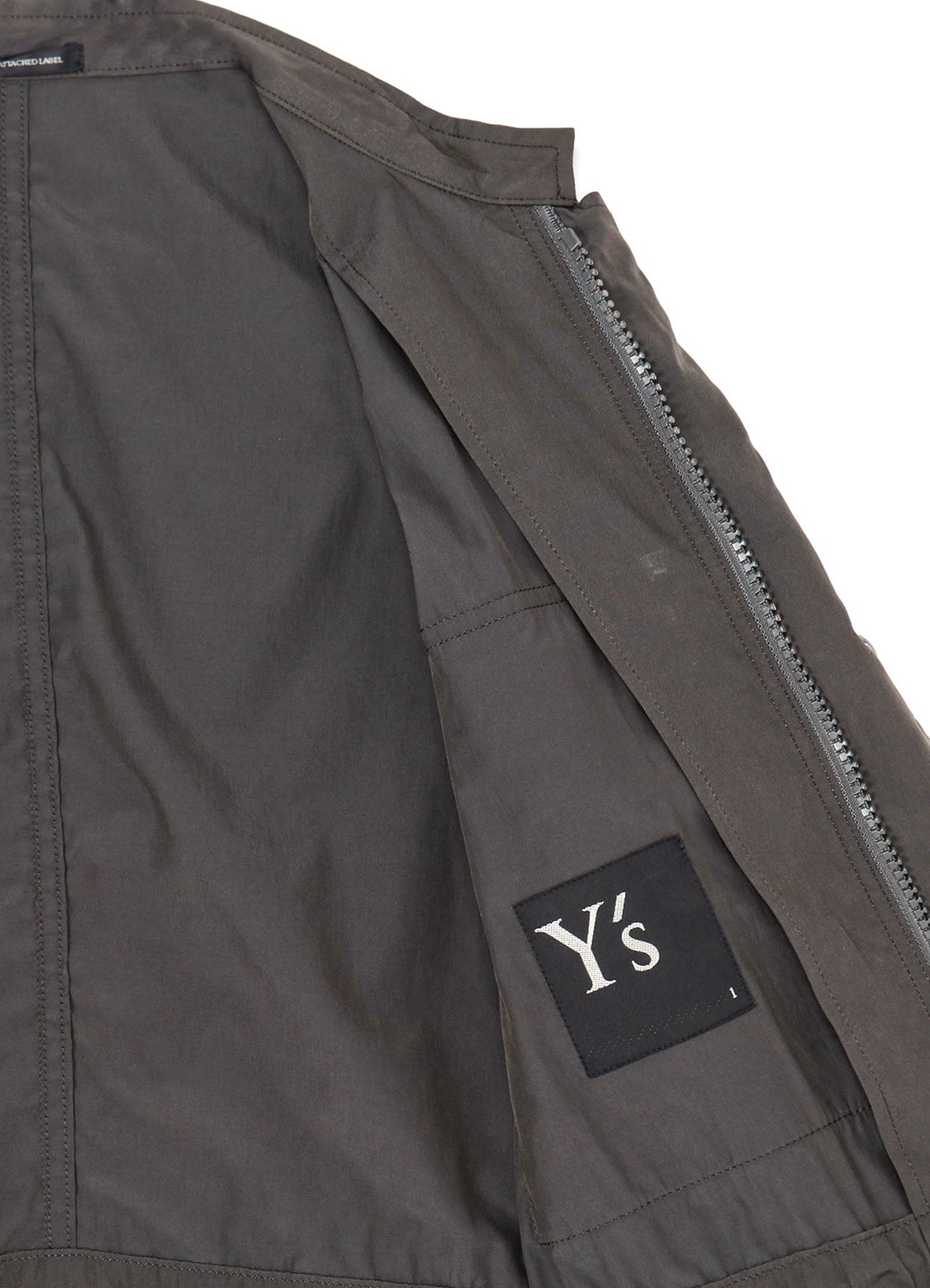 Lightweight short-length blouson with a smooth texture. Made from cotton, triacetate, and polyester twill, the material is perfect for hot weather. Inspired by military field jackets, it features a stand collar and shorter length for a sporty, casual look. The four characteristic pockets' visible pocket bags add a distinct accent.