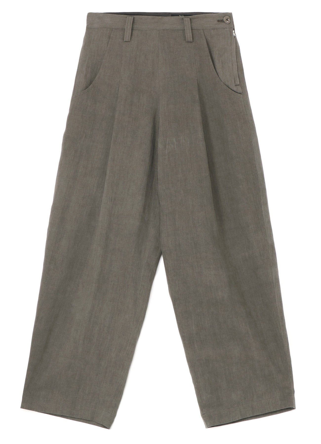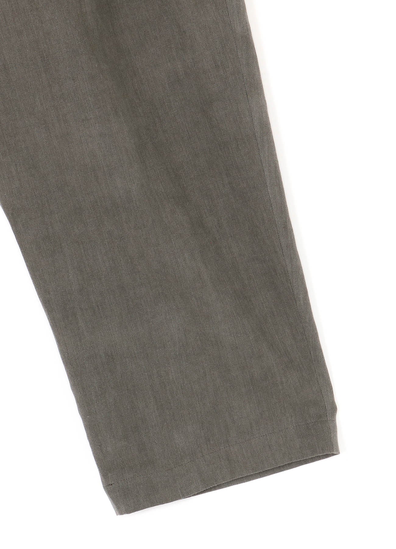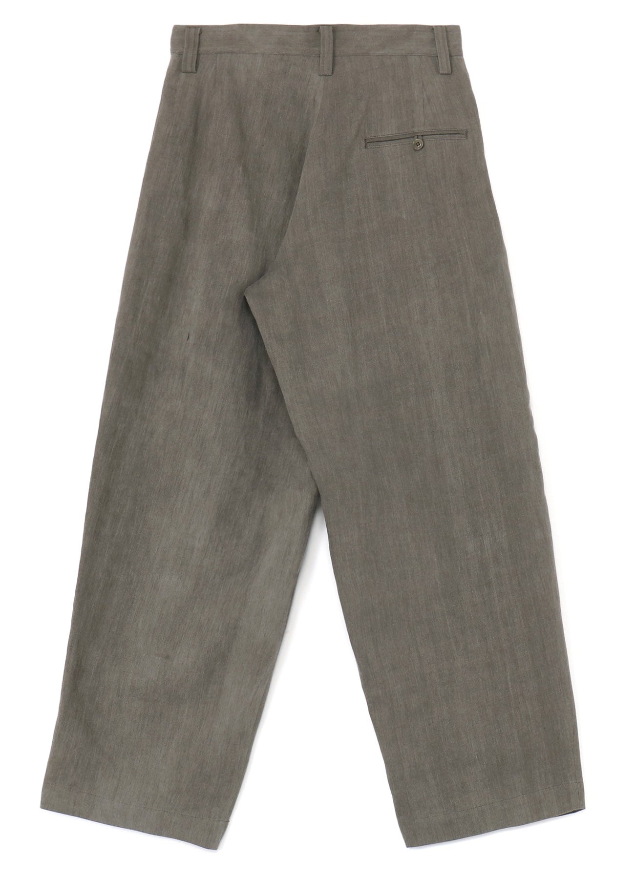 This denim pants feature a cool cotton-linen fabric with a Sumi dye finish, giving them a natural texture. They are light-weight with a relaxed silhouette, front pleats with topstitching for a clean waistline. Ideal for summer, they can be matched with the same material jacket for a stylish outfit. Linen slubs are a characteristic feature.