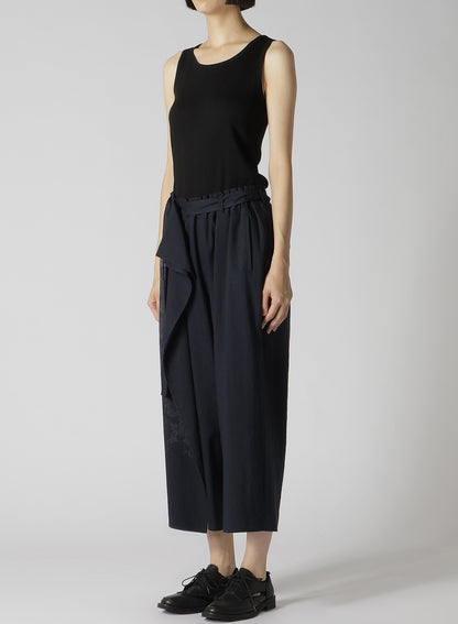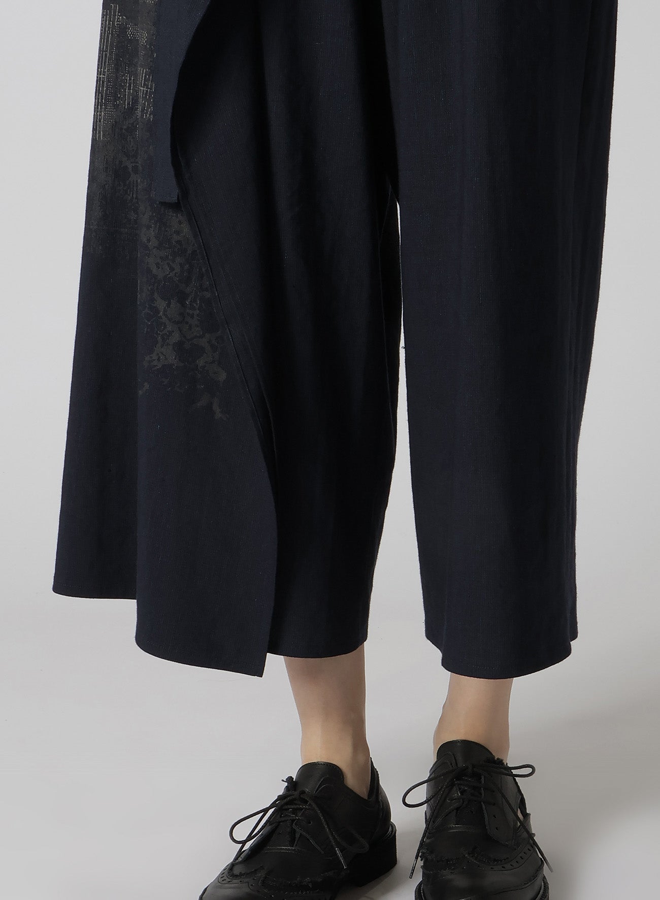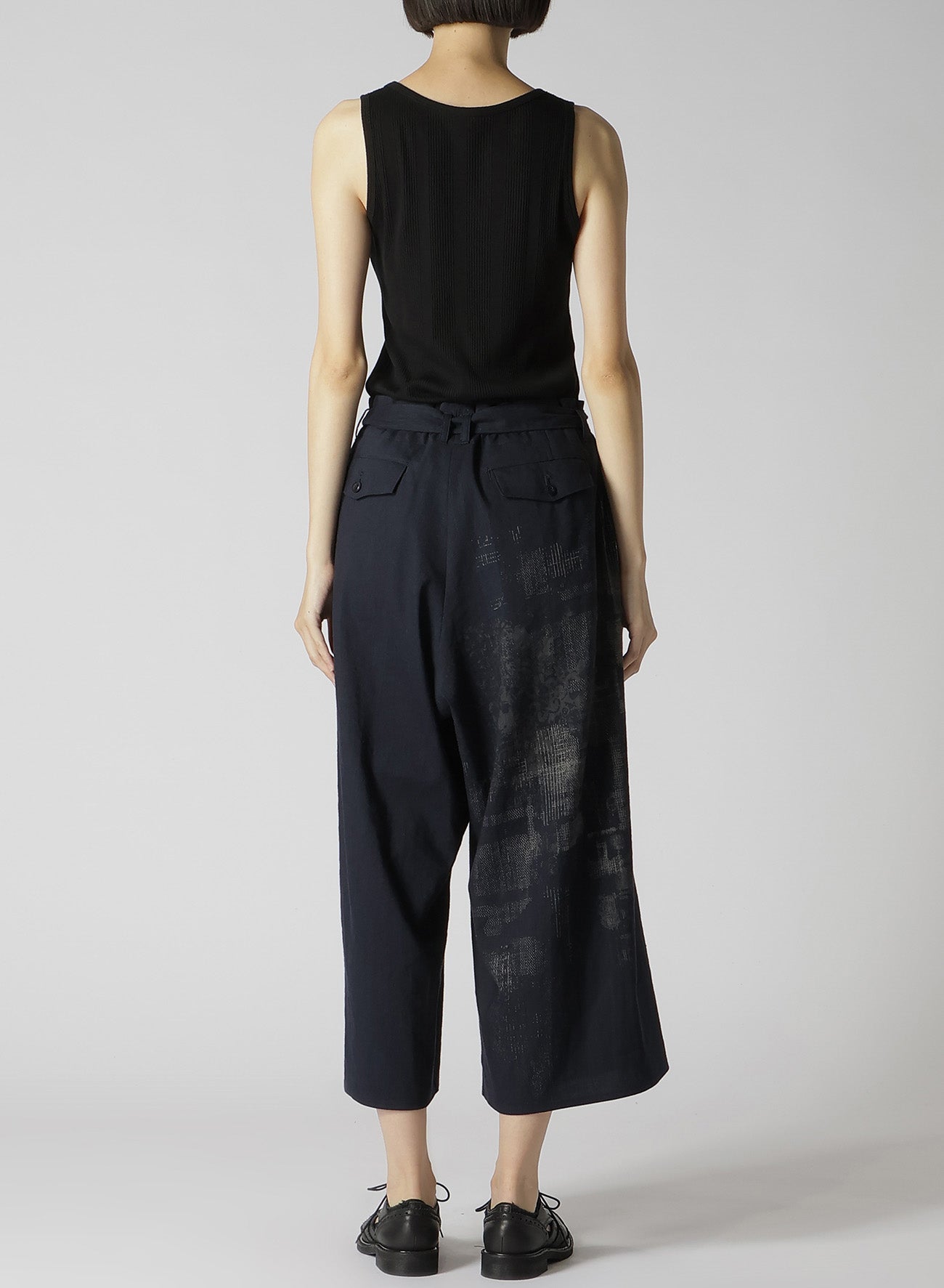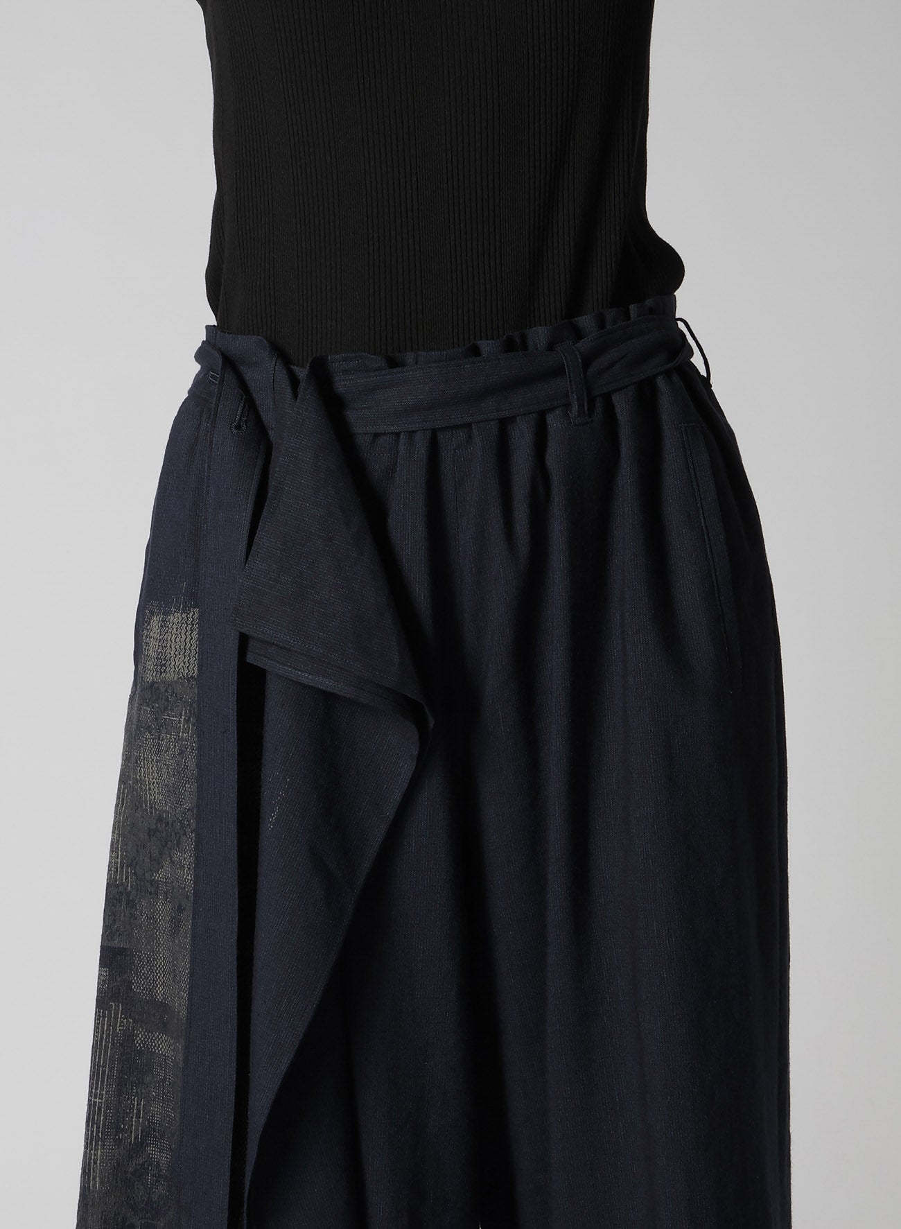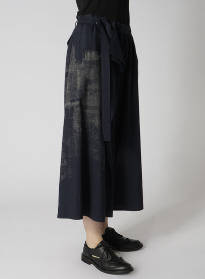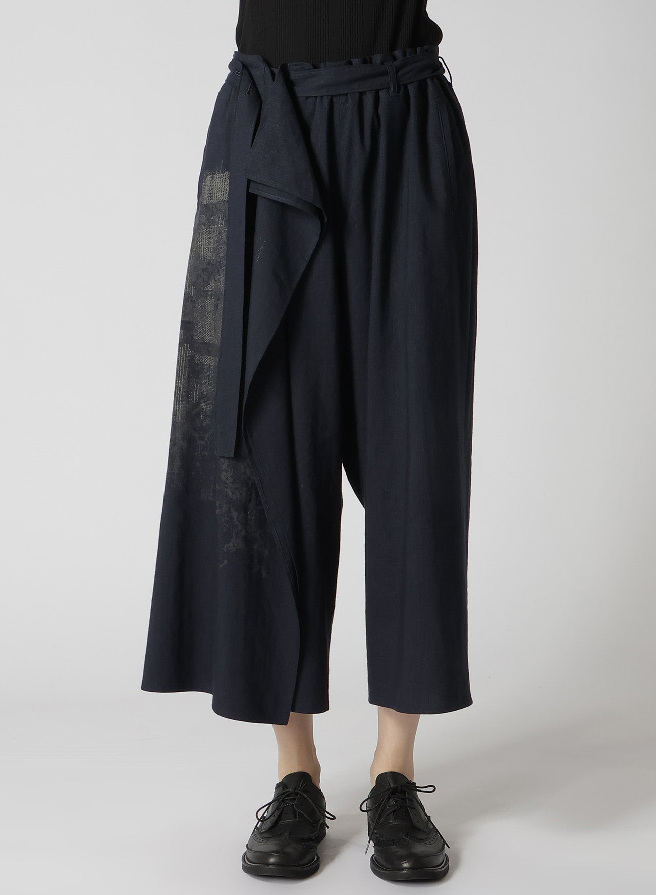 This item features pants with a bold houndstooth pattern and a belt to cinch the waist. The material offers a natural feel and a drapery effect, with a floating part on the right side that sways and reveals the leg through a slit, creating a breezy look. Enjoy the subtle yet signature design balance.