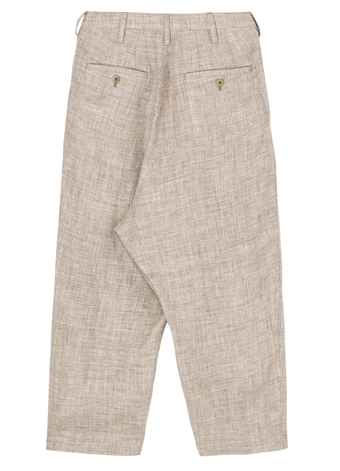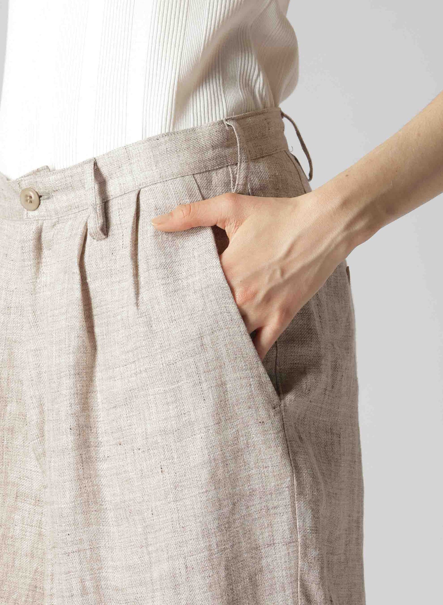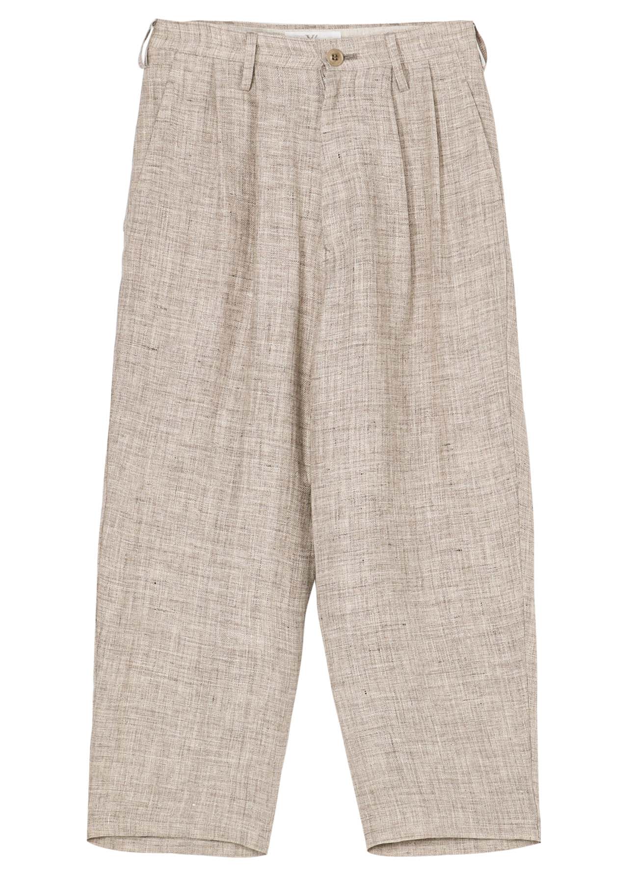 A pair of classically tailored linen tweed pleated pants, featuring a soft-wash finish for a natural and soft texture. The melange pattern offers an elegant yet casual look. Designed with a high rise, cropped length, and a tapering silhouette from the relaxed hip area to the narrower hem.