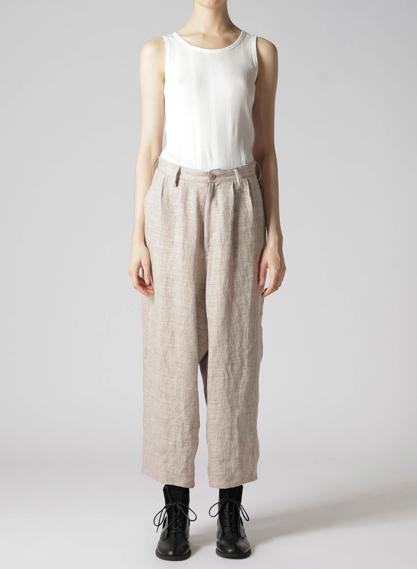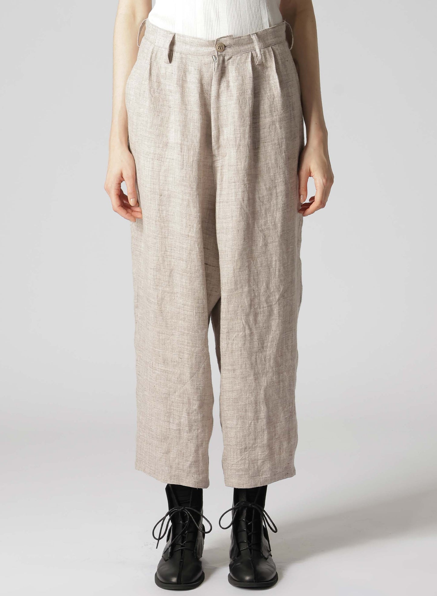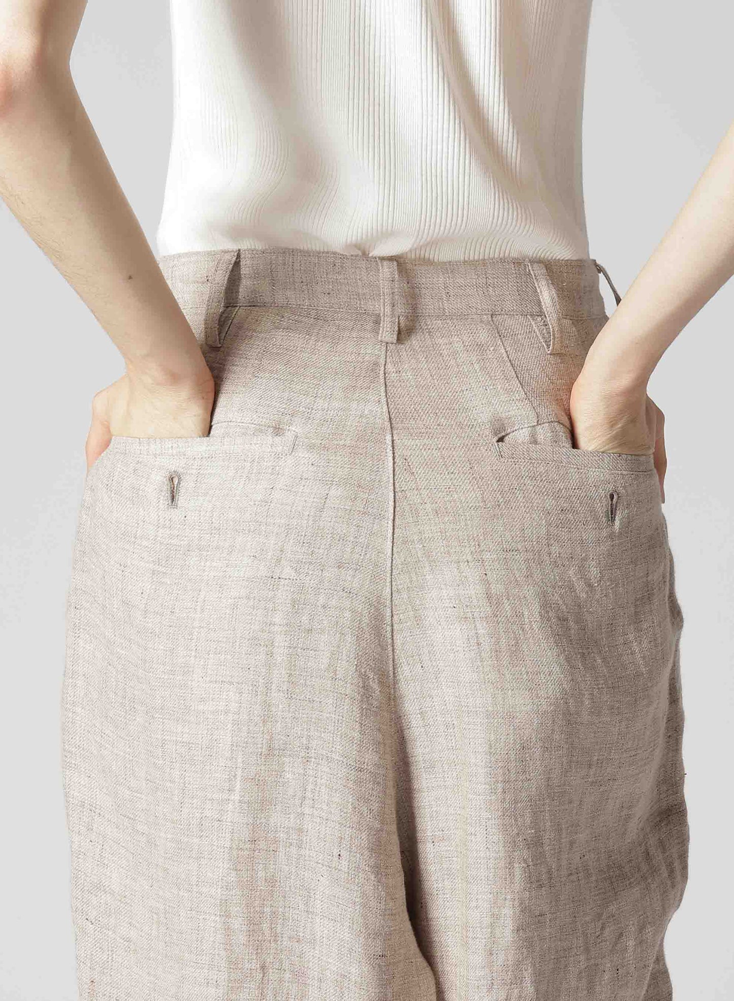 A pair of classically tailored linen tweed pleated pants, featuring a soft-wash finish for a natural and soft texture. The melange pattern offers an elegant yet casual look. Designed with a high rise, cropped length, and a tapering silhouette from the relaxed hip area to the narrower hem.