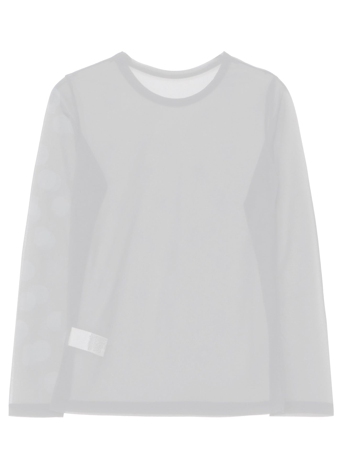 This long-sleeve top with a sheer polka-dot pattern is a unique piece where each dot is printed by artisans. The varying density and overlap create an appearance of dots floating above the fabric. A classic Y's item, it features a regular fit for a sleek silhouette.