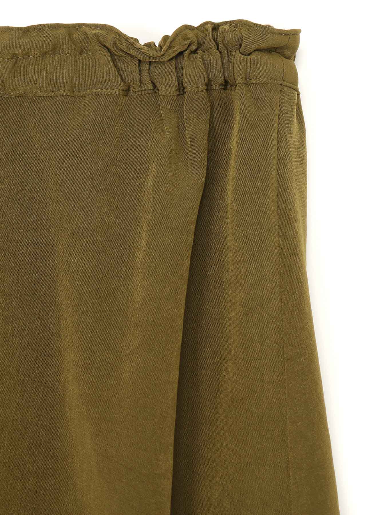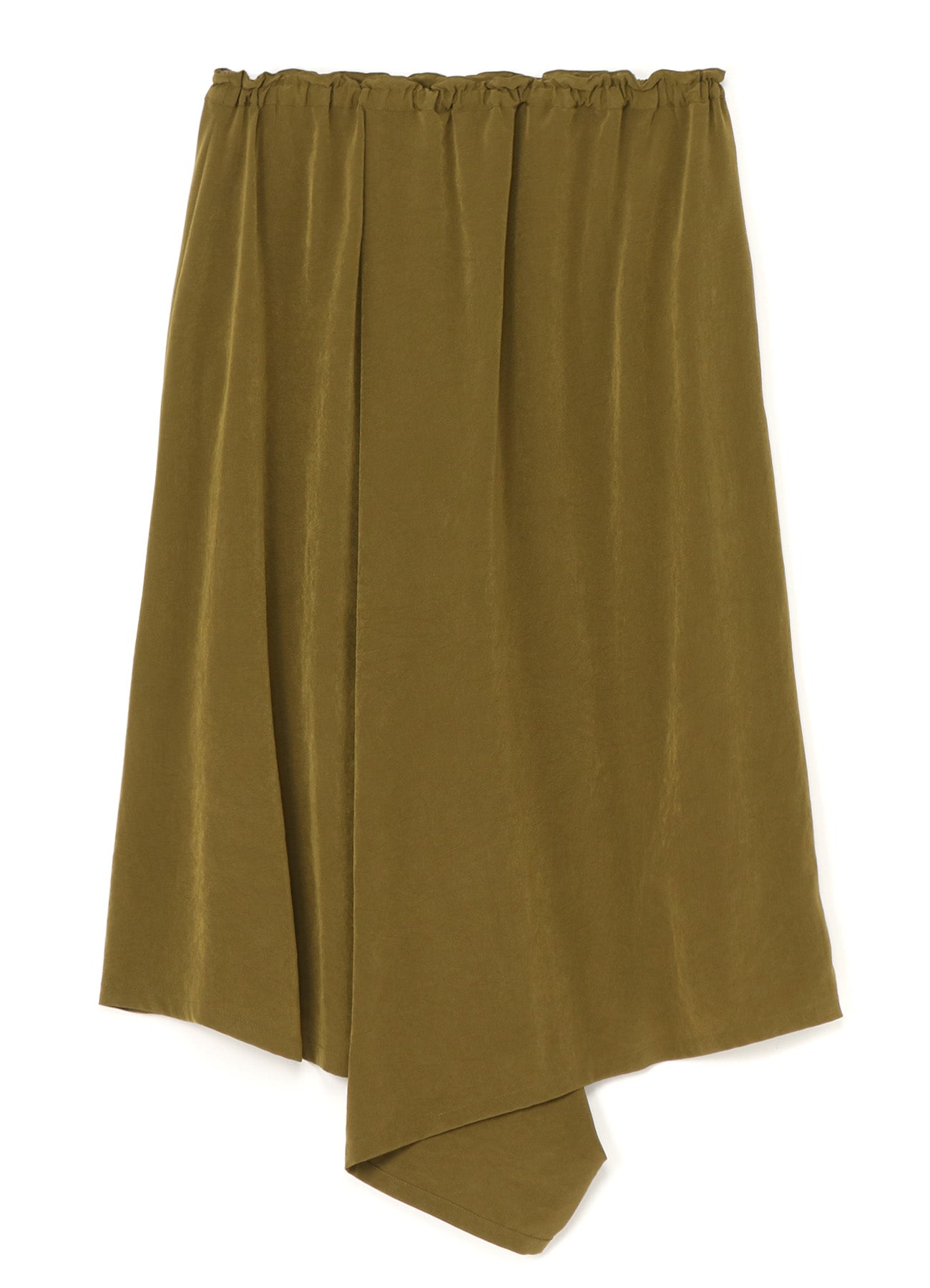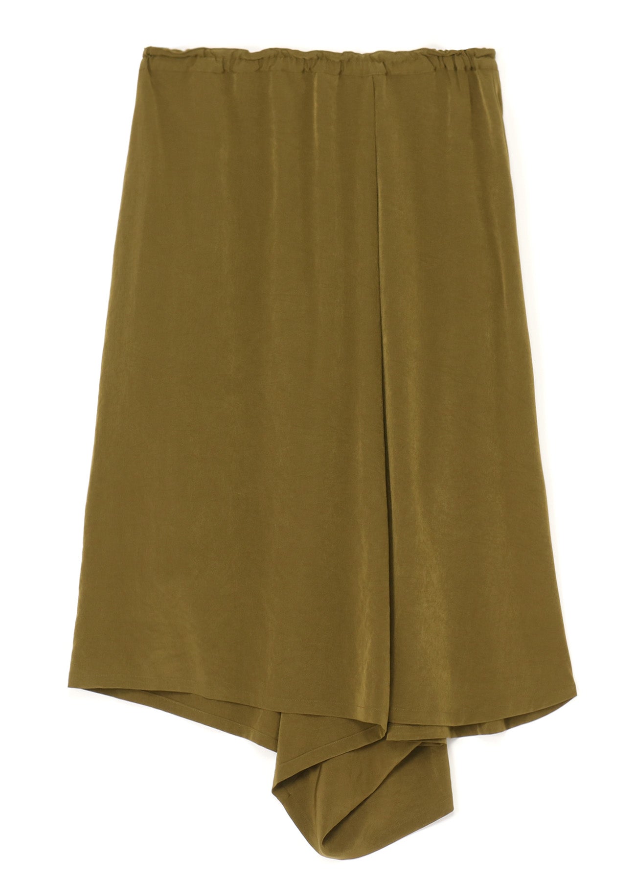 This popular skirt pants made of triacetate/polyester crepe de Chine is both wrinkle-resistant and luxuriously glossy, providing a soft and lightweight feel, perfect for any season. The asymmetric silhouette allows for 2WAY wear, and the adjustable waist tie enhances comfort. It features ample fabric for dynamic movement and changing expressions.