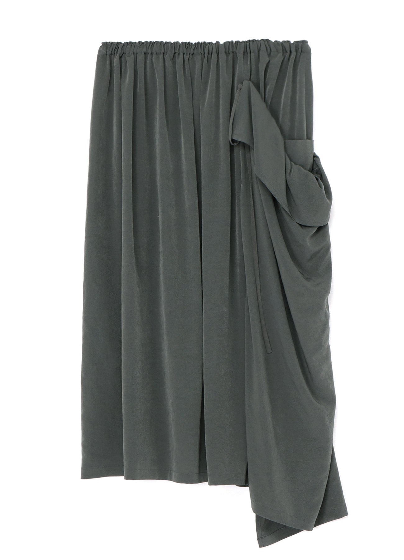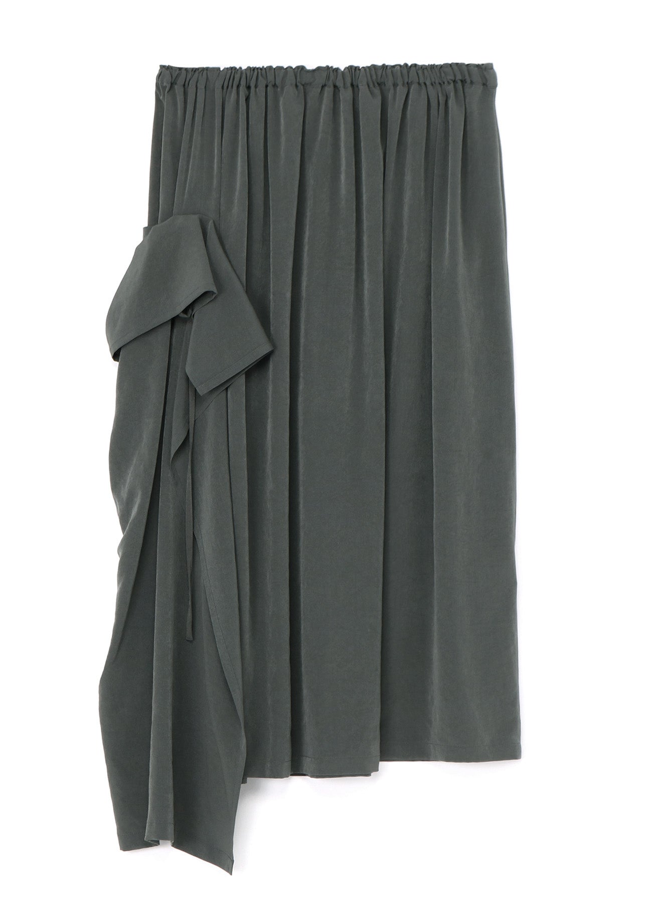 This skirt, made from triacetate/polyester crepe de Chine, offers wrinkle resistance and a soft sheen for a luxurious look. With its elastic waistband, it provides a stress-free, comfortable fit. The pocket-lining detail creates a voluminous gather and an asymmetric hem, adding an accent to any outfit.