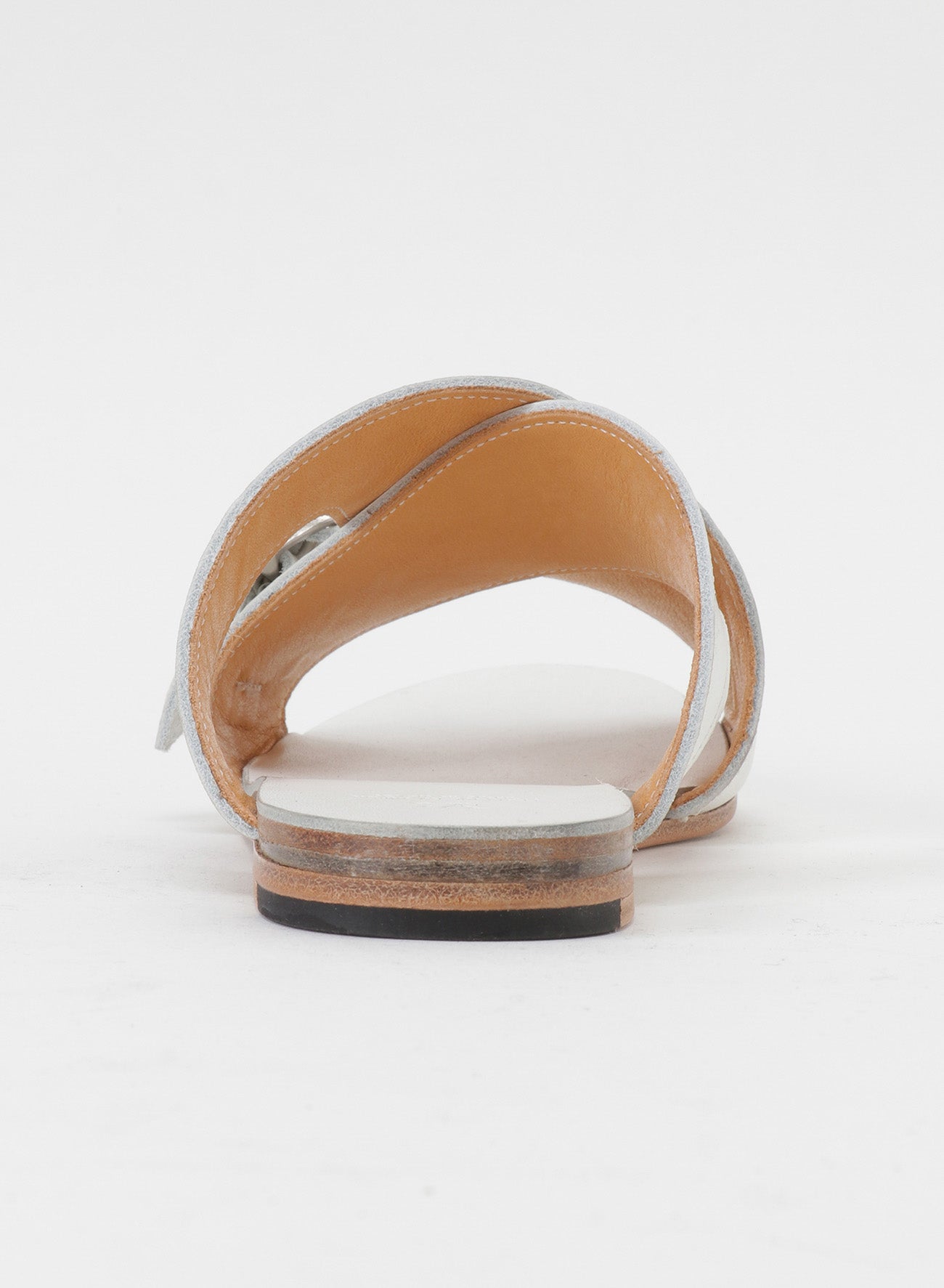 SEMI GLOSS TANNED LEATHER FLAT SANDALS