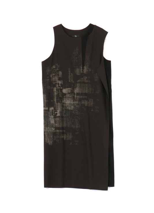 W/RY GAUZE WASHER COLLARLESS DRESS