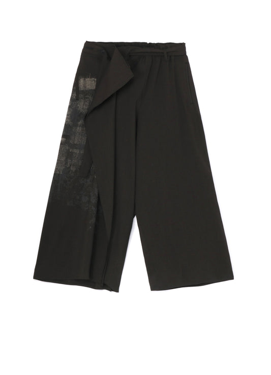 WRINKLED WOOL/RAYON TWILL PLEATED WRAP SKIRT
