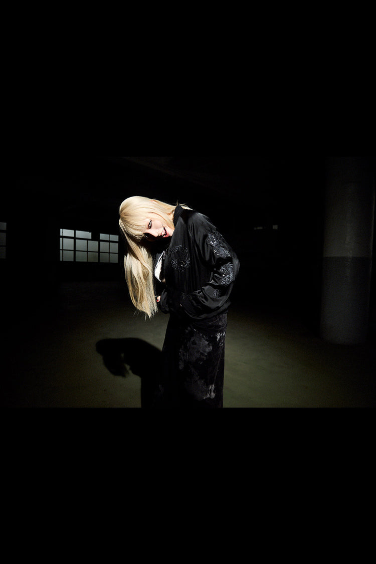 DISCHARGE-PRINTED VELVET SIDE DRAPE SKIRT