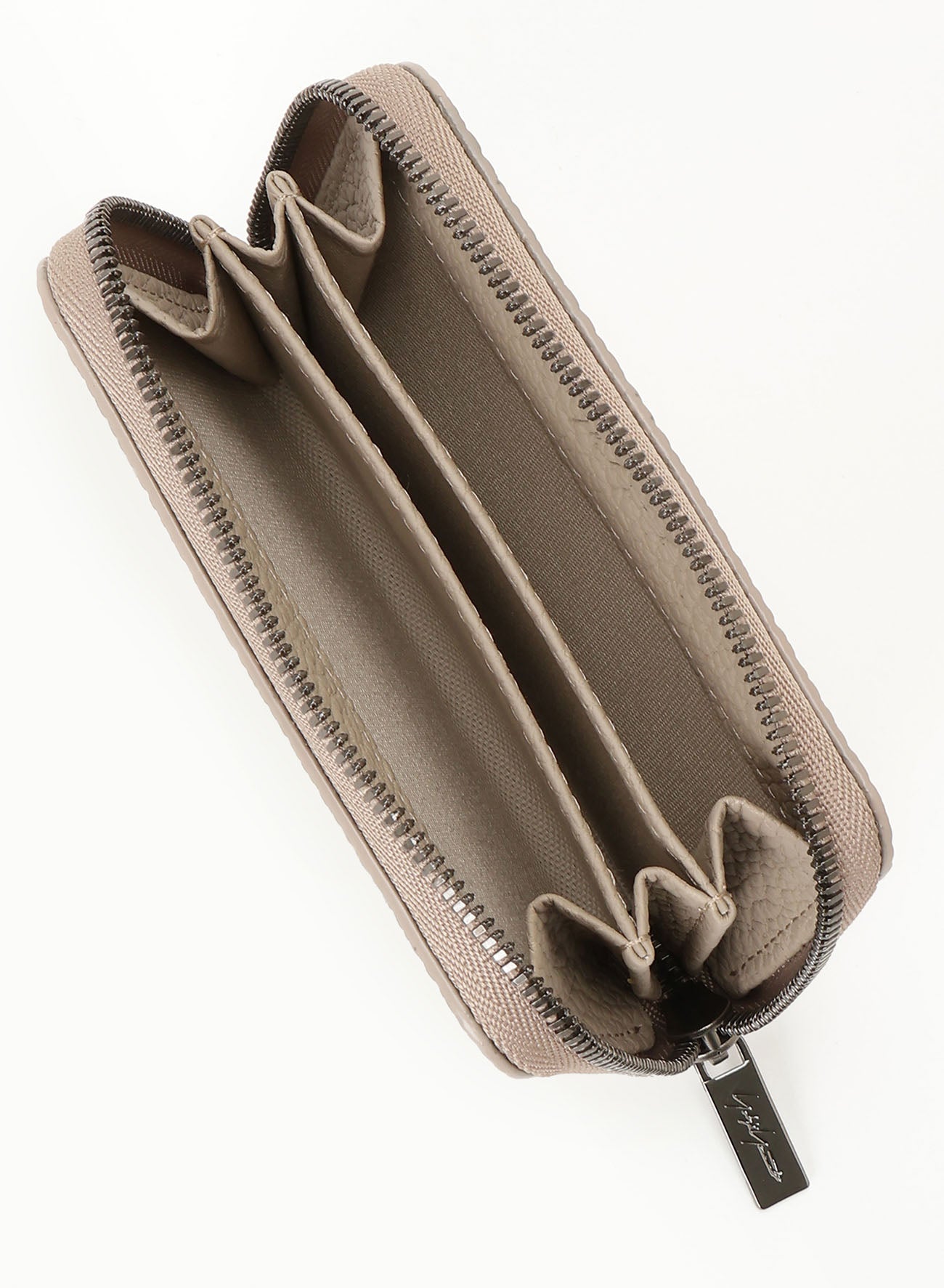 这是一个简单的圆形拉链卡包。它的精致外观是通过使用光滑的德国缩皮革实现的,增强了产品的高端感。