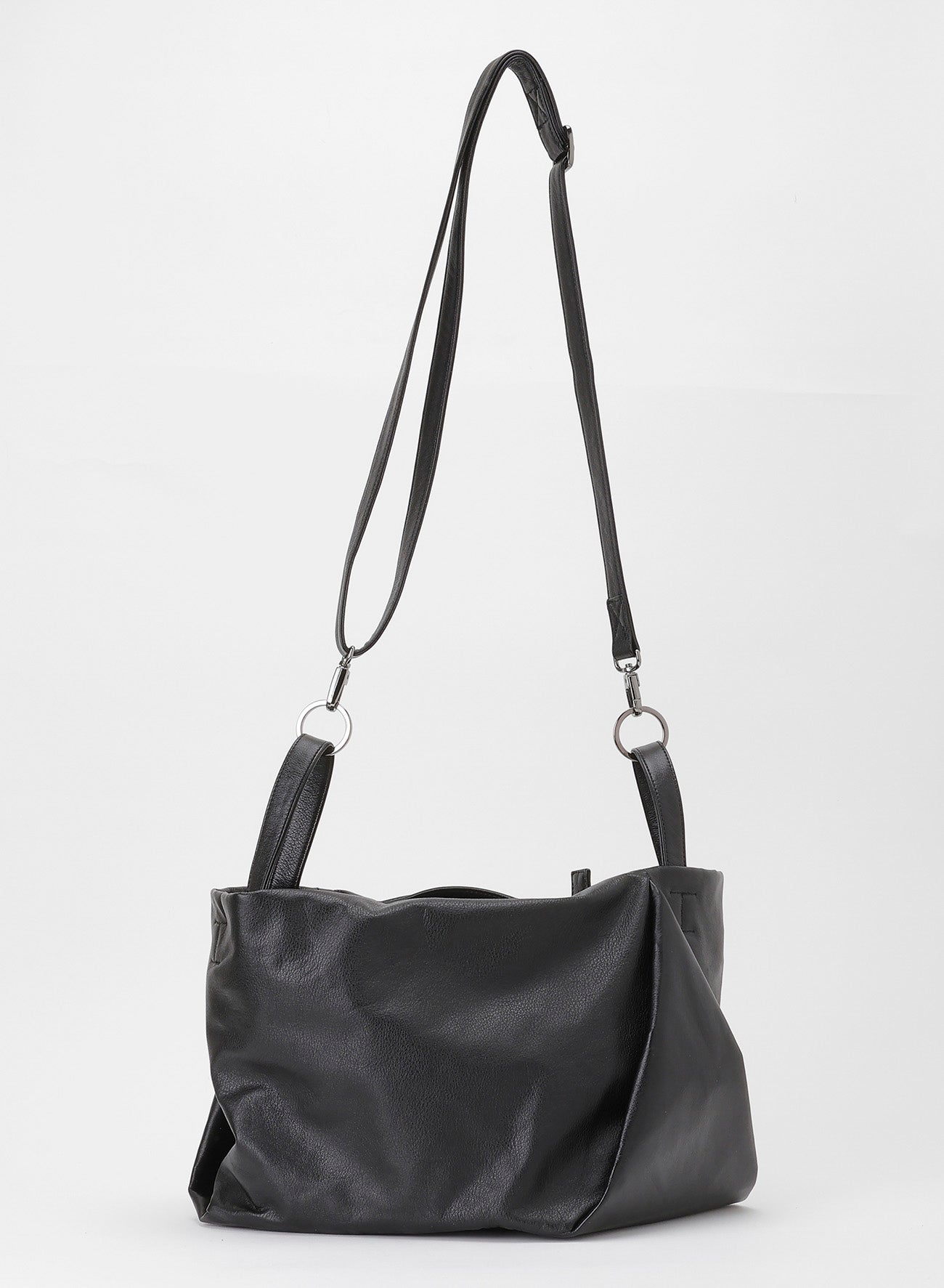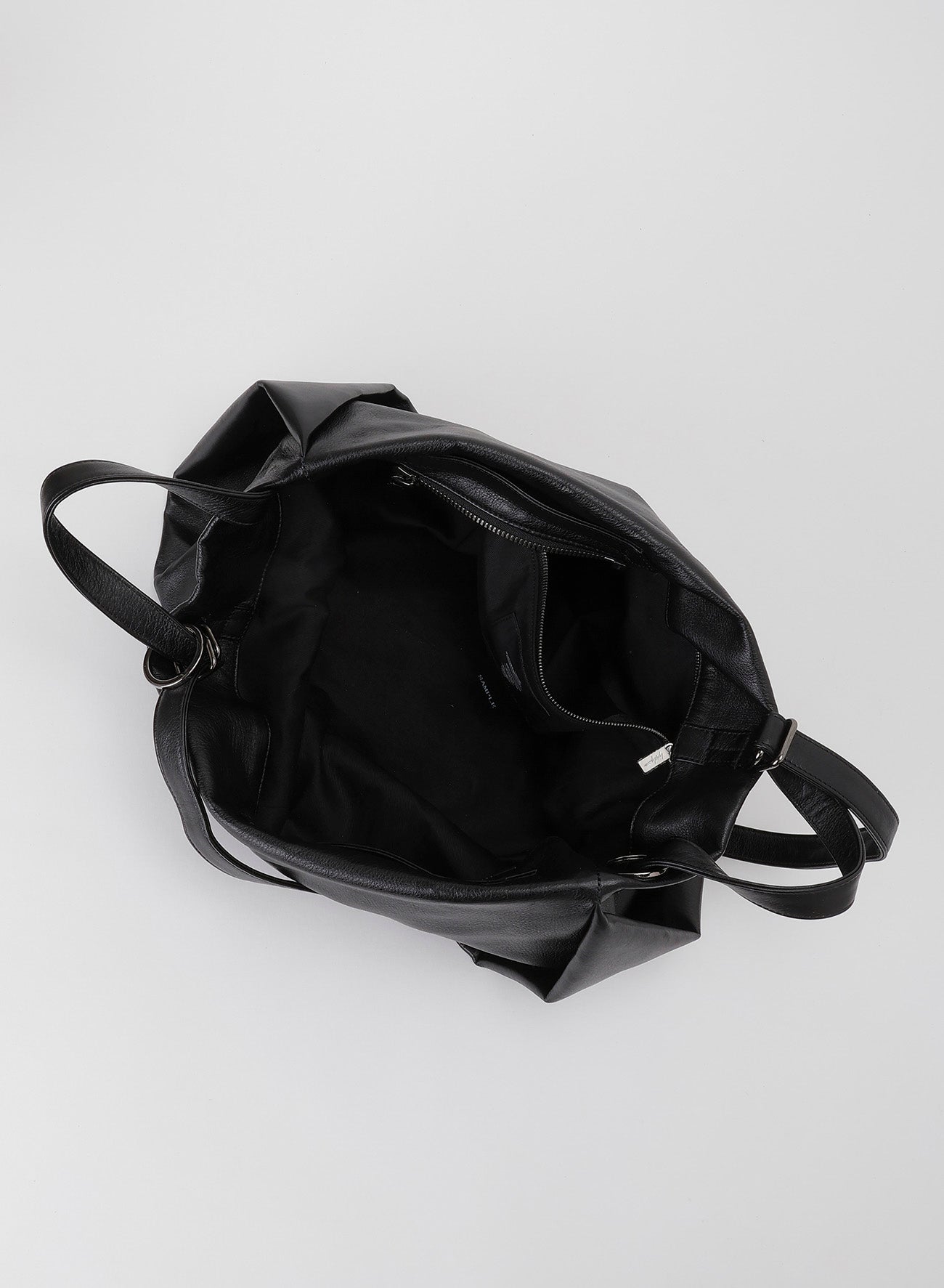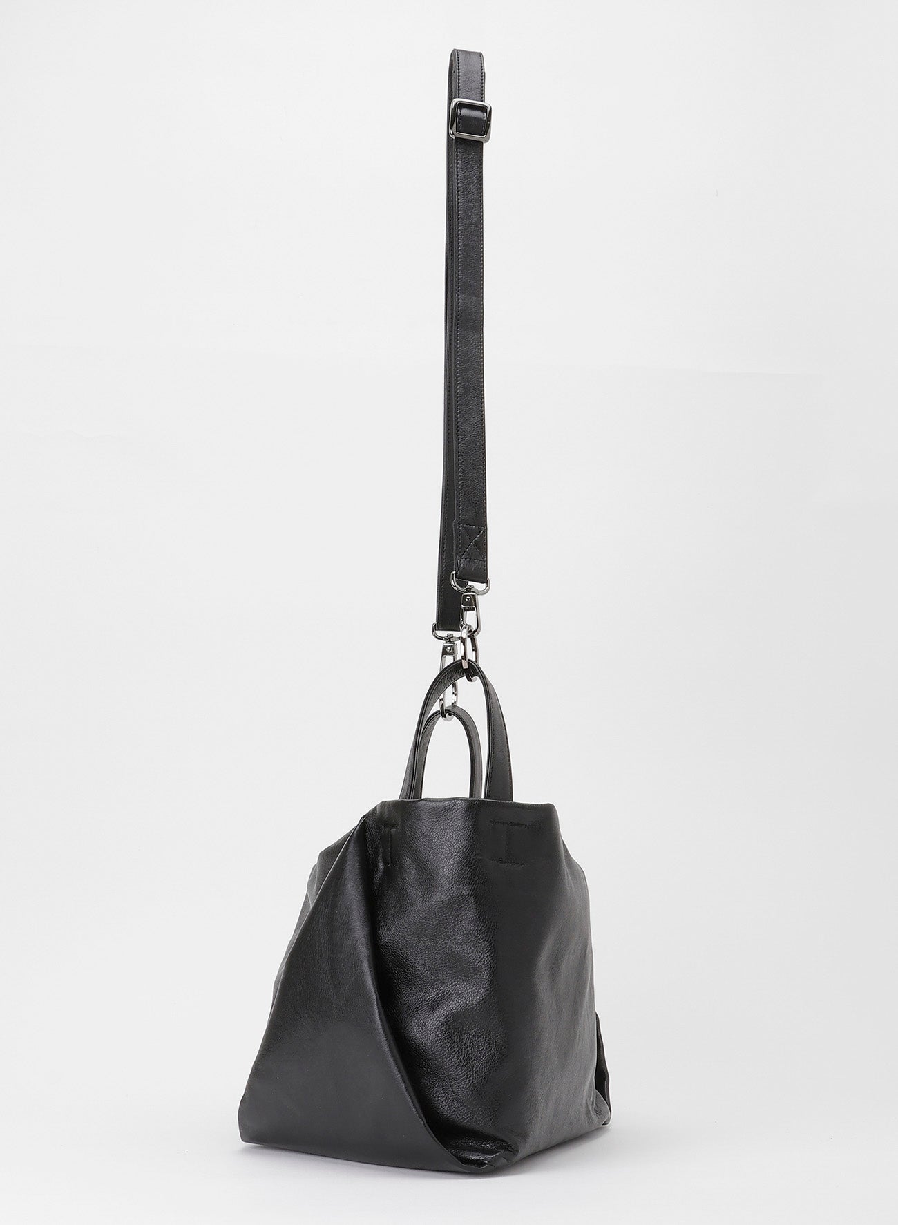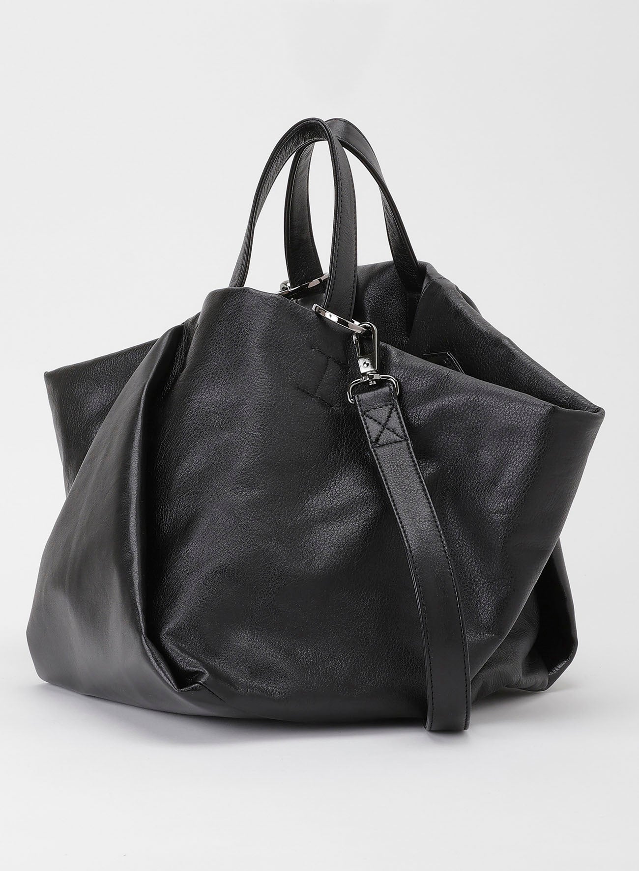 这款包呈现出类似花蕾的自然垂坠感,具备三种携带方式:手柄、中央手柄和肩带。可容纳A4尺寸,采用柔软光滑的服装皮革制成,表面有光泽,可能带有天然皮革的特征。