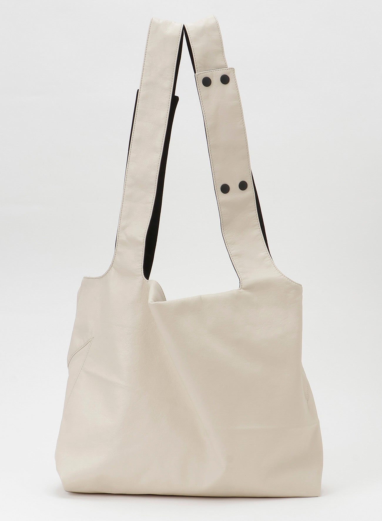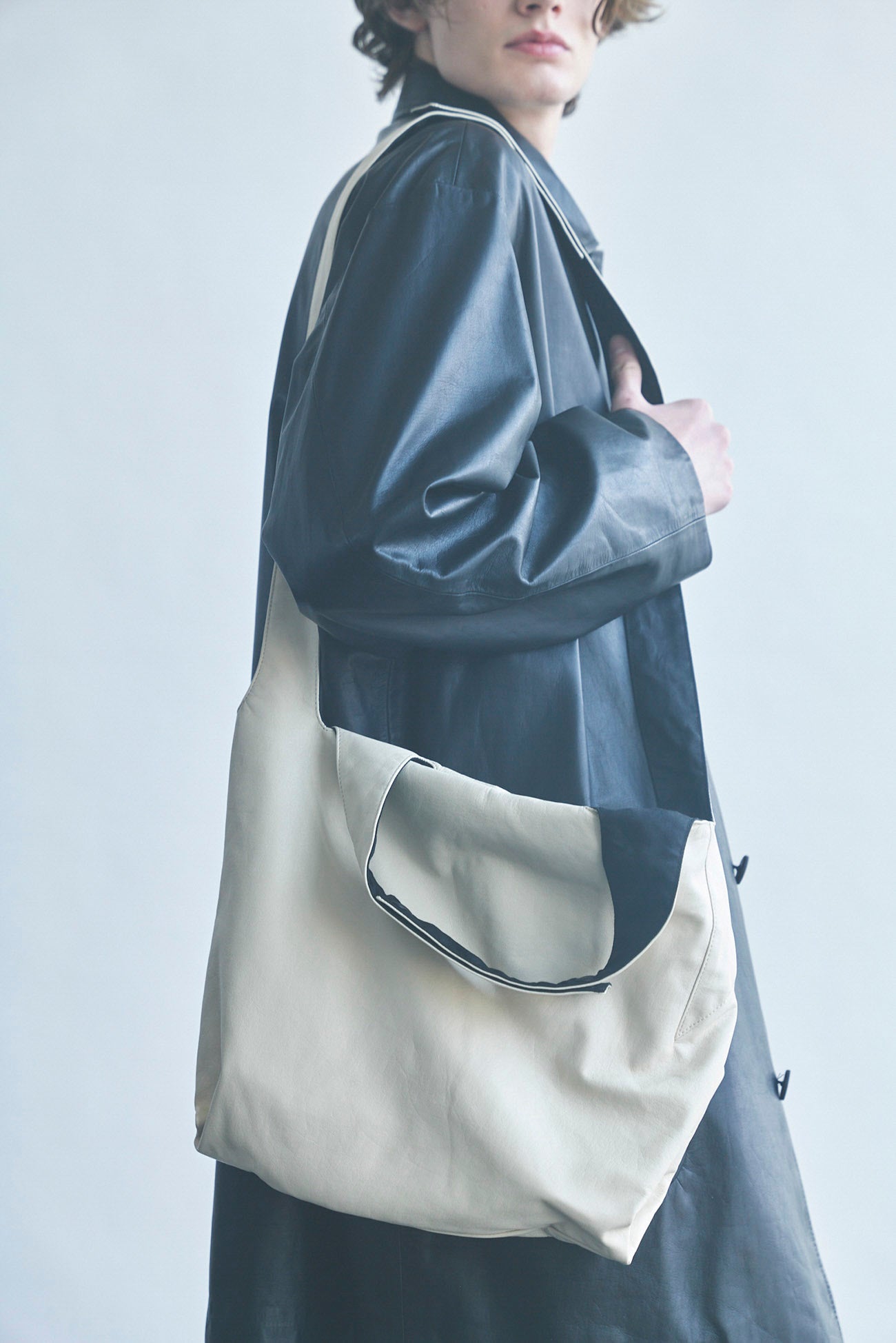 The classic "INFINITE" now comes in a new color. Size S. With clip buttons, it can be styled in 8 different ways, and it features a reversible design. The Y-shaped side seams add flair. Made with garment leather and cotton twill, natural leather may have unique marks and color variations.
