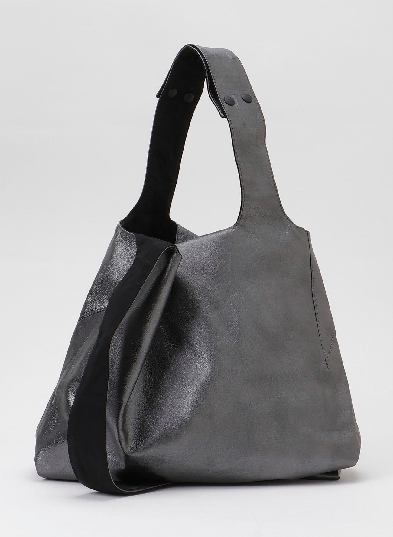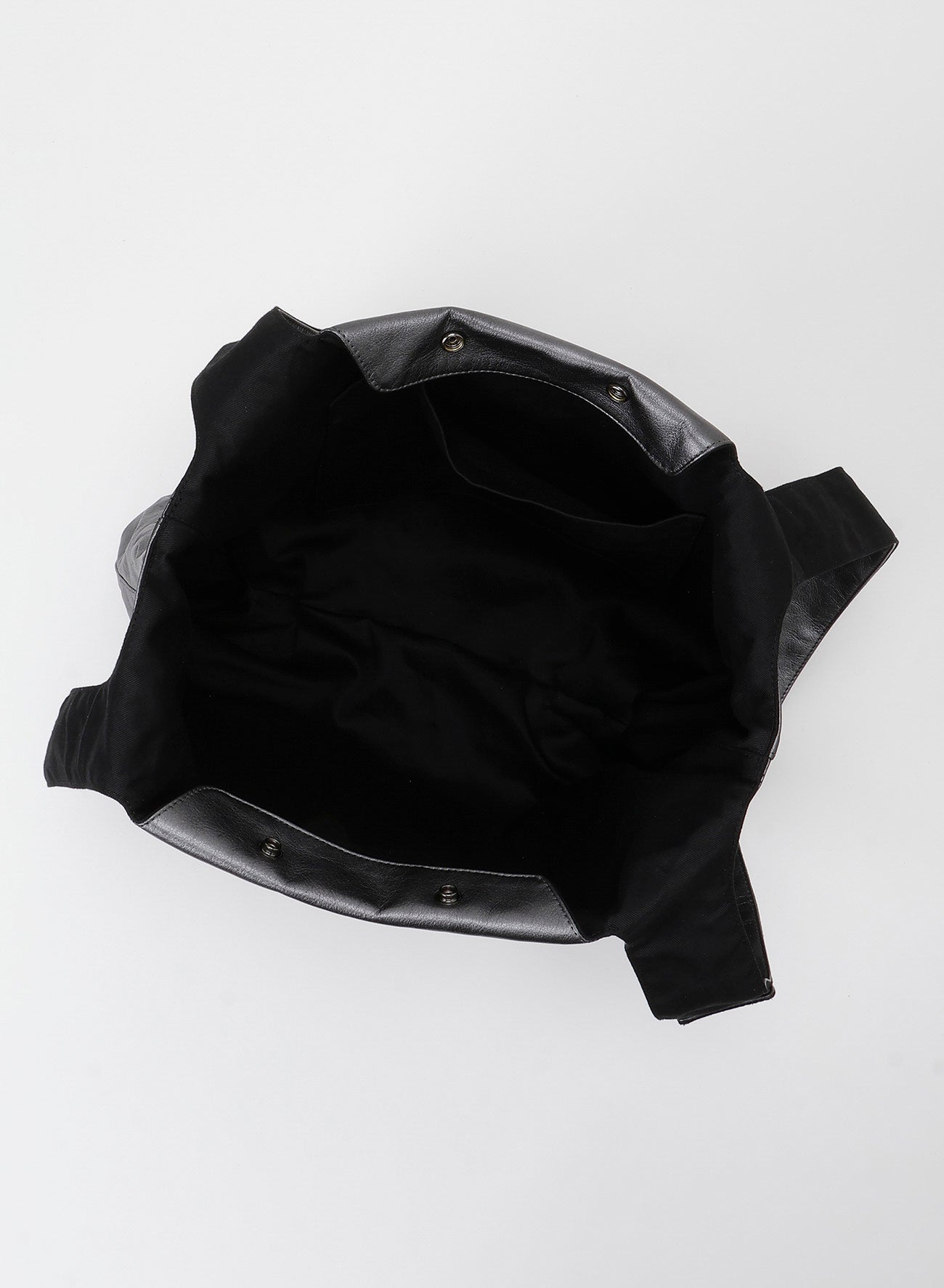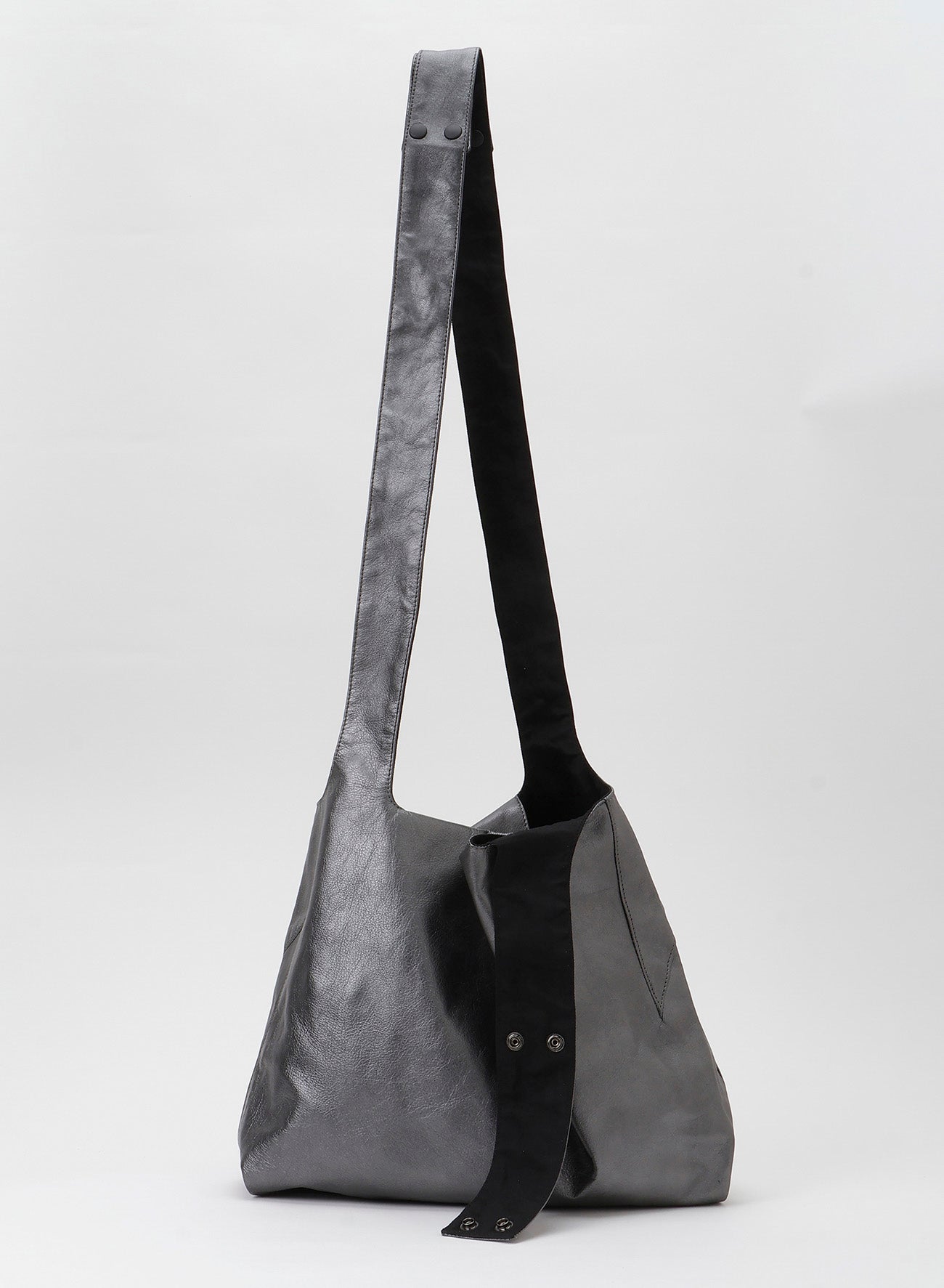 The new color variant of the signature "INFINITE" design, available in size S, features clip buttons allowing for versatile 8-way usage. This reversible piece combines shiny garment leather with cotton twill. The unique Y-shaped side seams add a playful touch. Note, natural leather may exhibit slight imperfections or color variations.