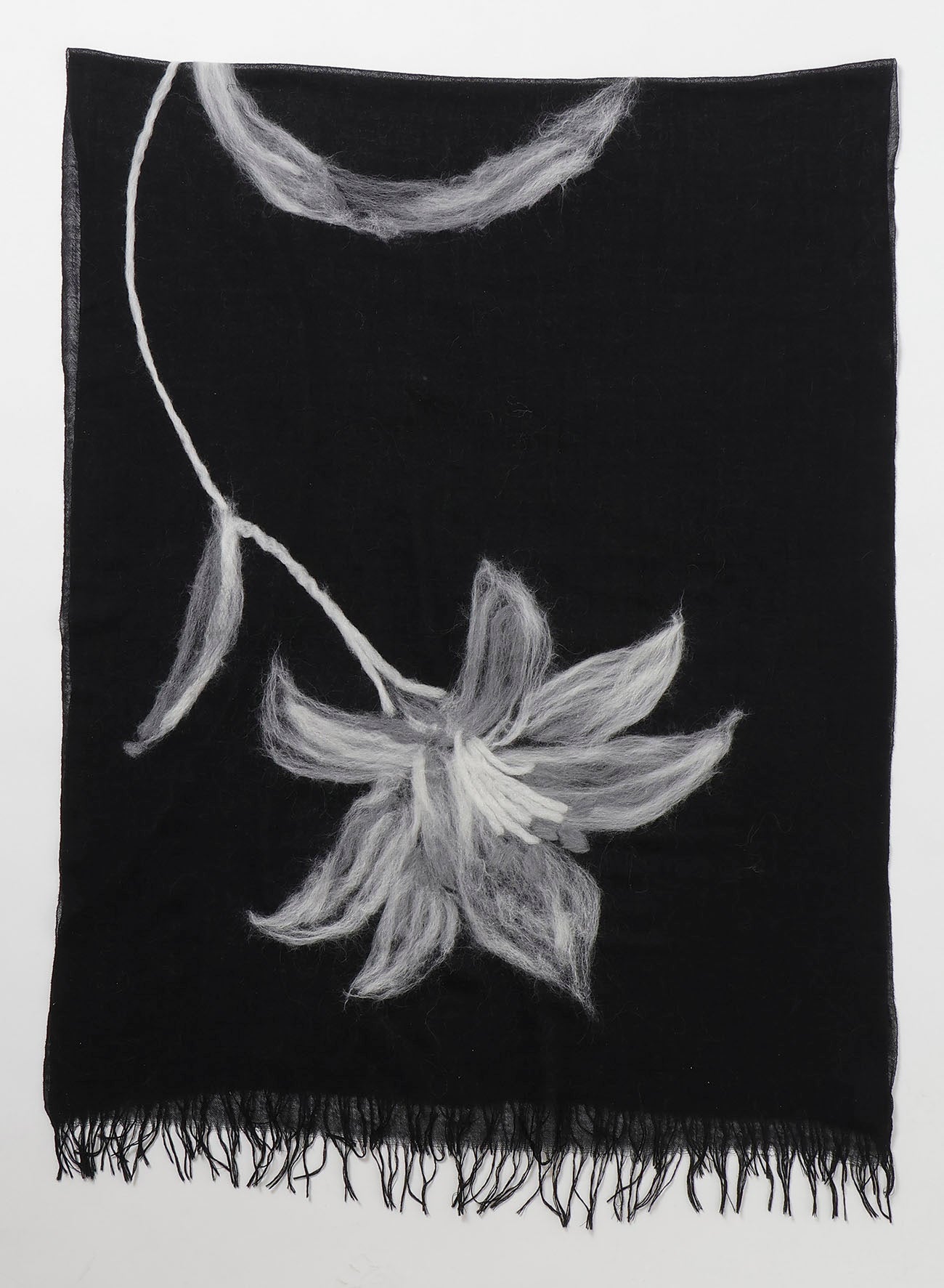 这款轻质围巾采用针刺技术,将百合花巧妙展现。每一朵百合都经过工匠精心排列,使每件作品都具独特图案。
