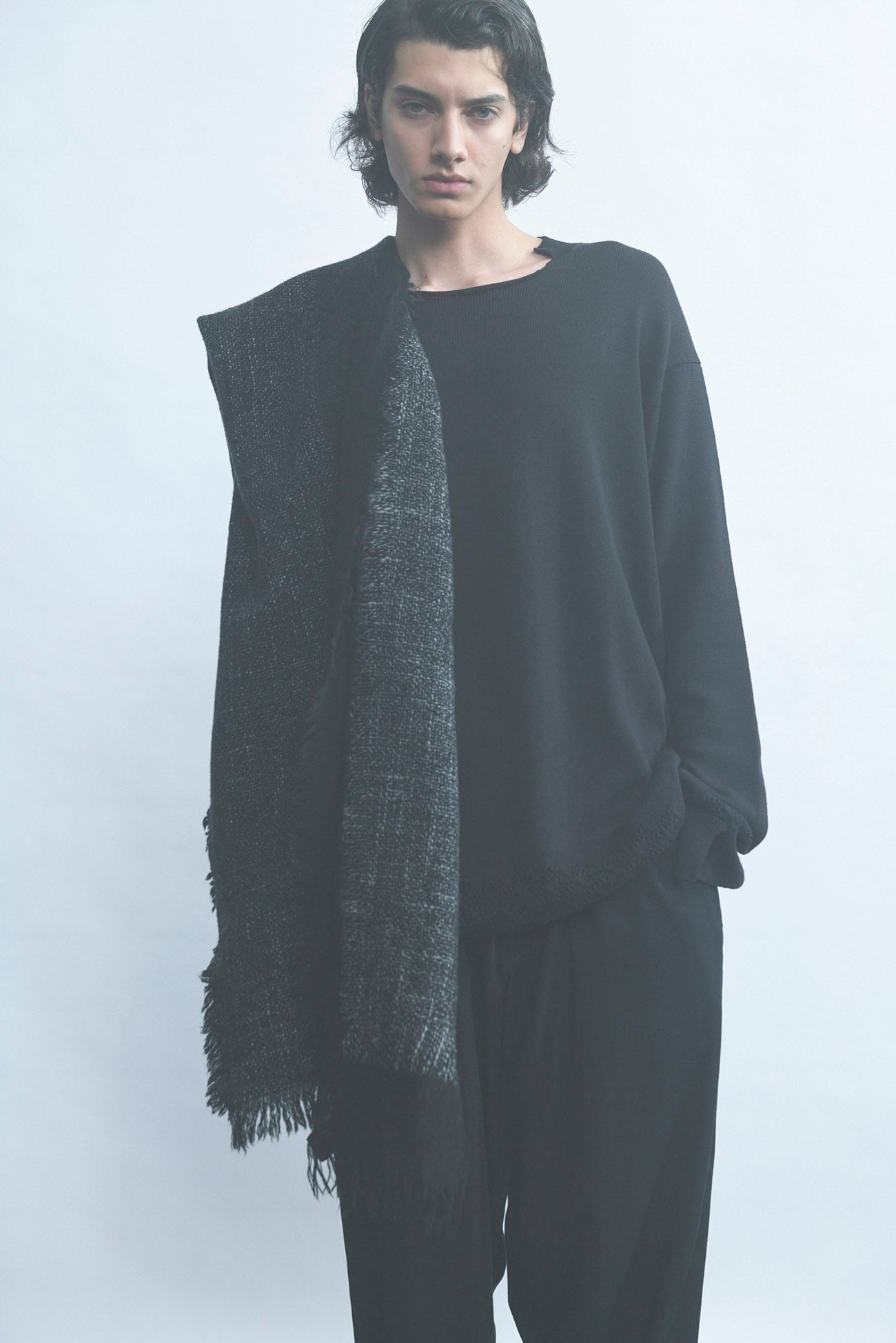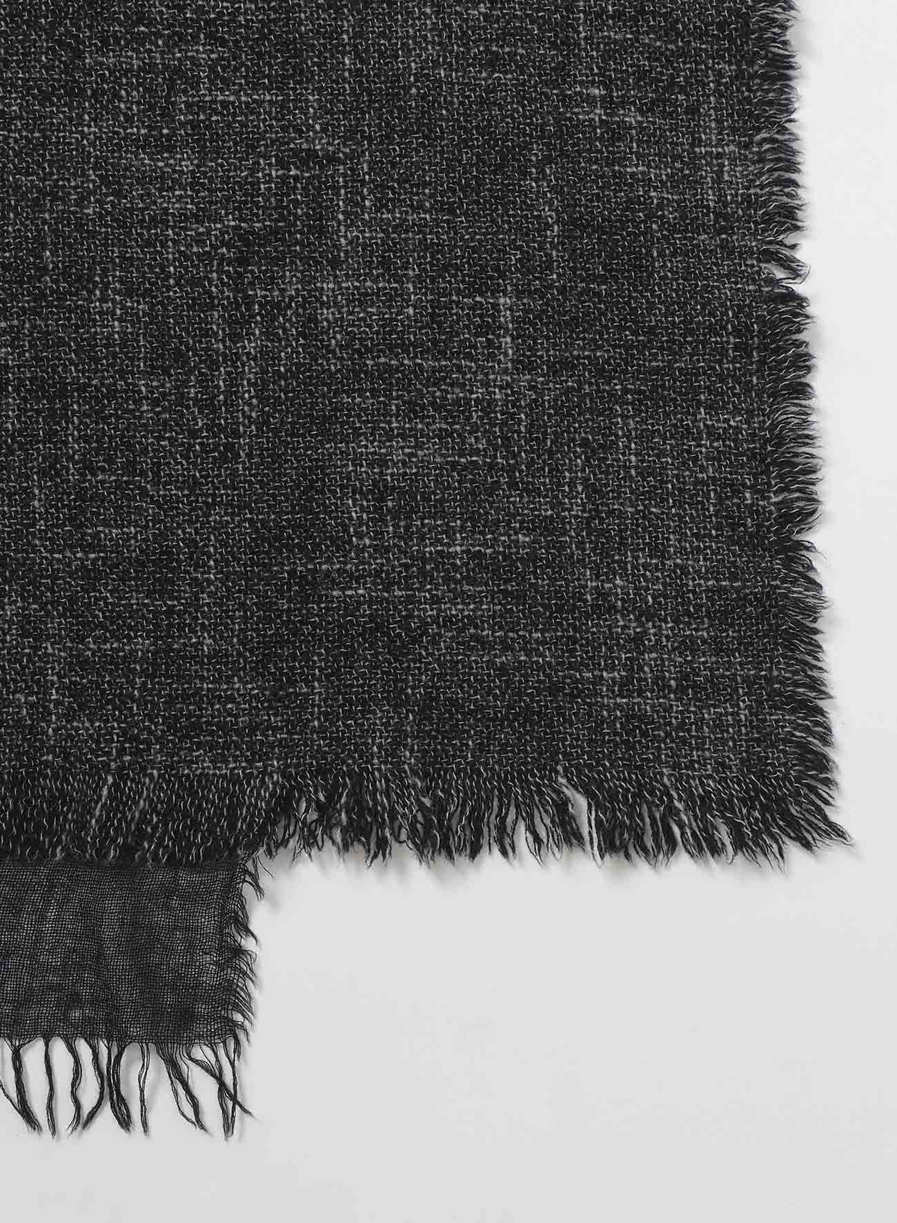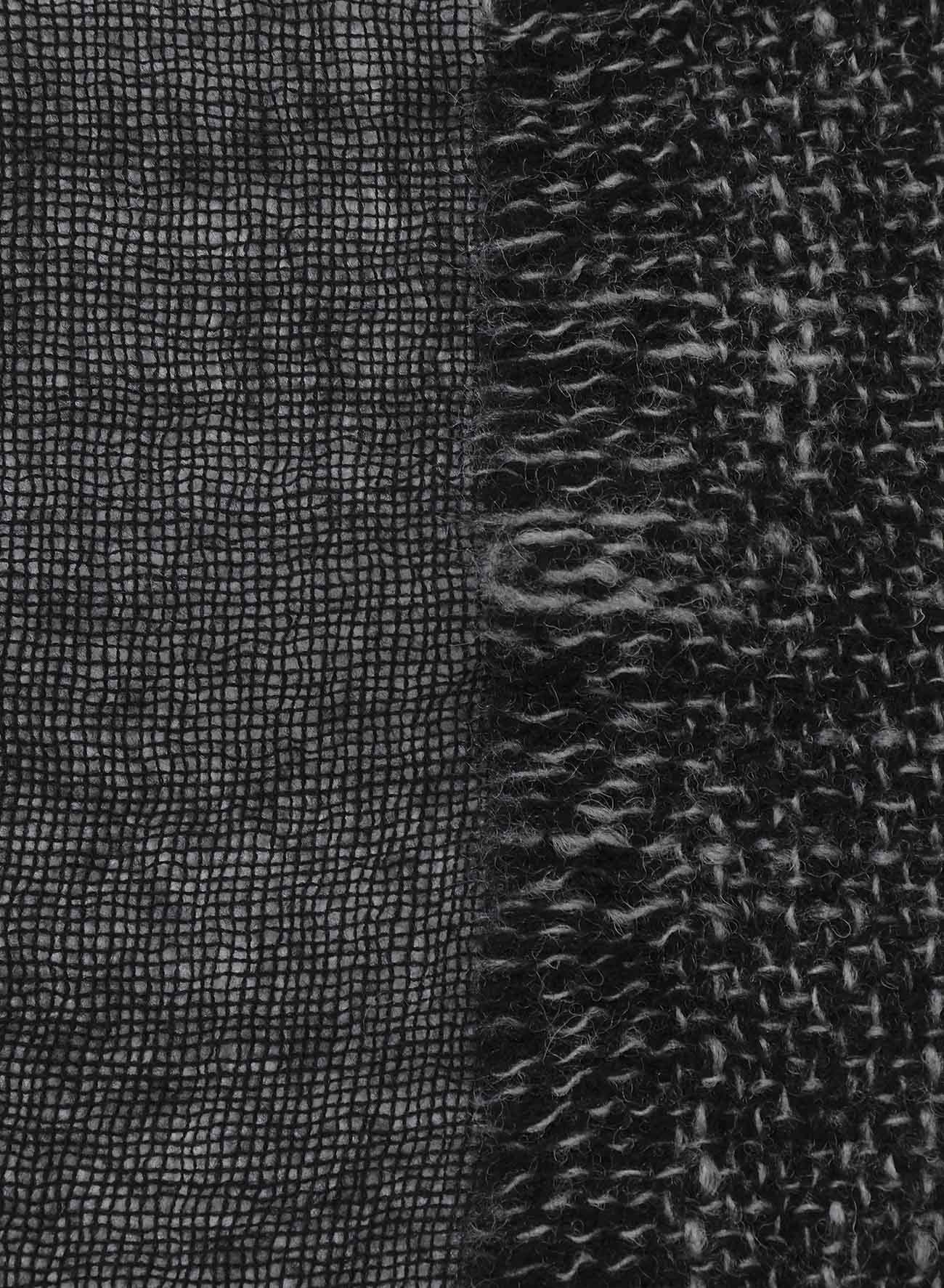 这款围巾由两条黑色围巾通过针刺技术结合羊毛薄纱和花呢制成。围巾错落排列,穿着时动感十足,呈现出独特的视觉效果。 - 羊毛薄纱和花呢混合 - 非对称连接增加动感 - 穿着时呈现引人入胜的图案 - 手工针刺技术制作