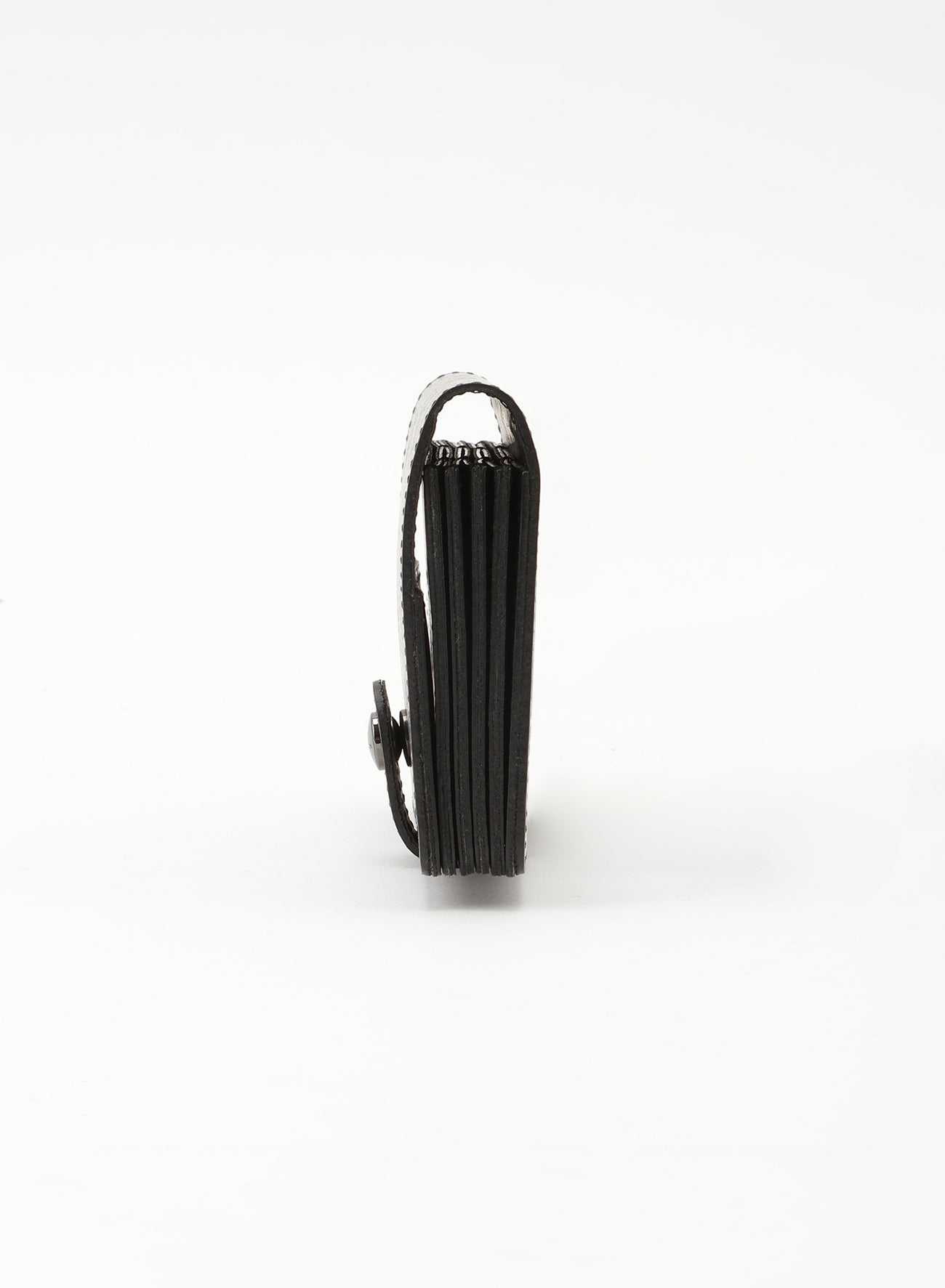 这款卡包采用手风琴式设计,具有五层卡槽。它包括一个翻盖,可以将钞票折叠成三折并存放硬币,作为紧凑型钱包使用。