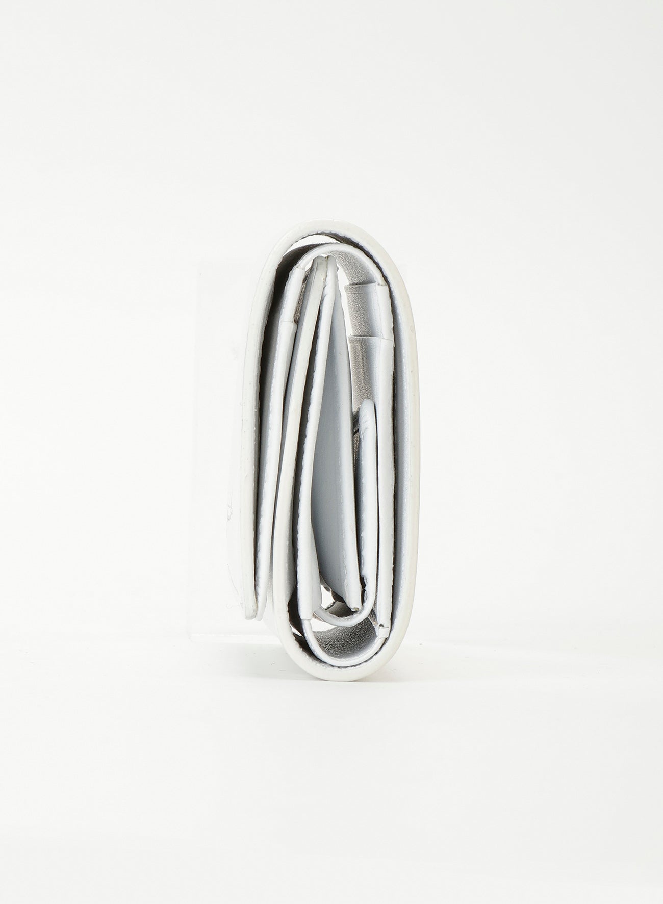 一款紧凑且易于携带的三折钱包,采用柔软的缩小皮革制成。它具有五个卡片口袋,既时尚又实用。