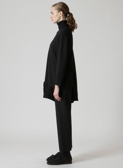 这款高领针织衫以富有表现力的缝线为特点,唤起了秋冬季节的氛围。错落有致的下摆轮廓引人注目。它由高档纱线与优质美利奴羊毛混合制成,手感奢华。