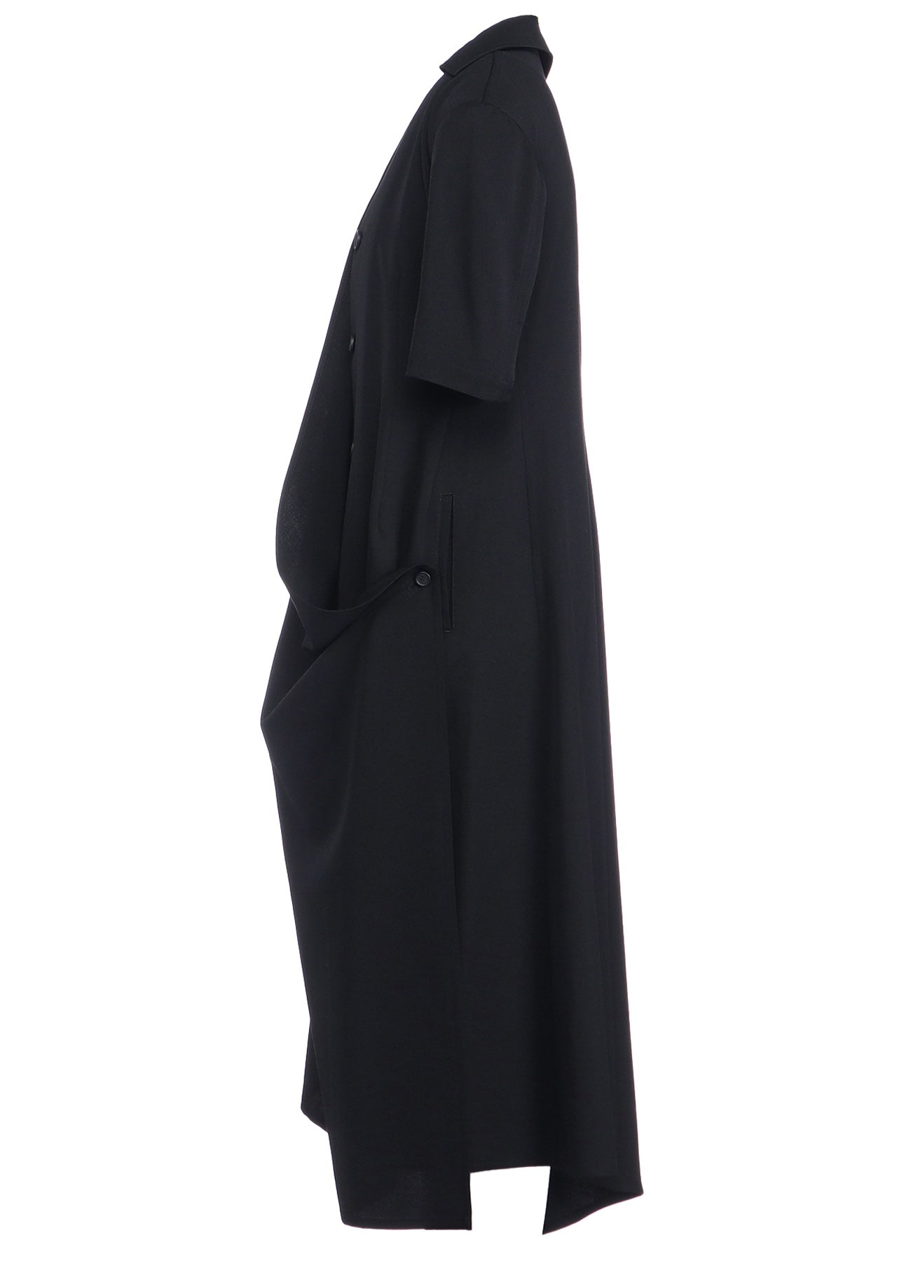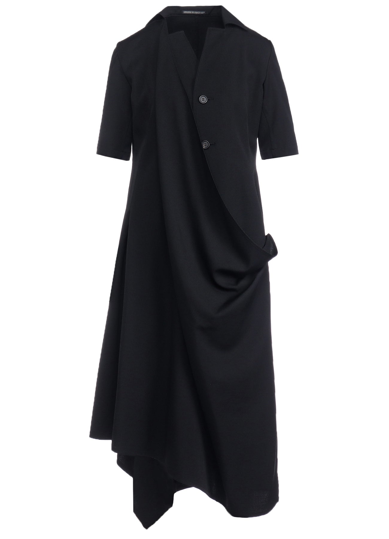 这款来自Yohji Yamamoto的优雅短袖悬垂裙以其标志性的皱褶斜纹布打造出美丽的轮廓。身体的流动褶皱优雅地向外散开,适合多种场合穿着。