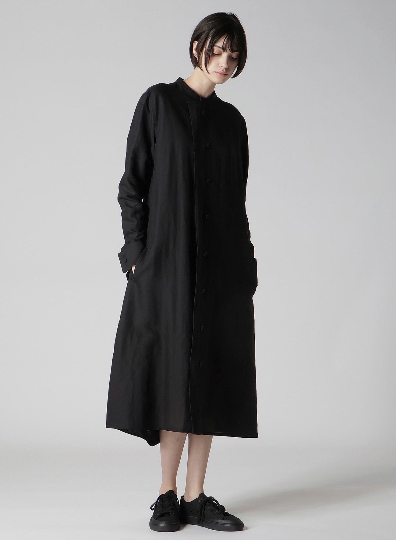 这款长款DRESS采用下垂式设计,将优雅与衬衫轮廓结合。面料以其干爽质感和干净的LINEN风格而闻名,呈现精致外观。模特穿着样品款式,可参考SIZE INFO以获得可能的差异信息。