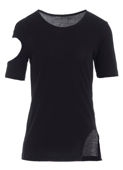 这款圆领上衣以其剪影镂空设计吸引眼球。采用Strong-Twist面料,具有透气性和弹性,易于穿着,营造干净的剪影。该上衣在风格上提供舒适,完美适合休闲出行或叠穿。
