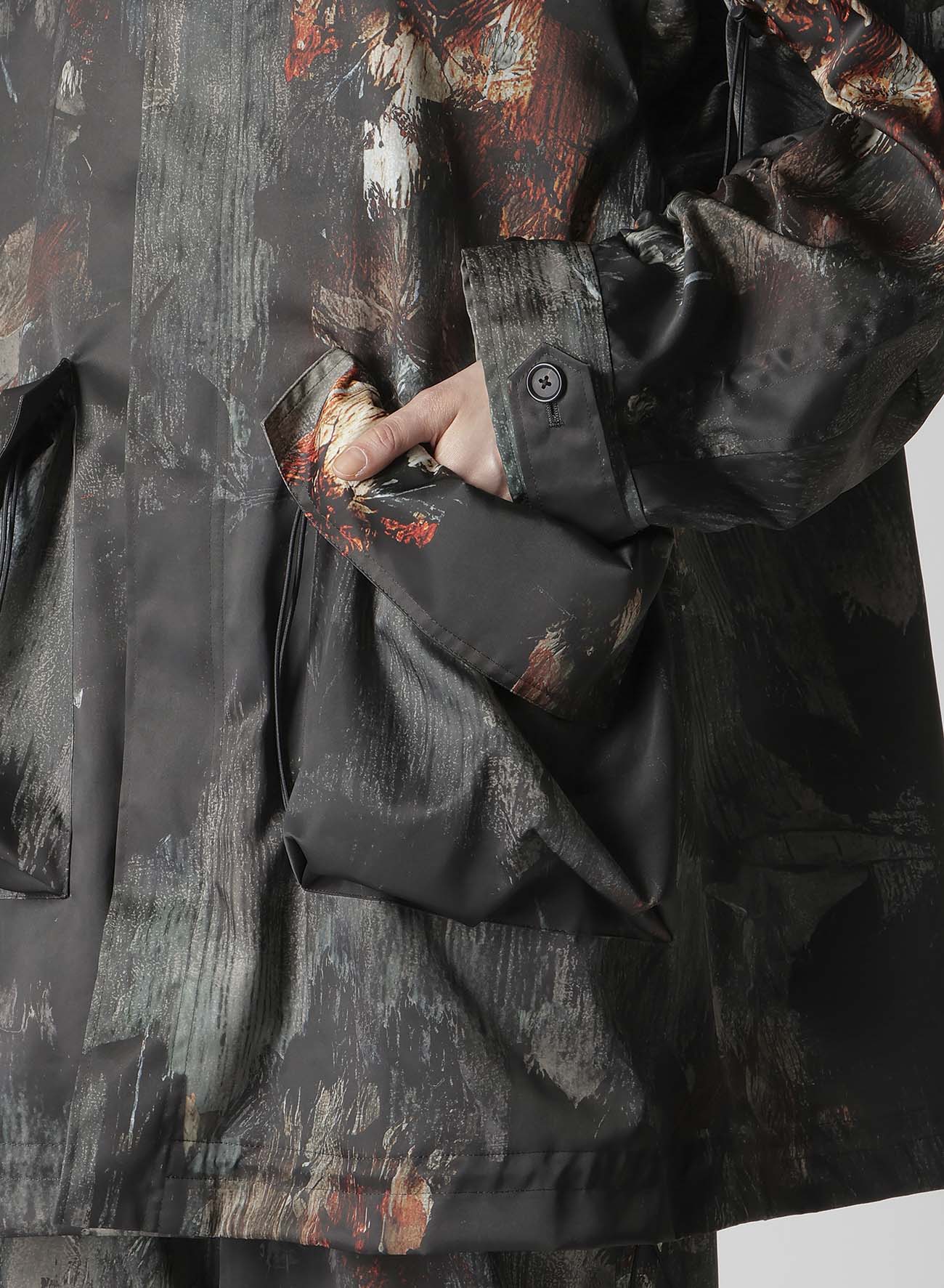 A vibrant flower print adorns this nylon twill adjustable coat. Designed for a relaxed fit, it's easy to layer over any inner wear. Featuring adjustable drawstrings for customized styling. Note: the model's image uses a sample item; the final product may differ. Refer to SIZE INFO for details.
