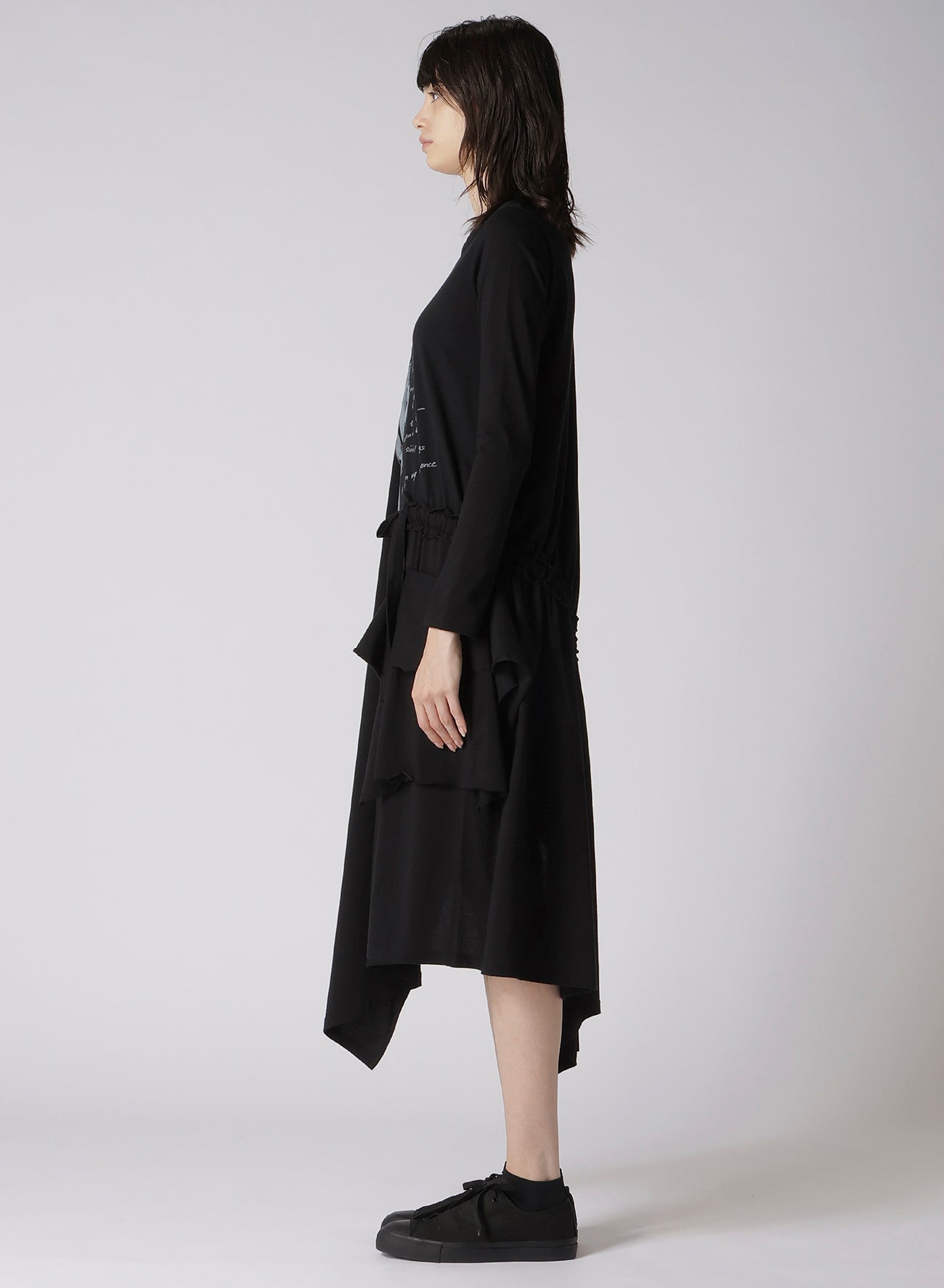 COMBED JERSEY PIGMENTED PT PRINT DETAIL DRESS