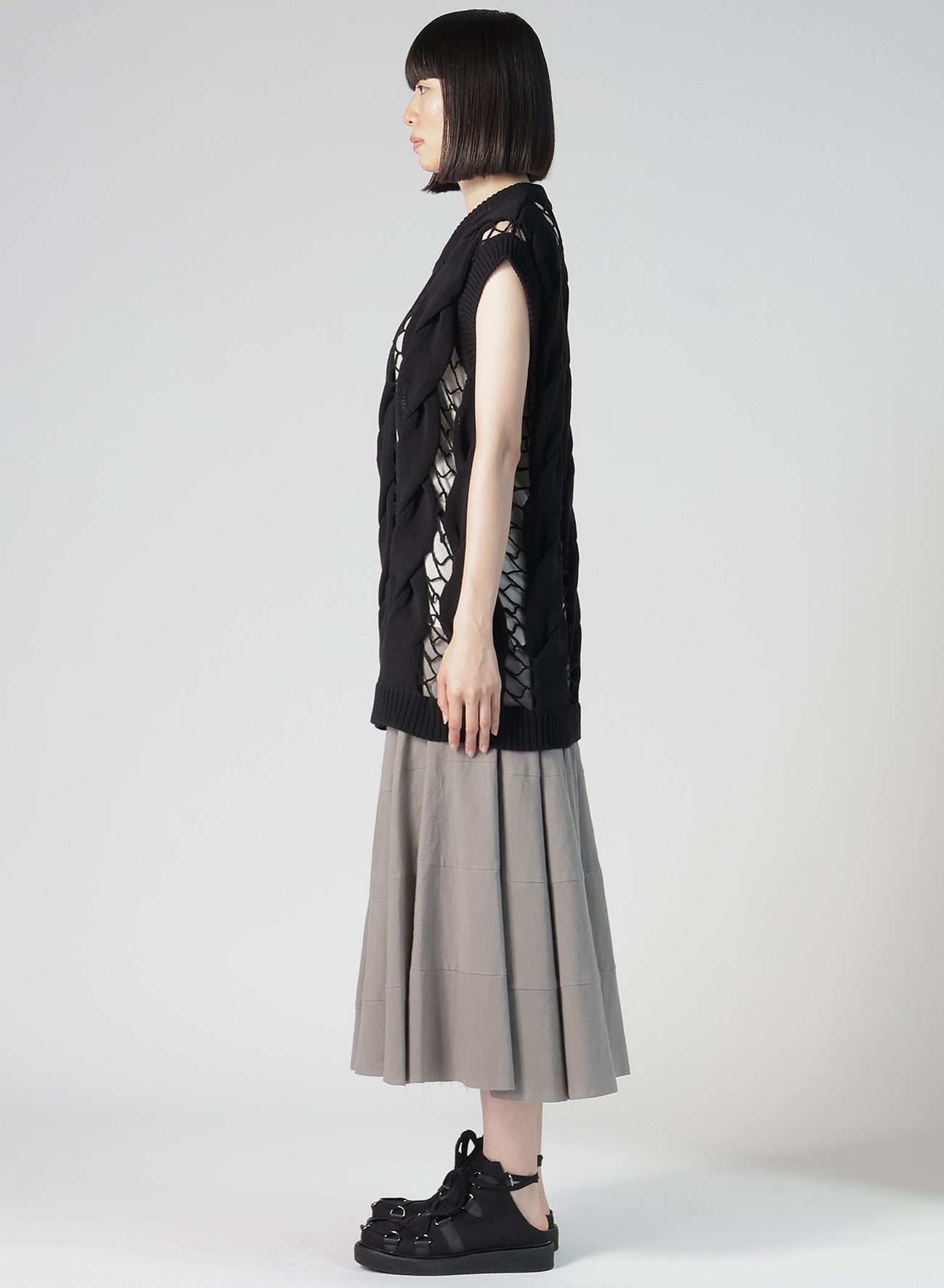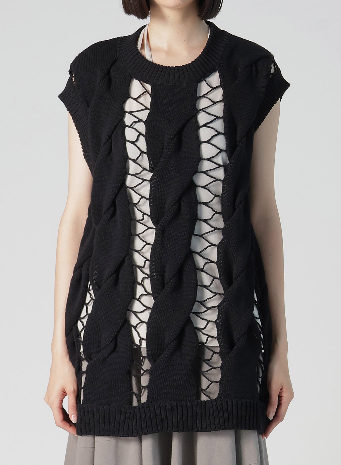 这款大胆针织马甲通过链式缝合展现出丰富的视觉效果。其设计使您可以根据内搭来改变风格,是衣橱中百搭的单品。请注意,样品图片可能与最终货品在尺寸或材质上略有不同。