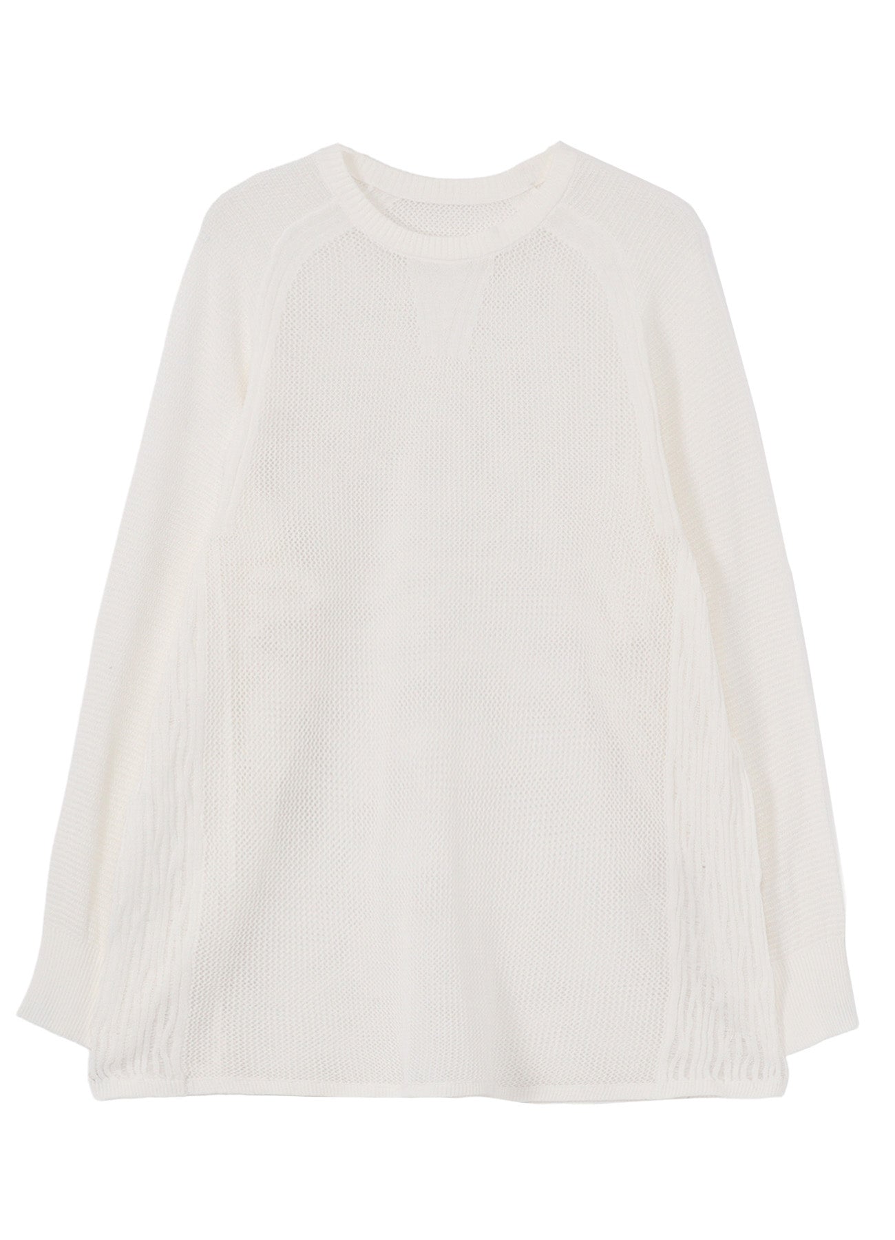 Ground Y's 2026 Spring/Summer Collection features a Dolman big knit made from open-end cotton. It showcases a relaxed silhouette with a distinctive dry texture unique to open-end cotton, providing a comfortable and stylish look.