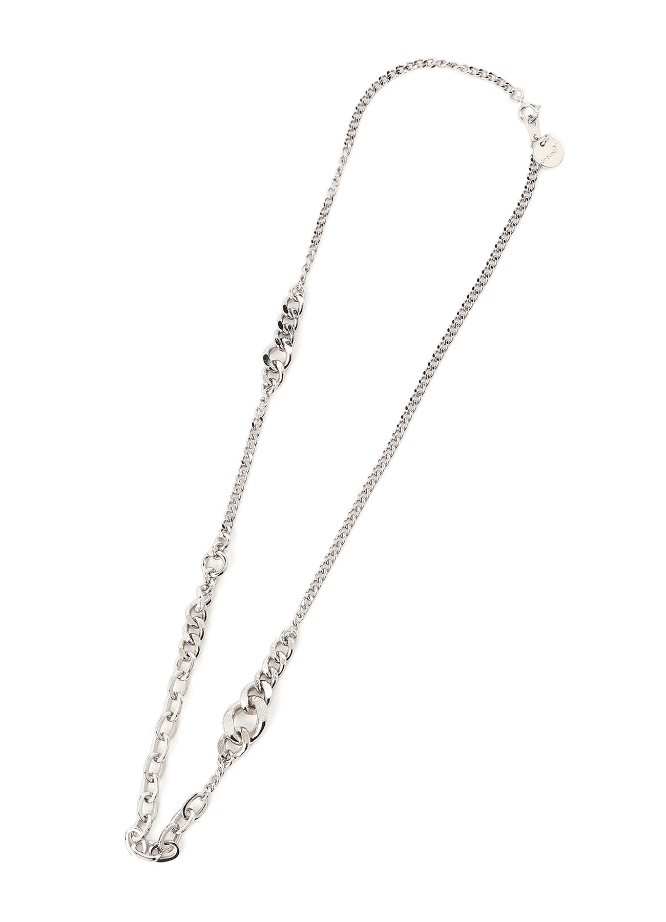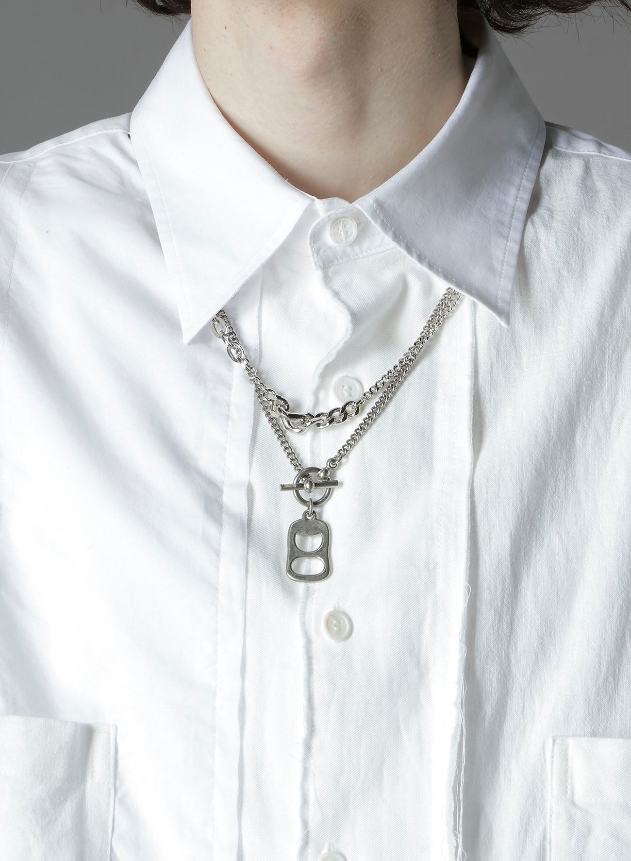 这款项链是Ground Y 2025-26秋冬系列的一部分,特色是不同尺寸链条的混合设计。它适合所有性别,为不同风格和偏好提供了多功能的配饰选择,既适合正式场合,也适合休闲场合。