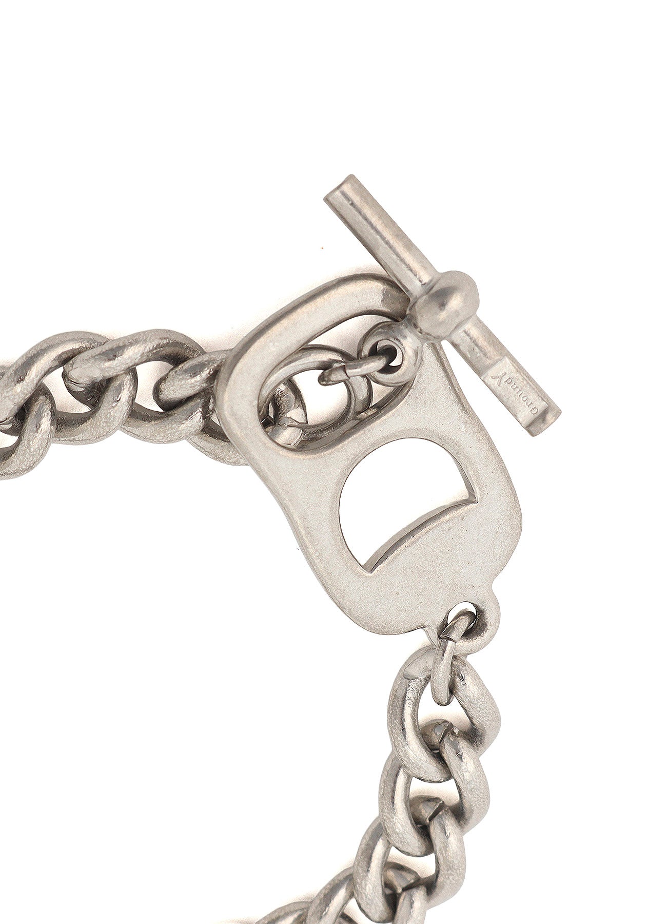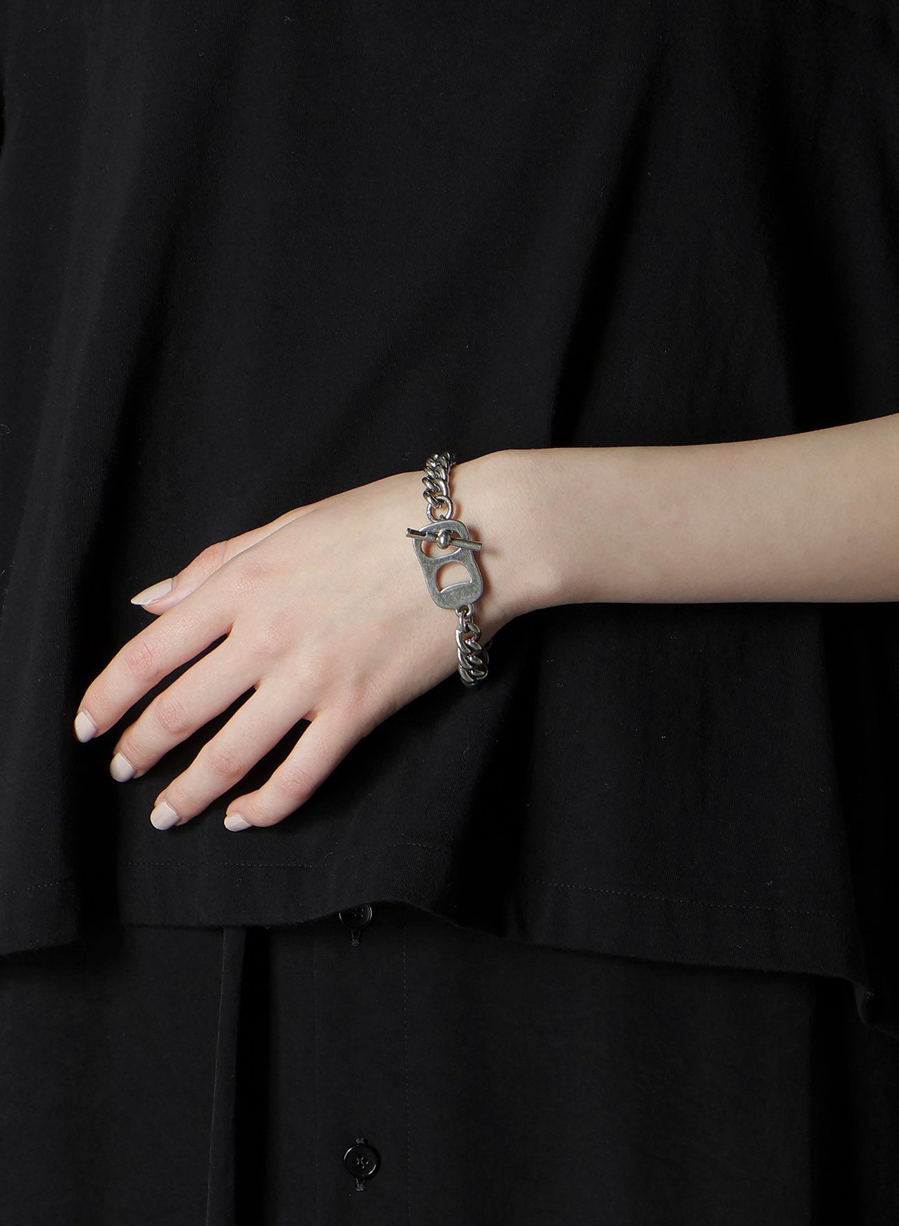 本款手镯受拉环扣趣味而优雅的设计启发,是Ground Y 2025-26秋冬系列的一部分,适合所有性别。