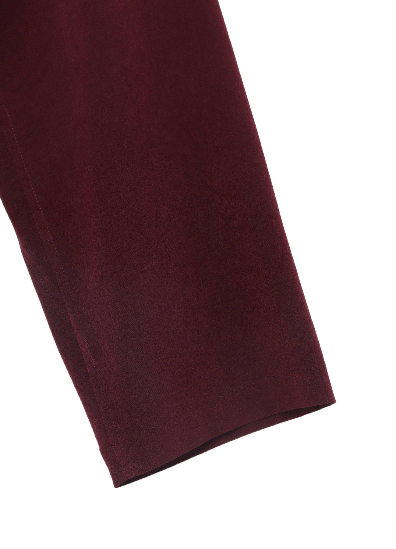 Ground Y 2025-26 秋冬系列中的平领衬衫设计独特,搭配佛扣。艺术性设计元素通过从扣眼处延伸出的绳带体现。使用标志性的皱缩乔其纱面料,展现顺滑质感和优雅垂坠,抵抗皱纹,适合全年佩戴。