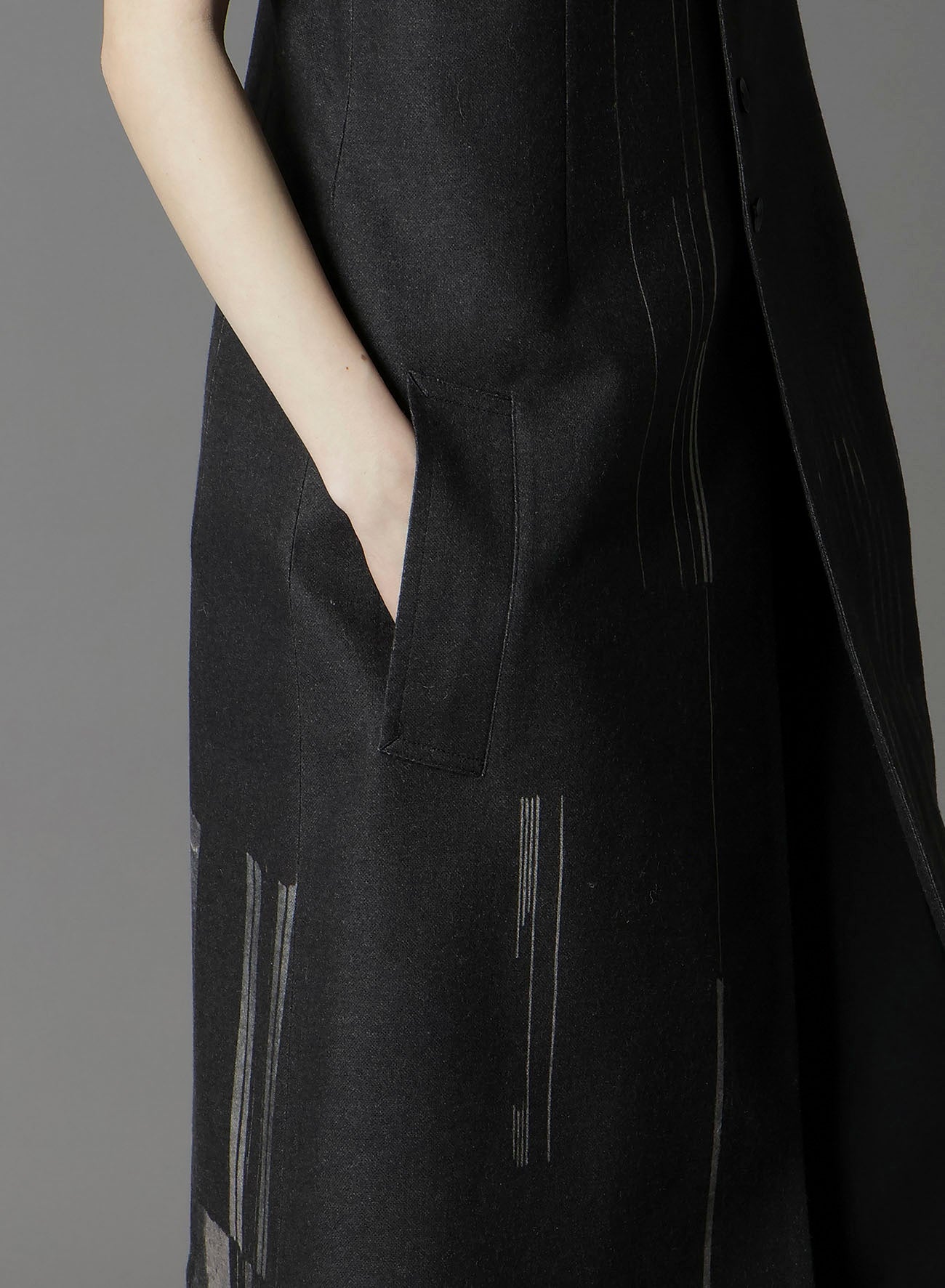 这款来自Ground Y 2025-26秋冬系列的长背心,采用几何条纹图案,提供适合所有性别的简洁轮廓。面料结合了羊毛的温暖和吸热特性,加上平纹织物的结构强度以及经过缩绒处理的顺滑耐用性。