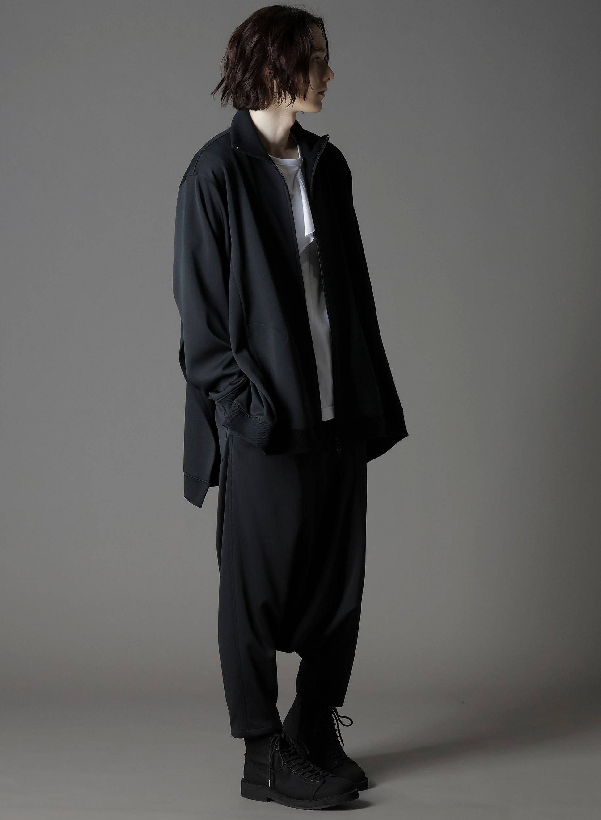 Ground Y's 2025-26 Autumn/Winter collection presents a distinctive track jacket featuring drapery on both sides, an A-line silhouette, and a double-zipper front. Made from lightweight, smooth polyester fabric, it offers excellent elasticity and moisture-wicking properties. The jacket includes rib finished collars, cuffs, and hem for versatile movement.