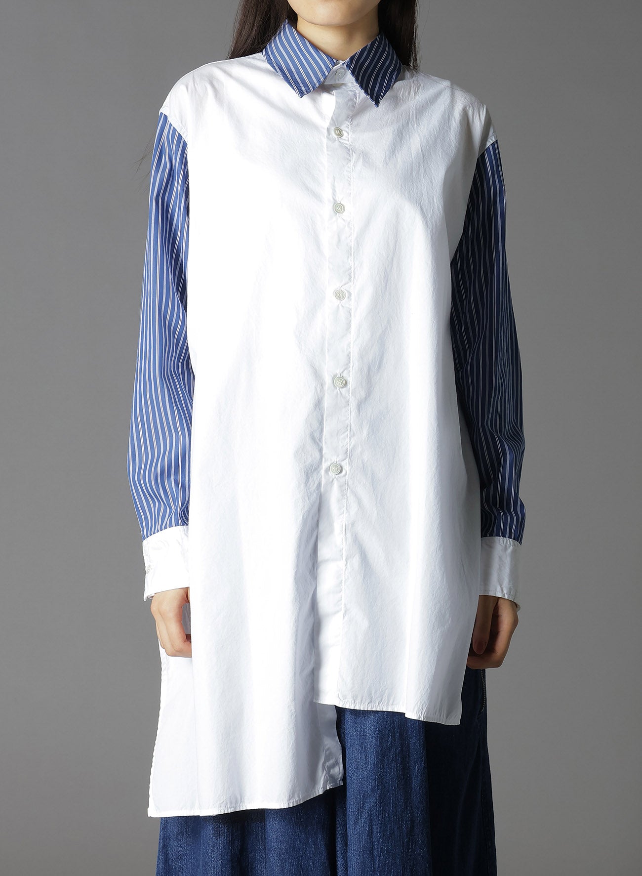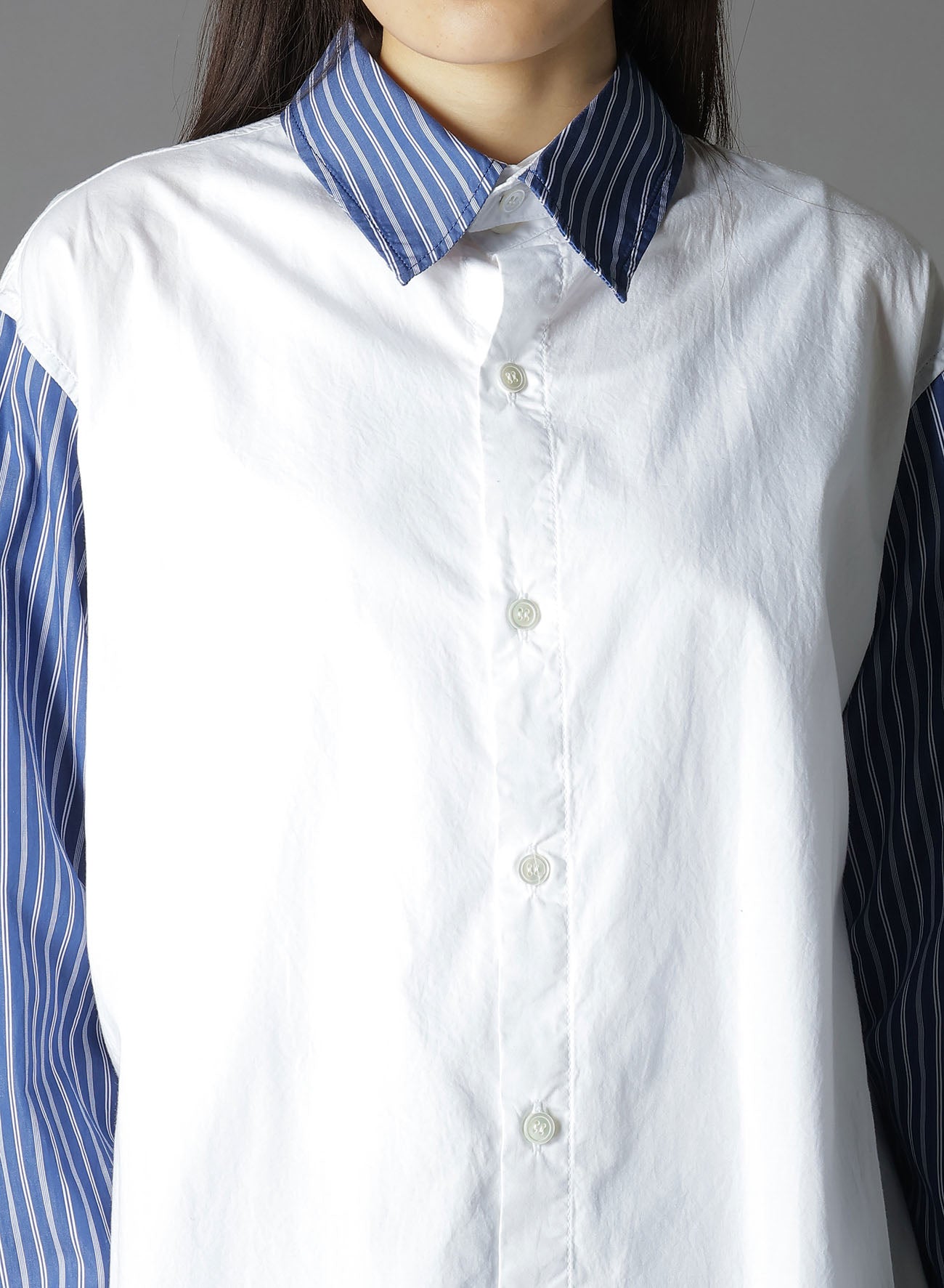 COTTON BROAD + STRIPE SWITCHING NON FUSIBLE SHIRTS