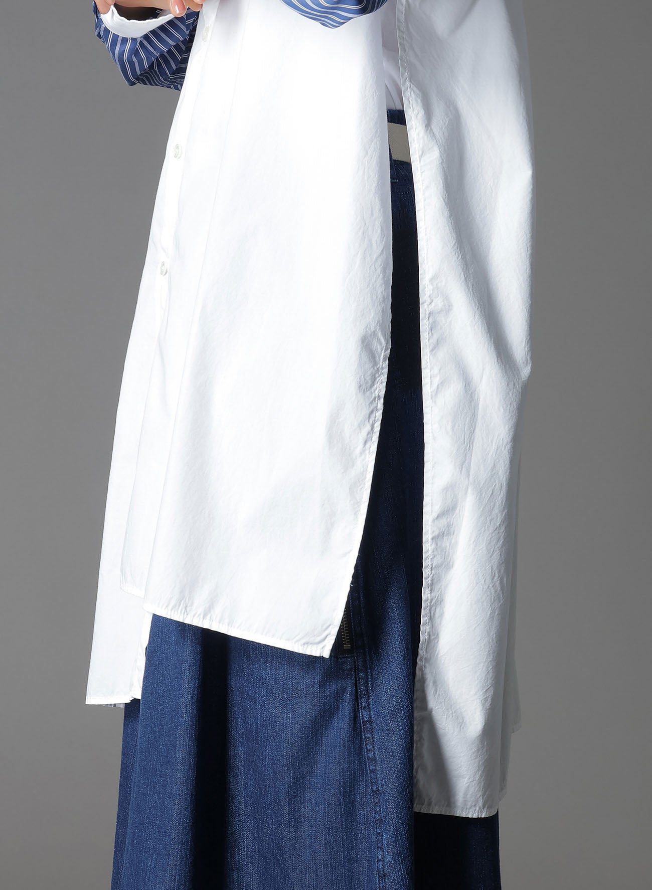 Ground Y 的2025春夏系列中,这款独特的衬衫将府绸和条纹图案结合在一起。备用领口设计既有条纹款式也有素色款式。该衬衫采用柔软的棉料制成,是春夏搭配的理想选择。