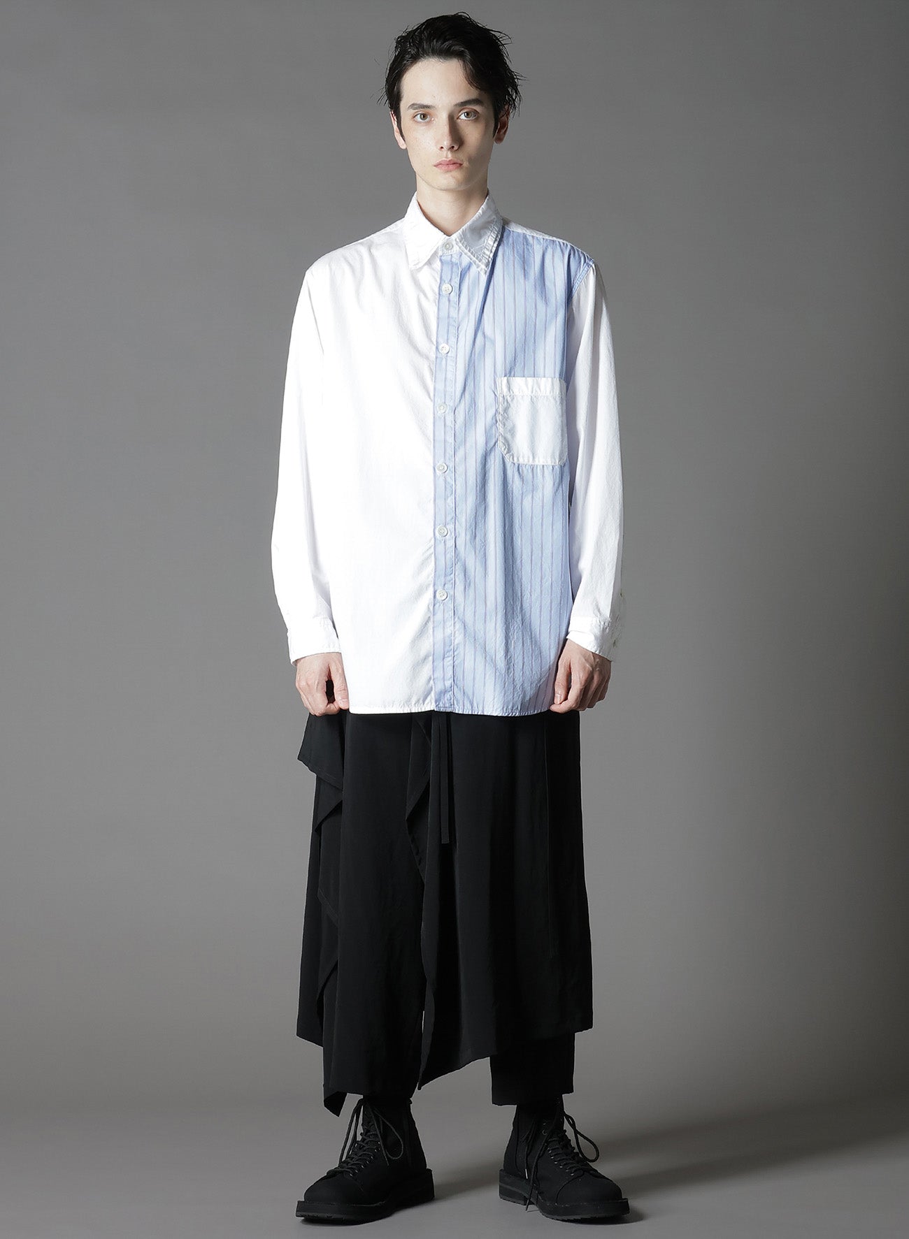 COTTON BROAD + STRIPE SWITCHING LONG SLEEVE SHIRTS