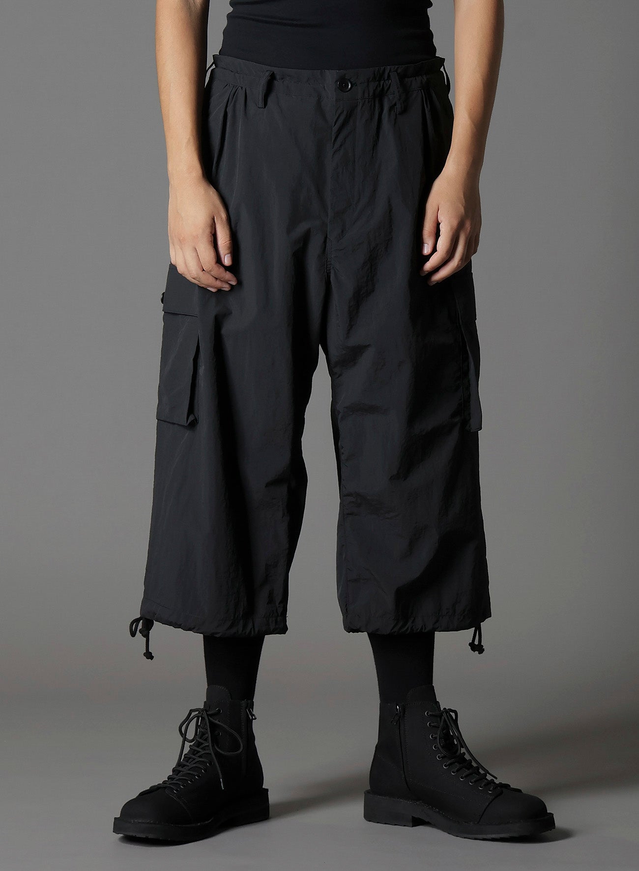 这款来自Ground Y的cargo裤是2025春夏系列的一部分,宽松款式通过腰部的聚集面料实现,取代了褶皱设计。裤脚配有可调节抽绳。采用哑光尼龙制成,并进行了无氟防水处理,体现可持续的户外风格。 - 短款设计,可调节抽绳 - 聚集腰带增加体积和亮点 - 哑光尼龙底,具防水处理 - 无氟,环保可持续 - 轻盈自然,融入户外环境