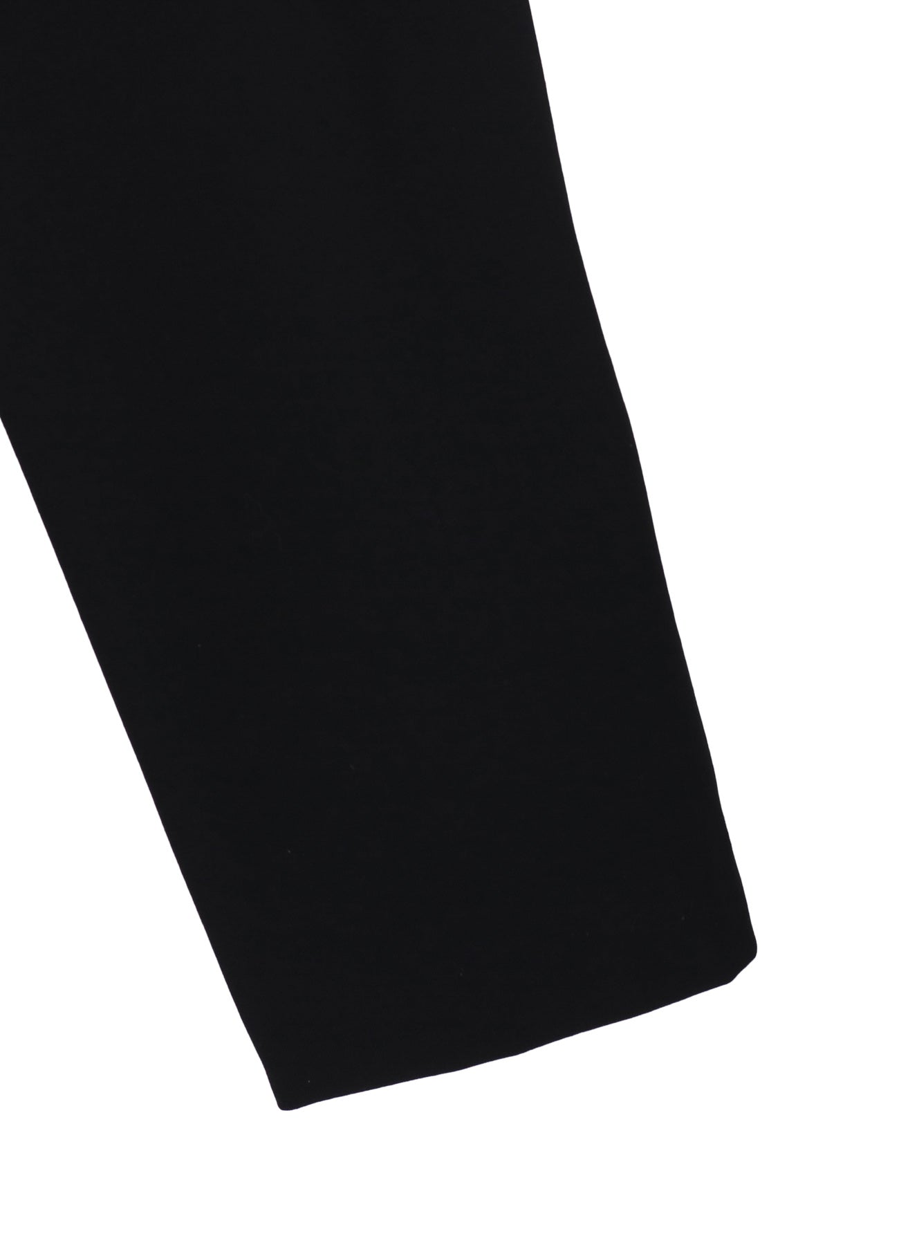 Yohji Yamamoto's iconic single-breasted jacket features wool gabardine, renowned for its smoothness and sheen. The material's innate drapery comes from a soft finishing that lightly wrinkles the fabric, highlighting its natural texture.